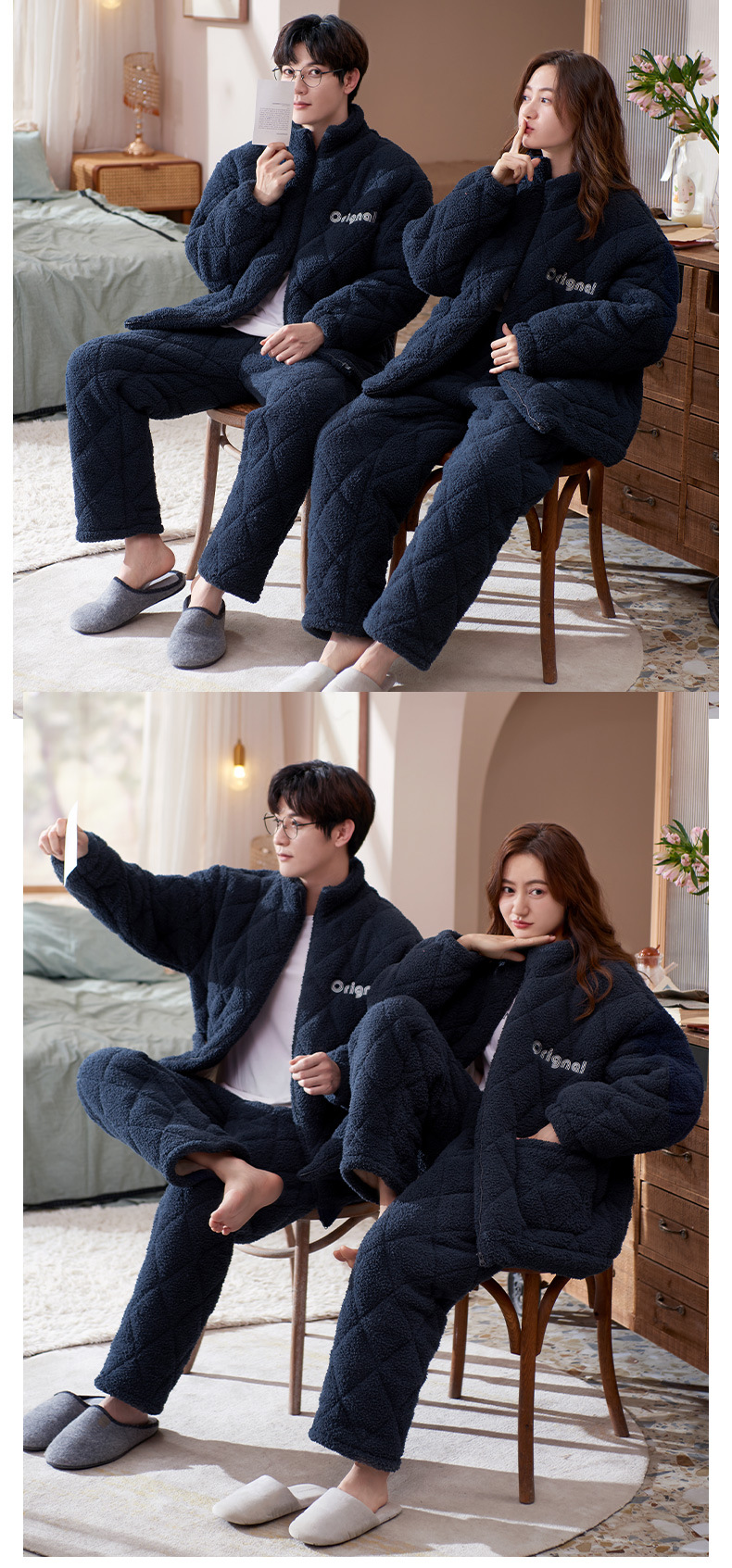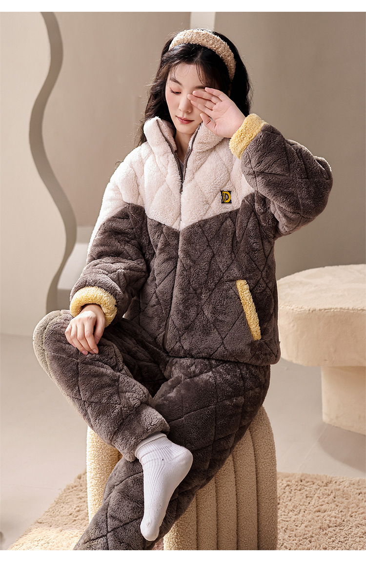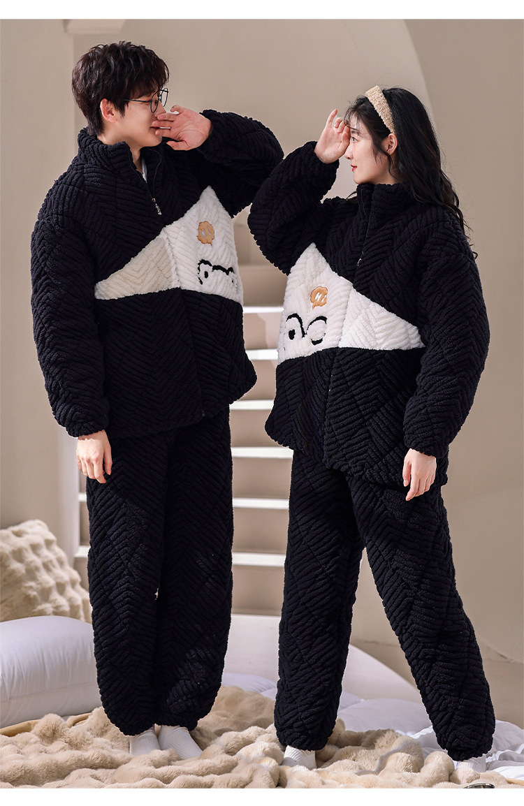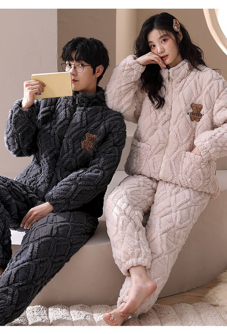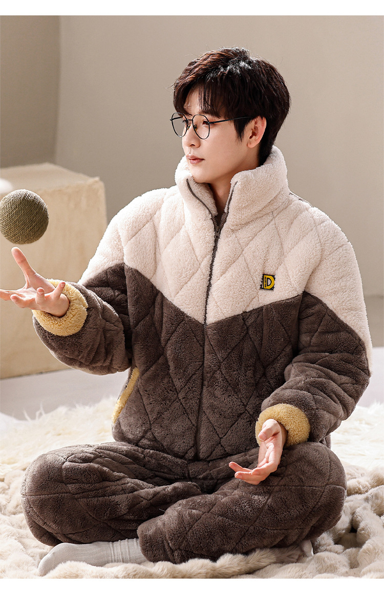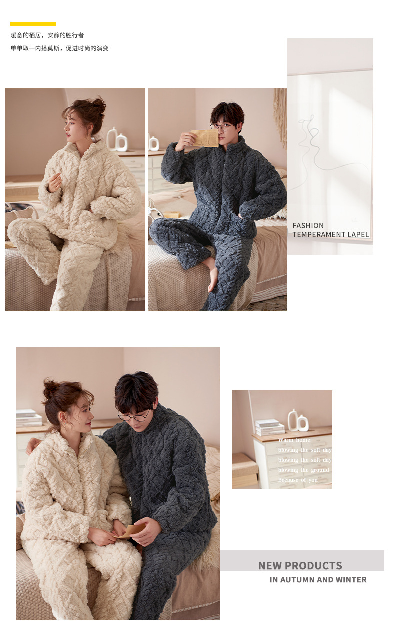겨울 산호 양털 퀼트 커플 파자마 여성 지퍼 카디건 3 층 두꺼운 코튼 패딩 자켓 남성복스토어 가기