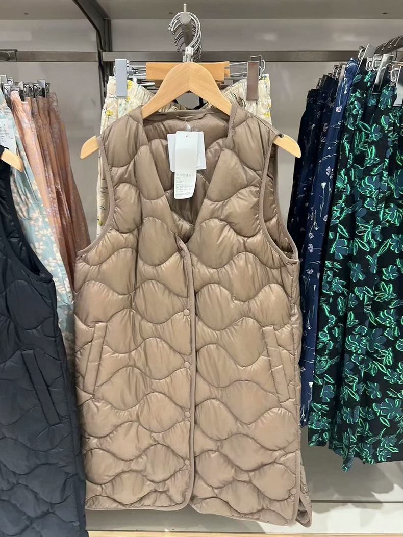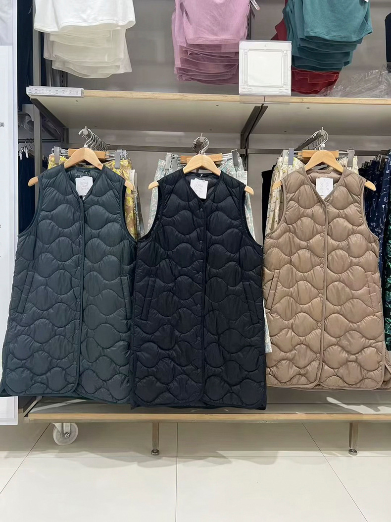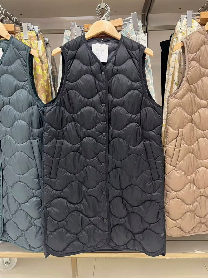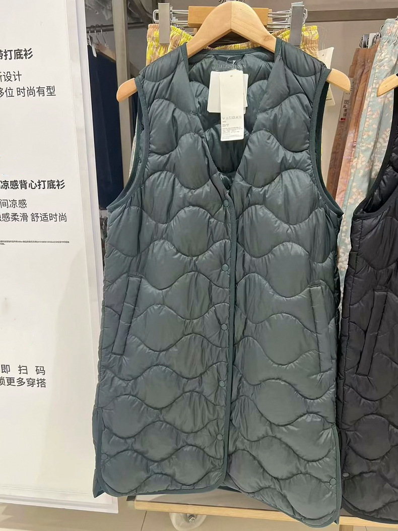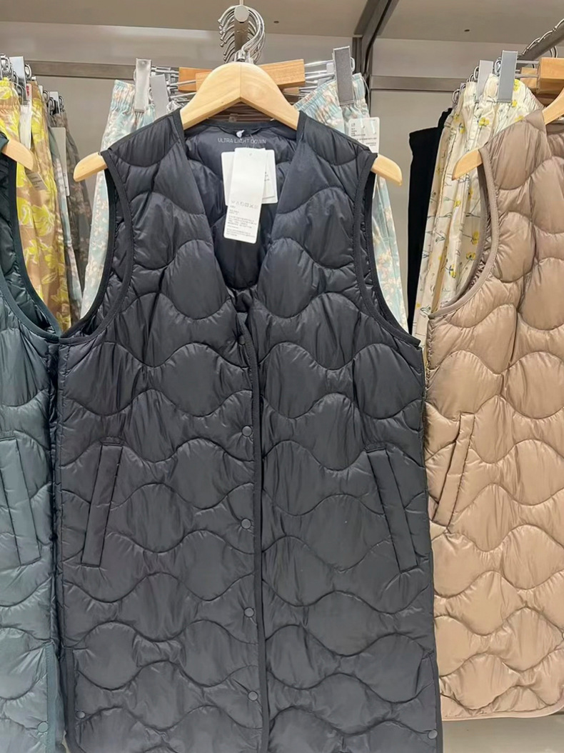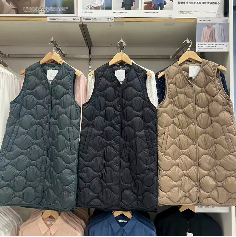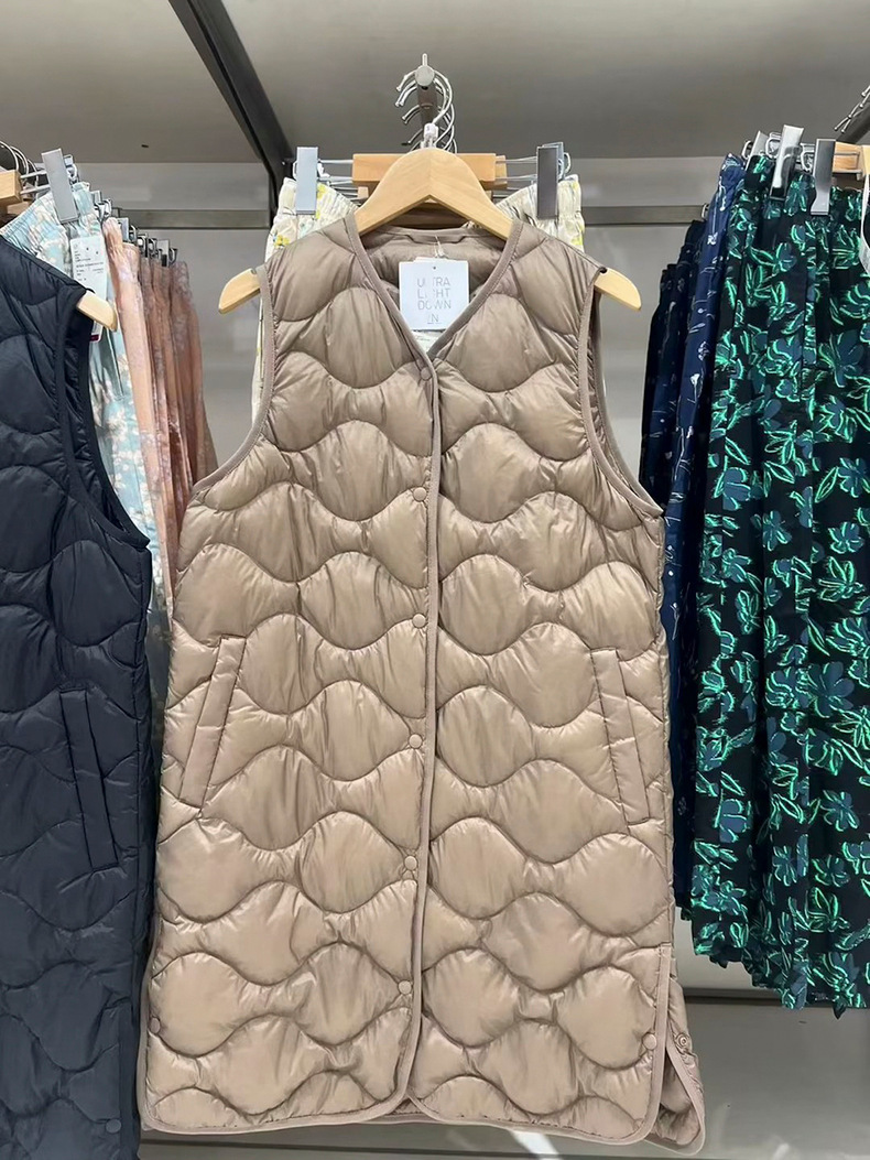 여성용 경량 롱 조끼 2023 가을 겨울 새로운 휴대용 경량 조끼 460913스토어 가기