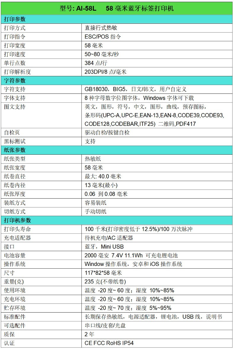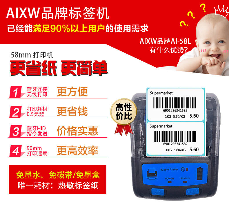 AI-58L商用标签蓝牙打印机商品价格标签打印机跨境选品珠宝标签