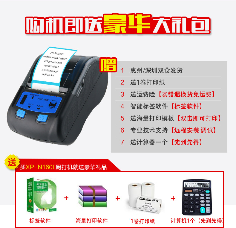 1.支持双打:标签和小票。