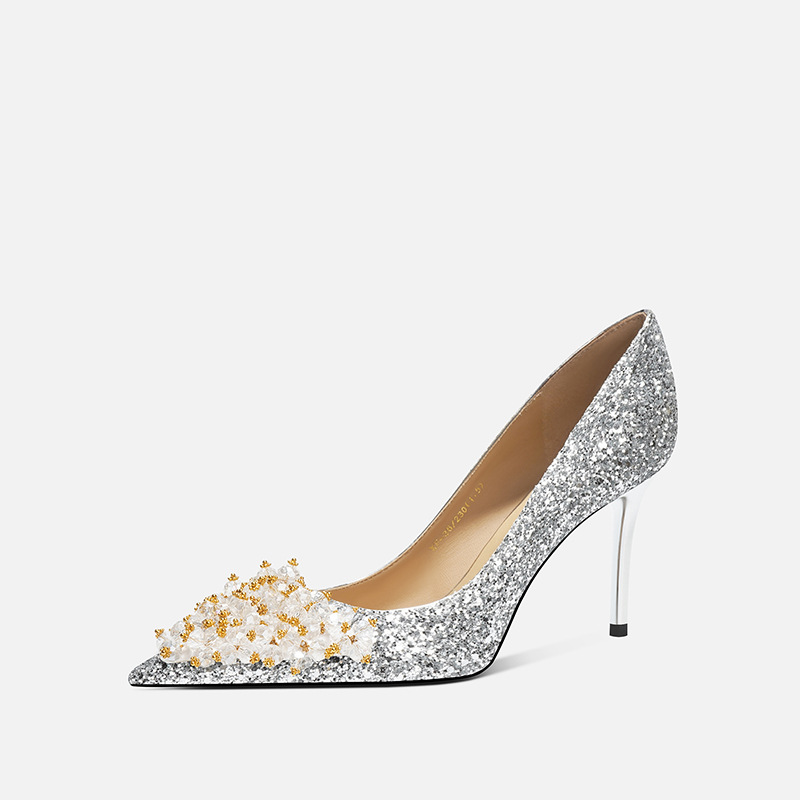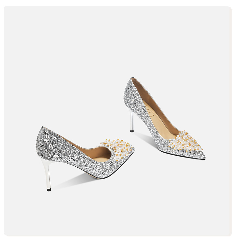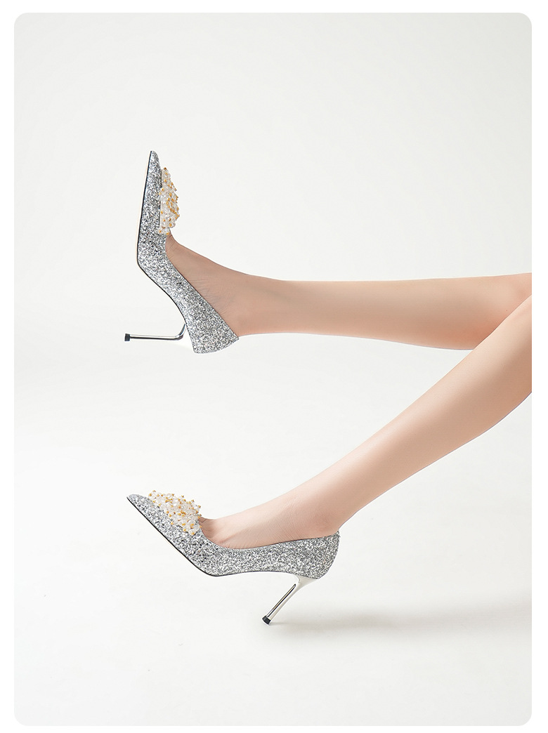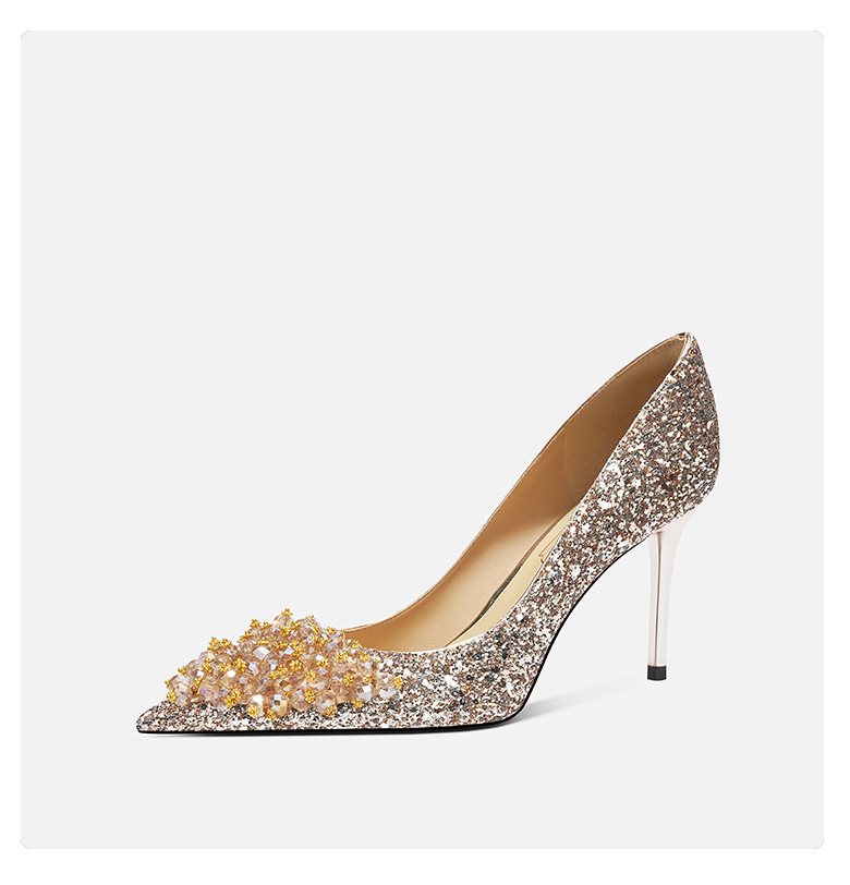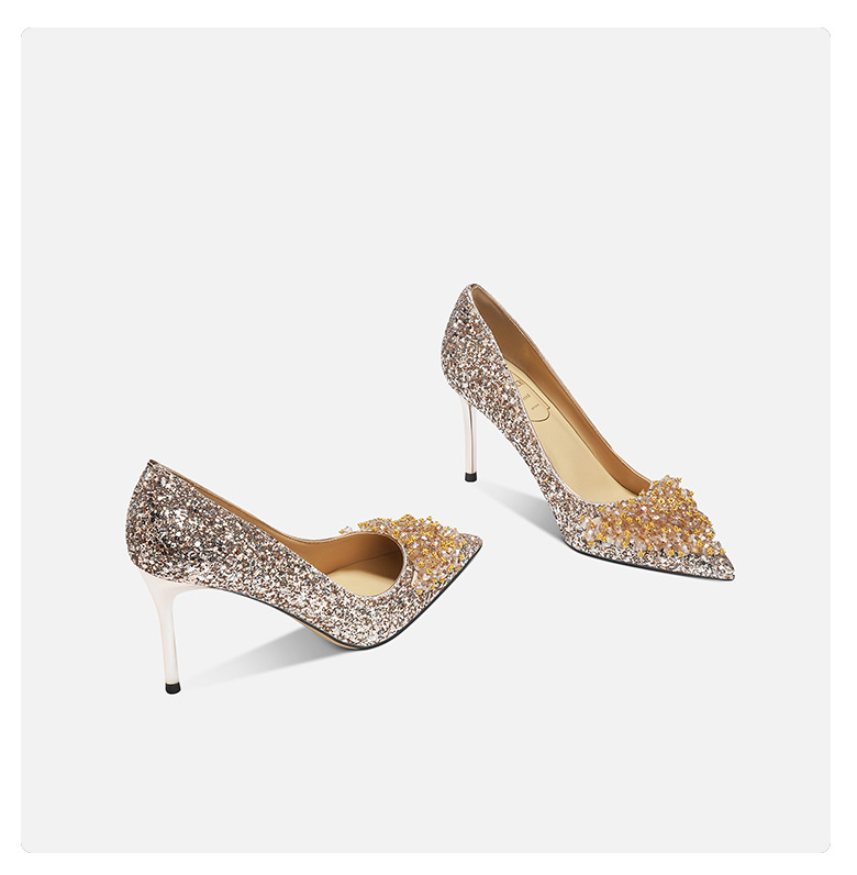 708-B20 뾰족한 발가락 웨딩 신발 여성 2024 새로운 메인 웨딩 신부 신발 들러리 신발 프랑스 크리스탈 하이힐스토어 가기