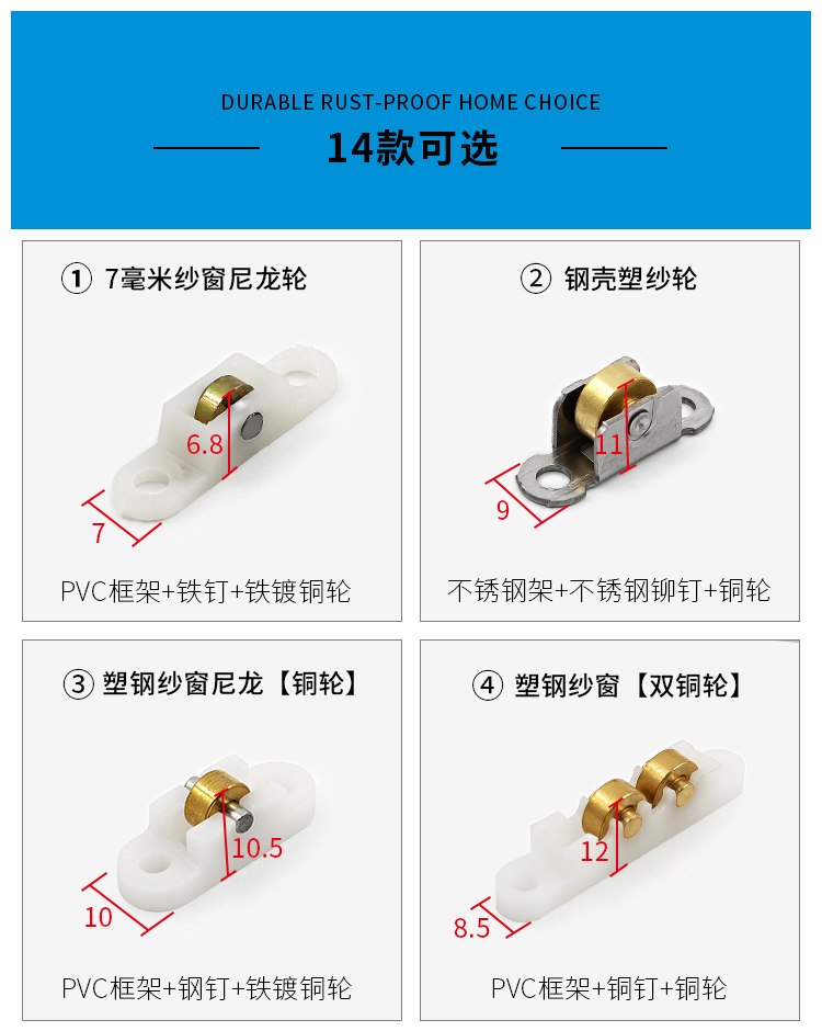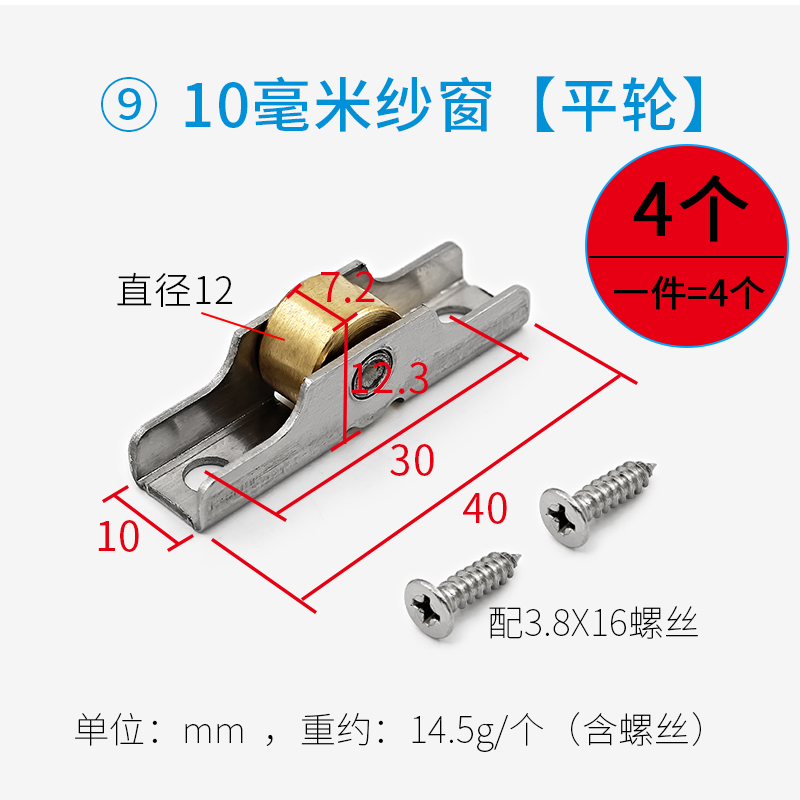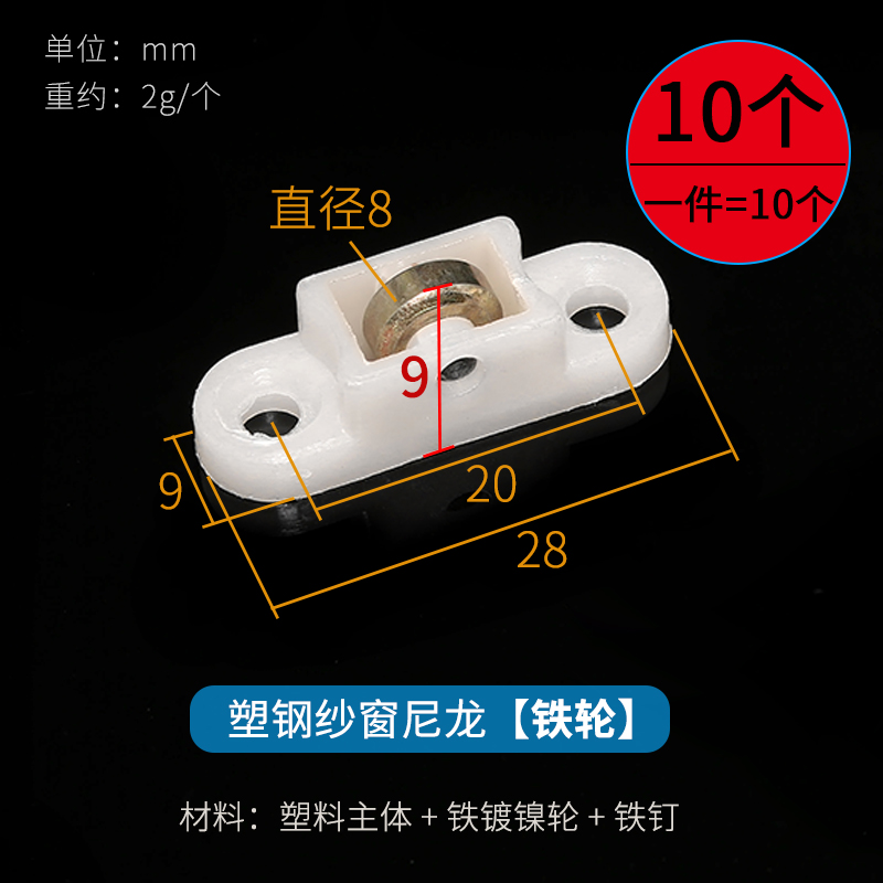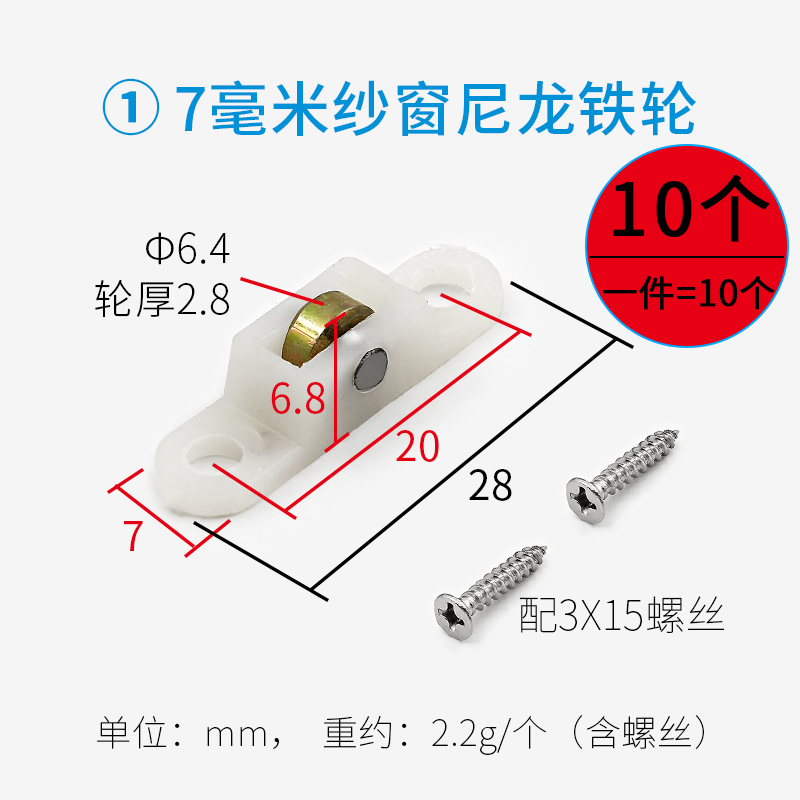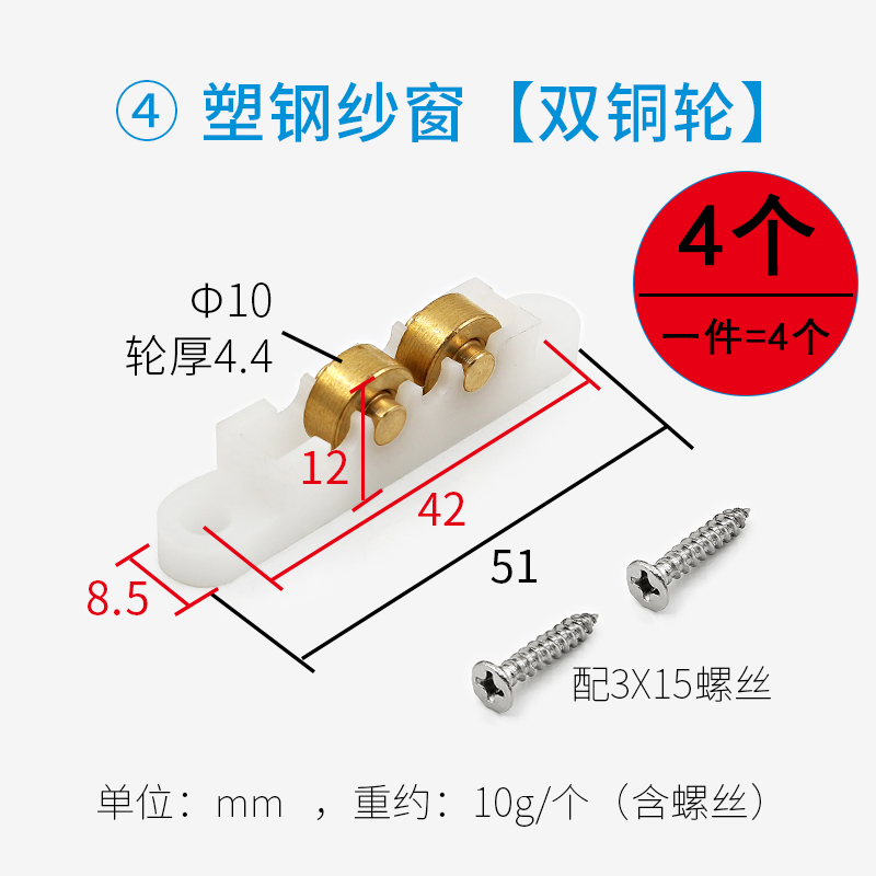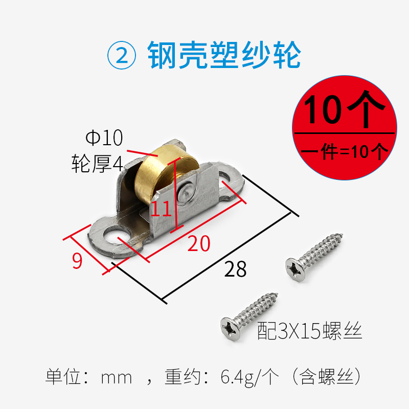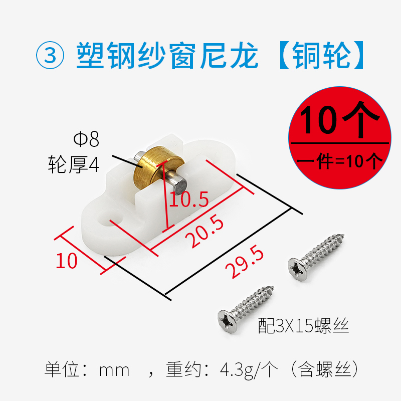 • 10mm 폭의 플라스틱 강철 스크린 창 구리 휠 10개 팩