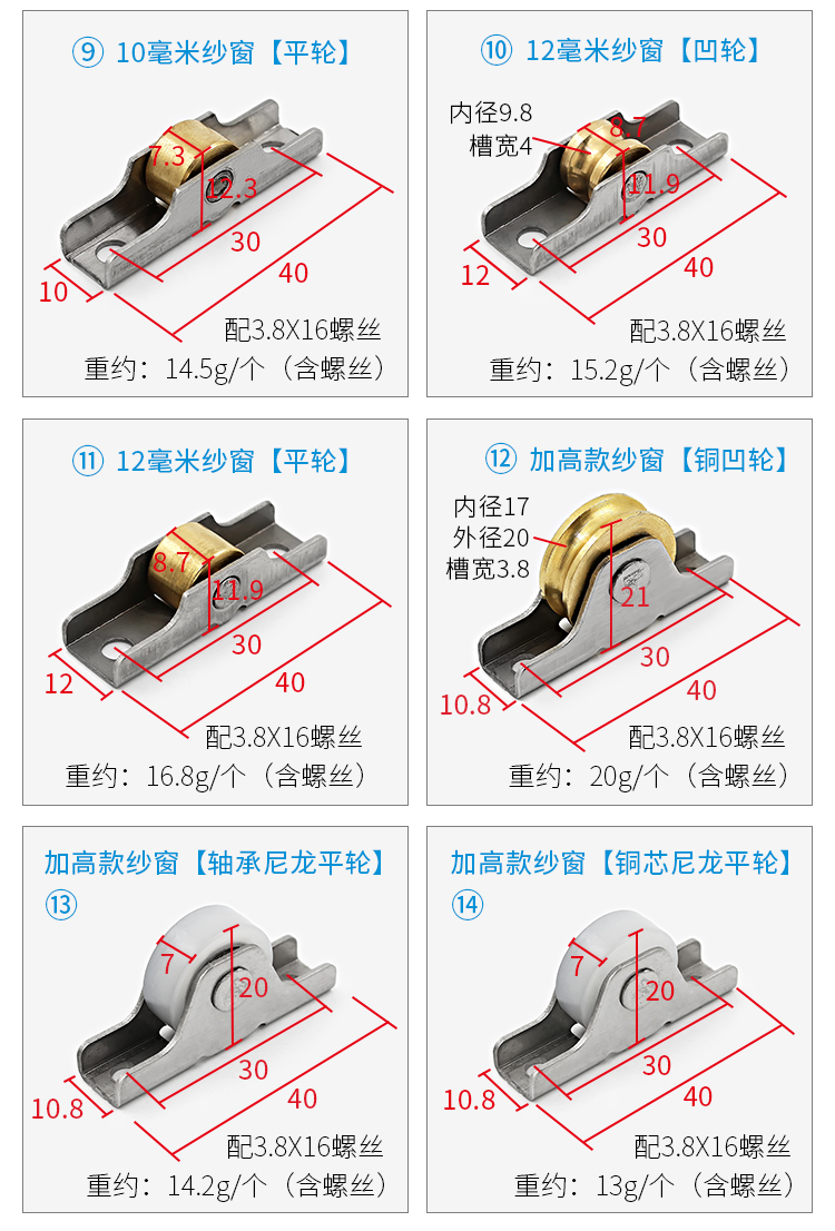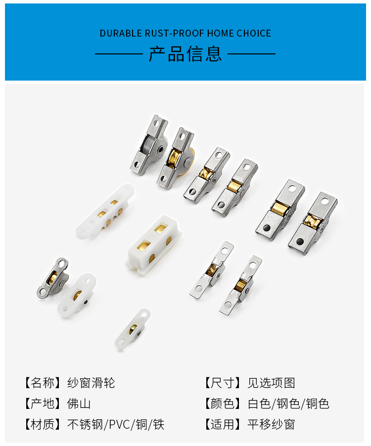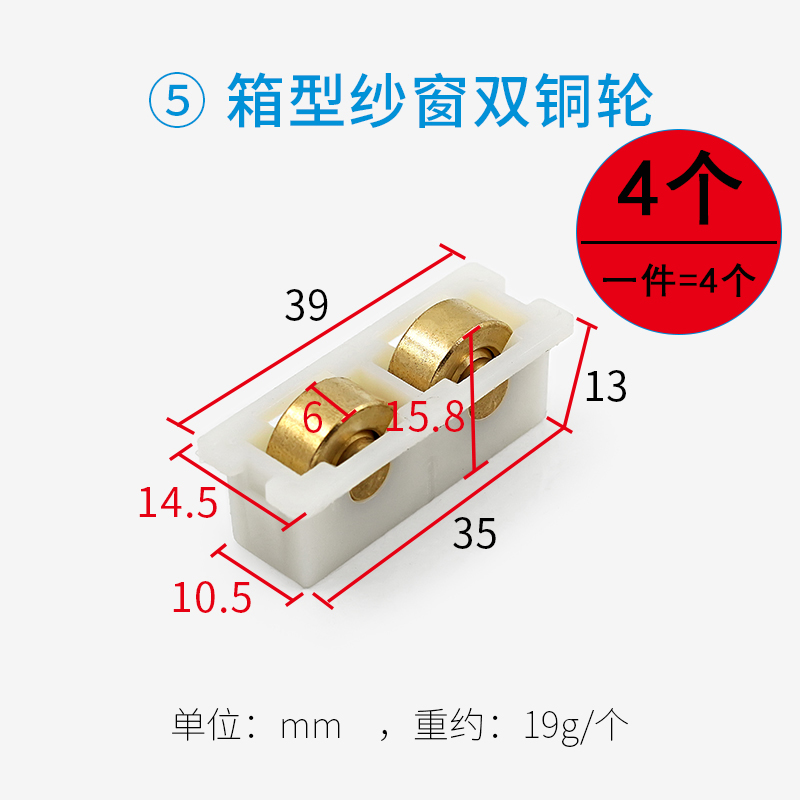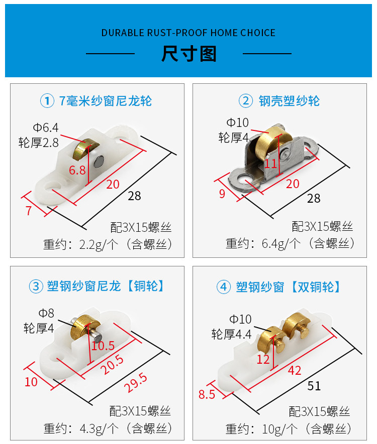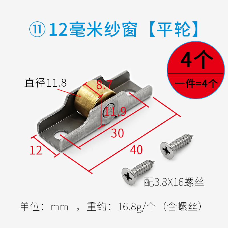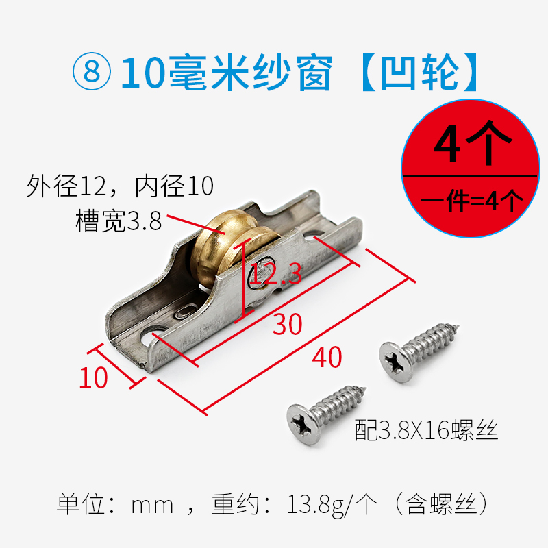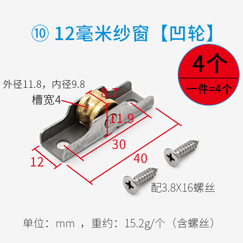 • 10mm 폭의 플라스틱 강철 스크린 창 구리 휠 10개 팩