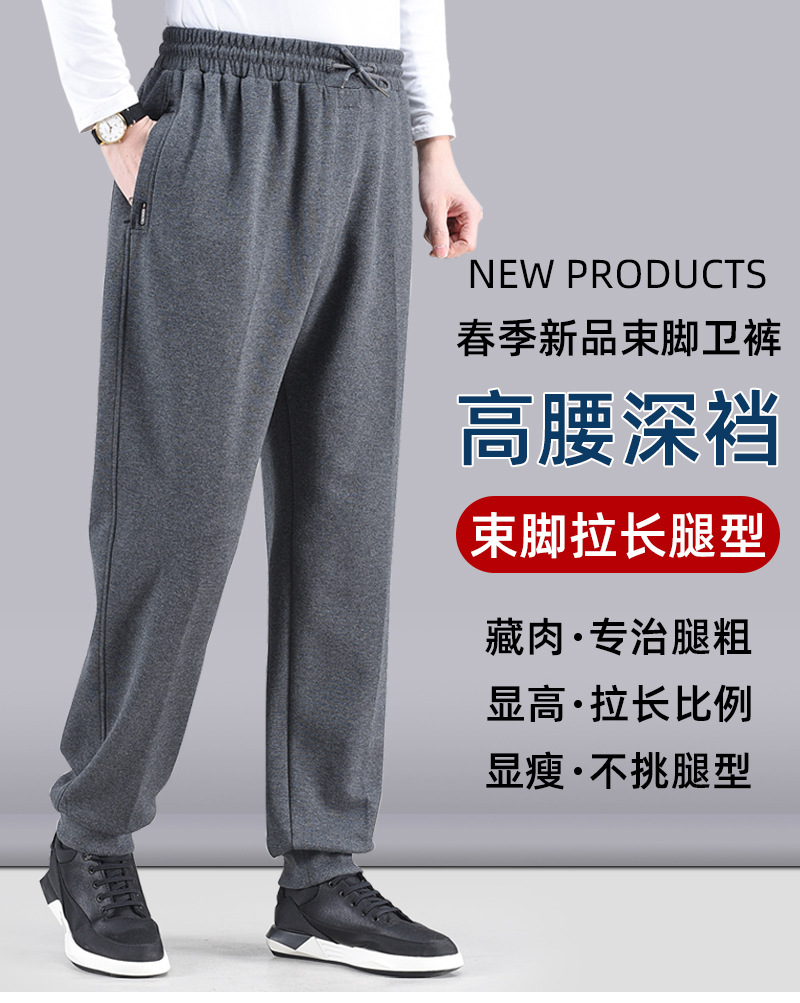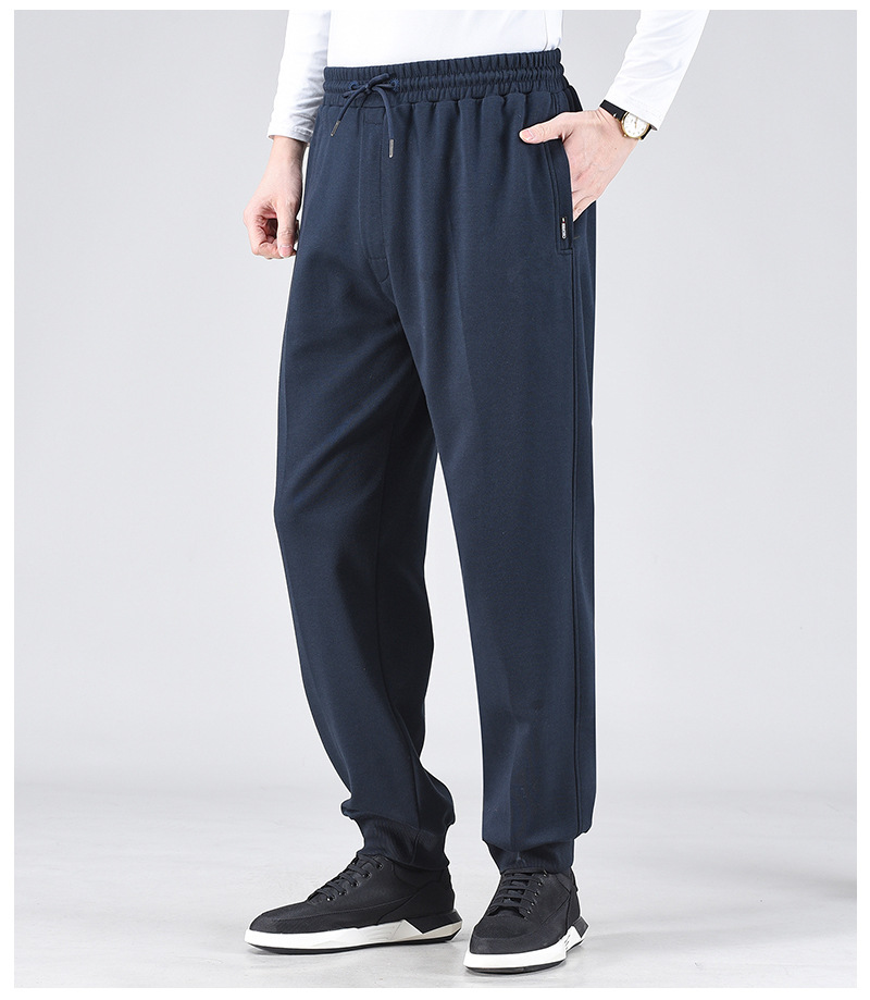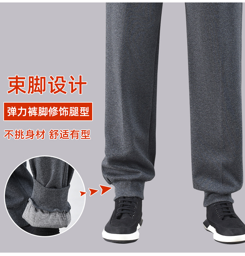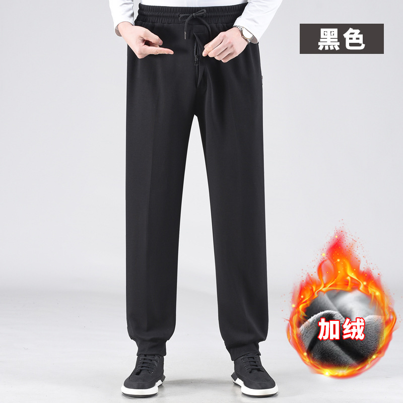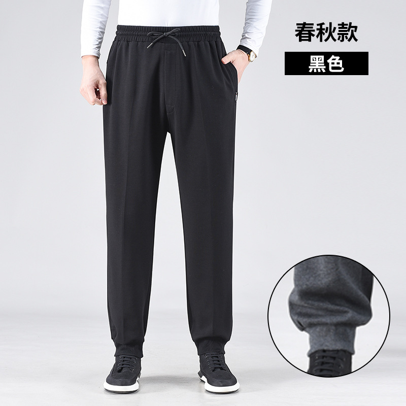 가을과 겨울 중년 남자 스포츠 바지 프론트 오프닝 및 플래켓 기모 두꺼운 면 높은 허리 니킹 바지 작은 발과 깊은 크로치스토어 가기
