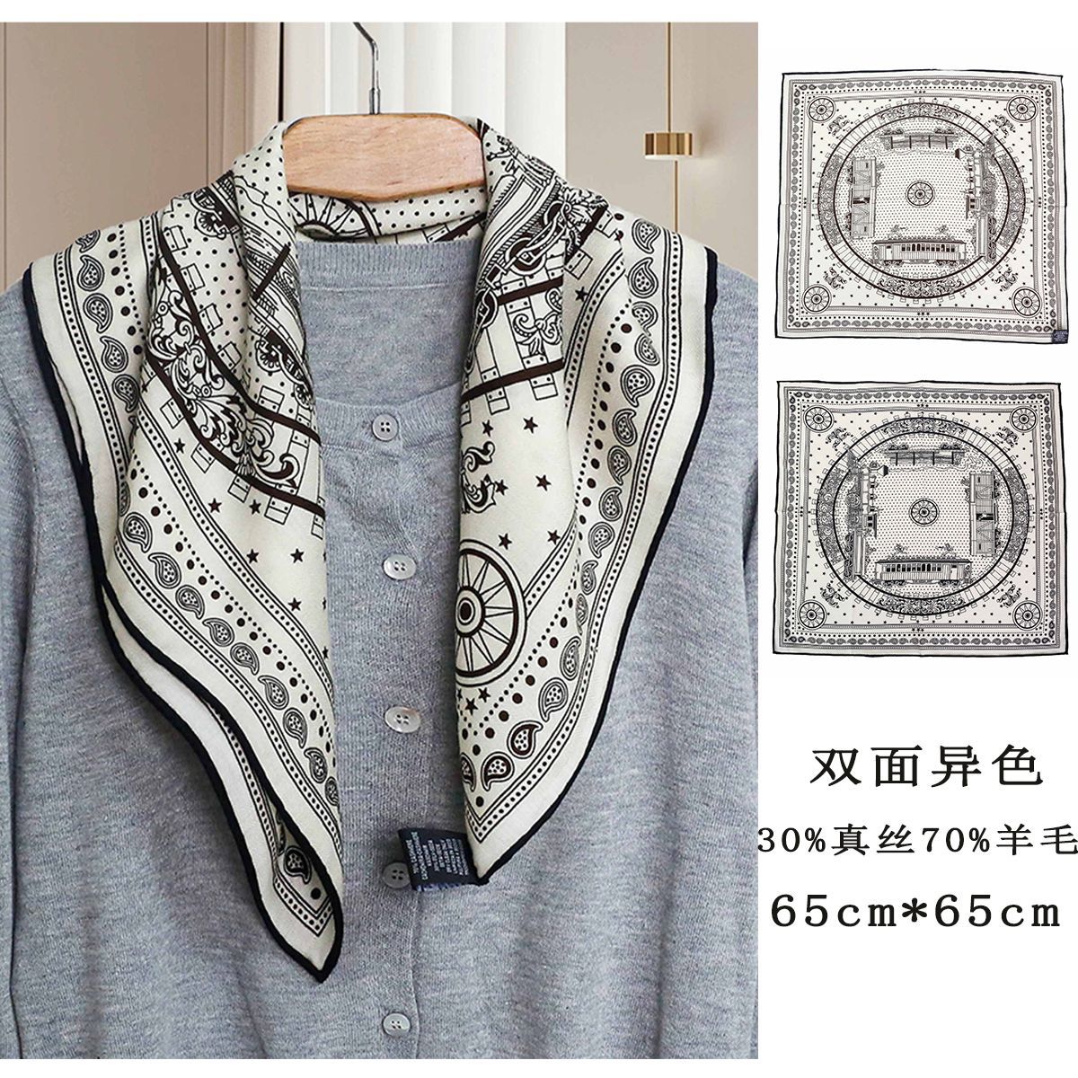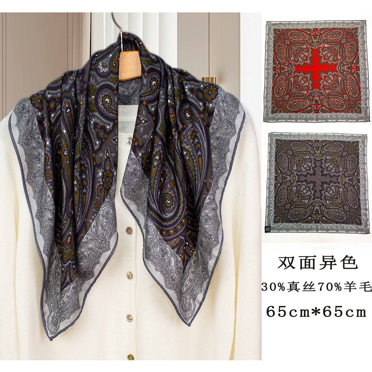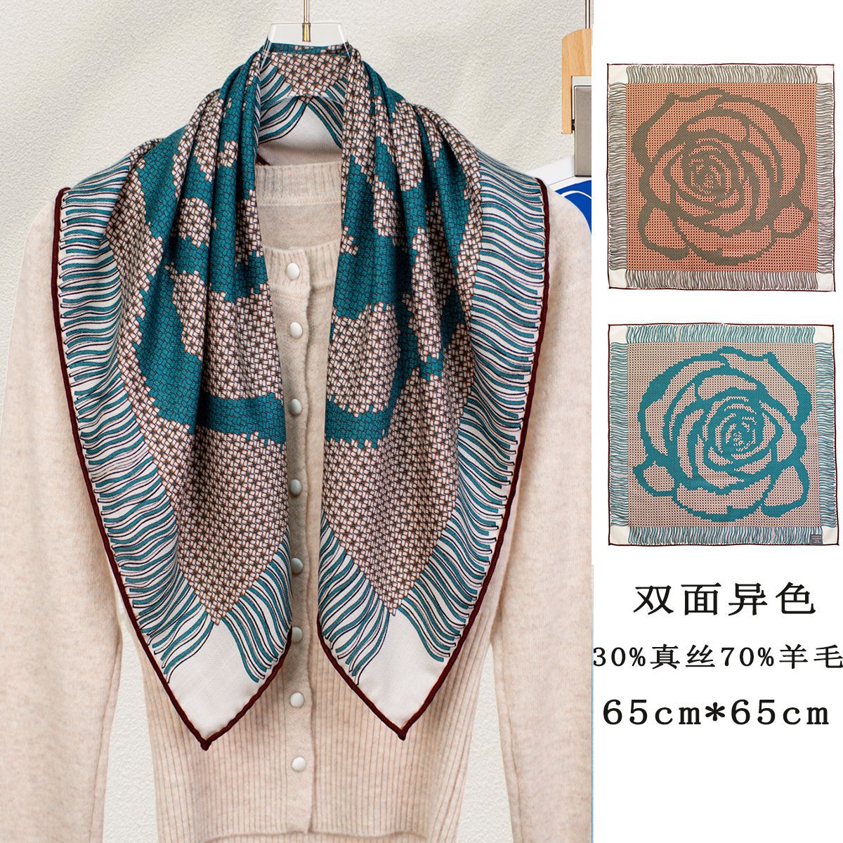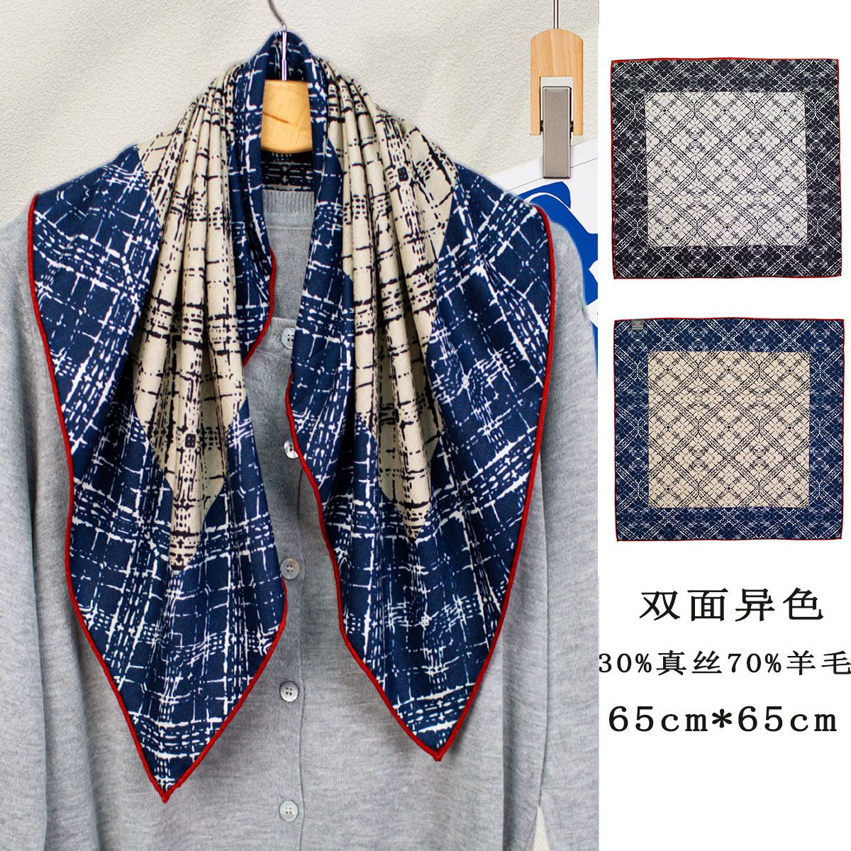 25가지 새로운 스타일의 패셔너블한 실크 스카프, 양면 이색 실크와 울 소재, 수제 롤 엣지 중국식 스카프 컬렉션스토어 가기