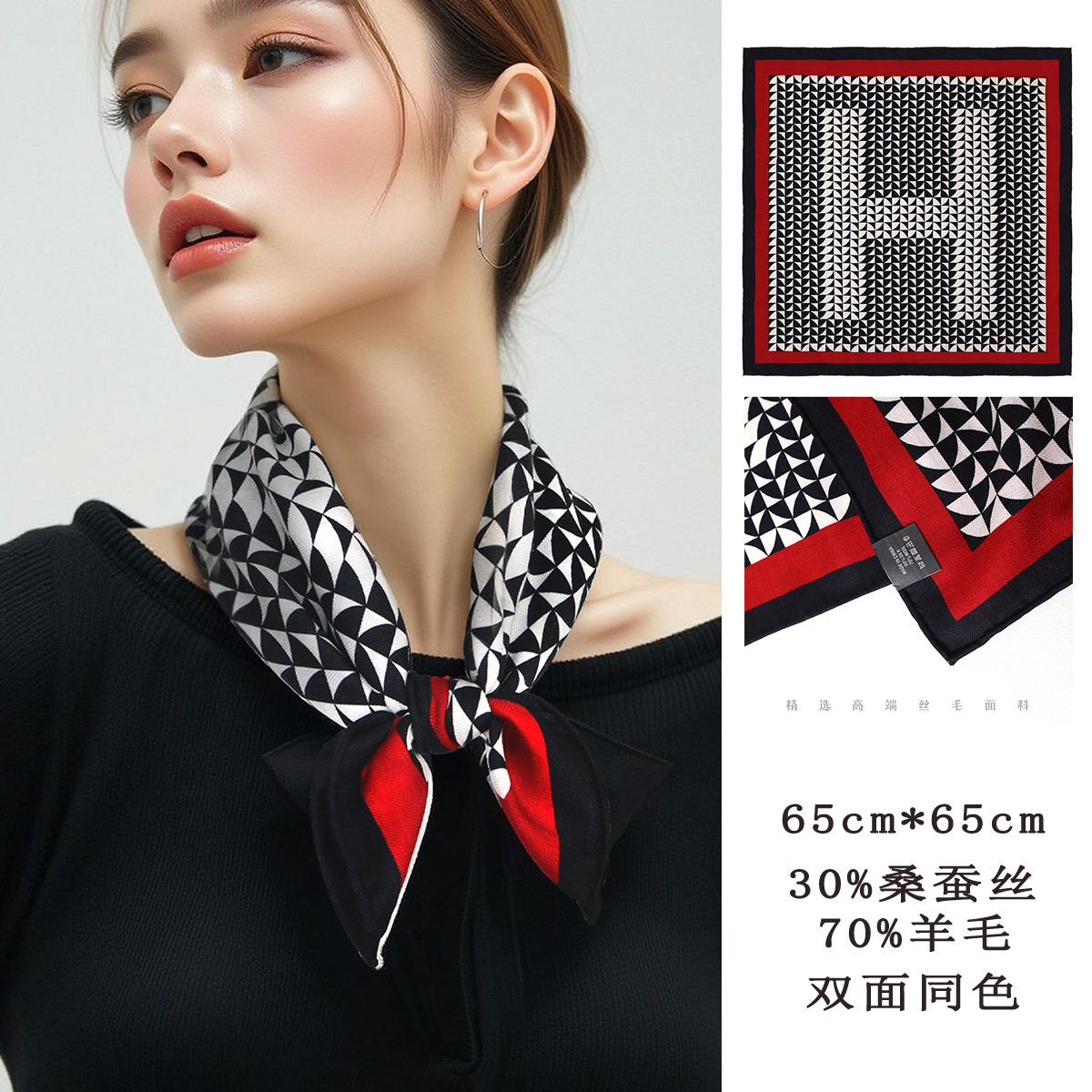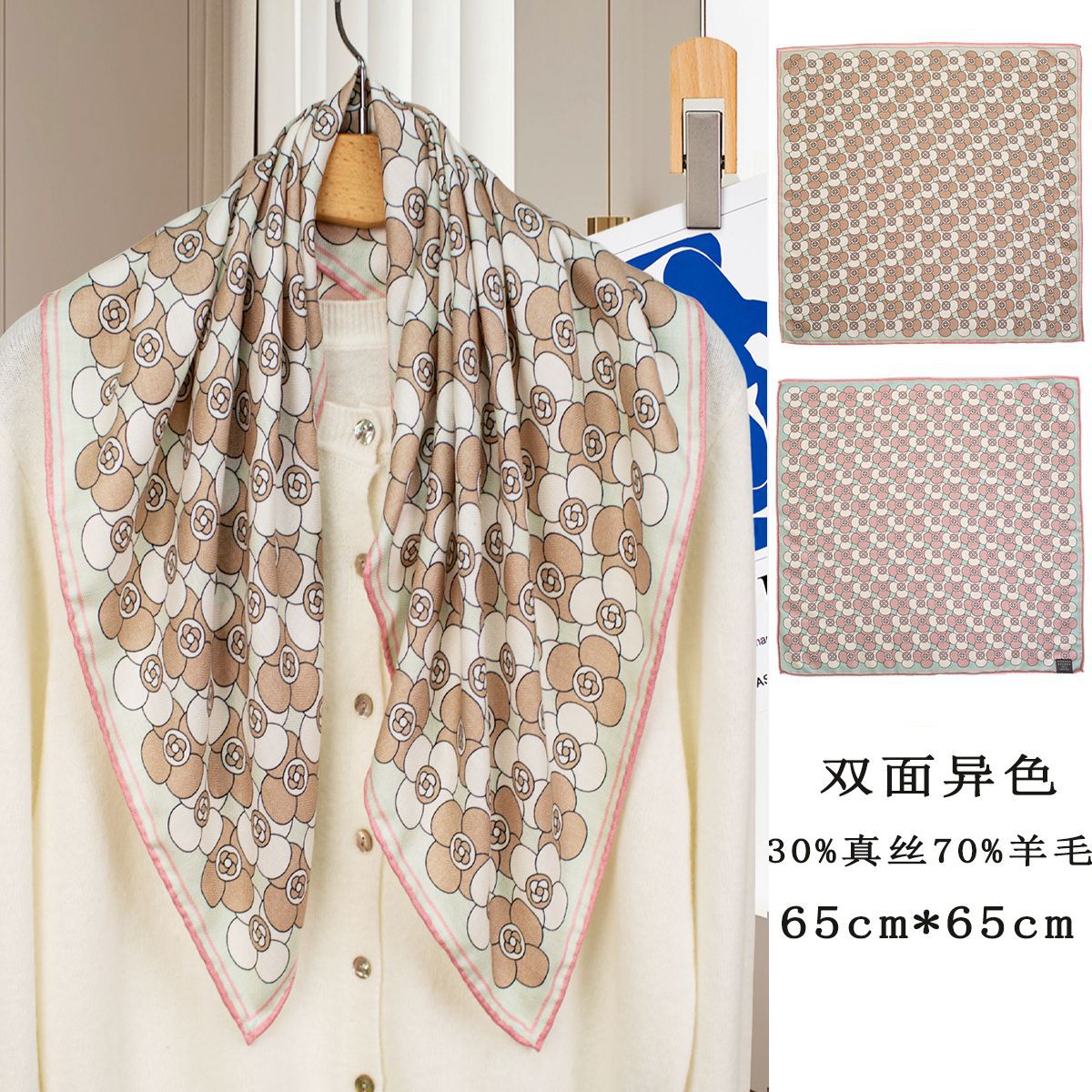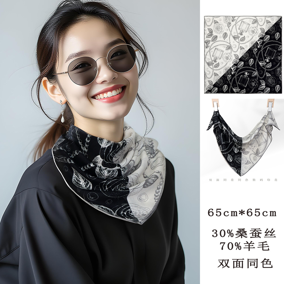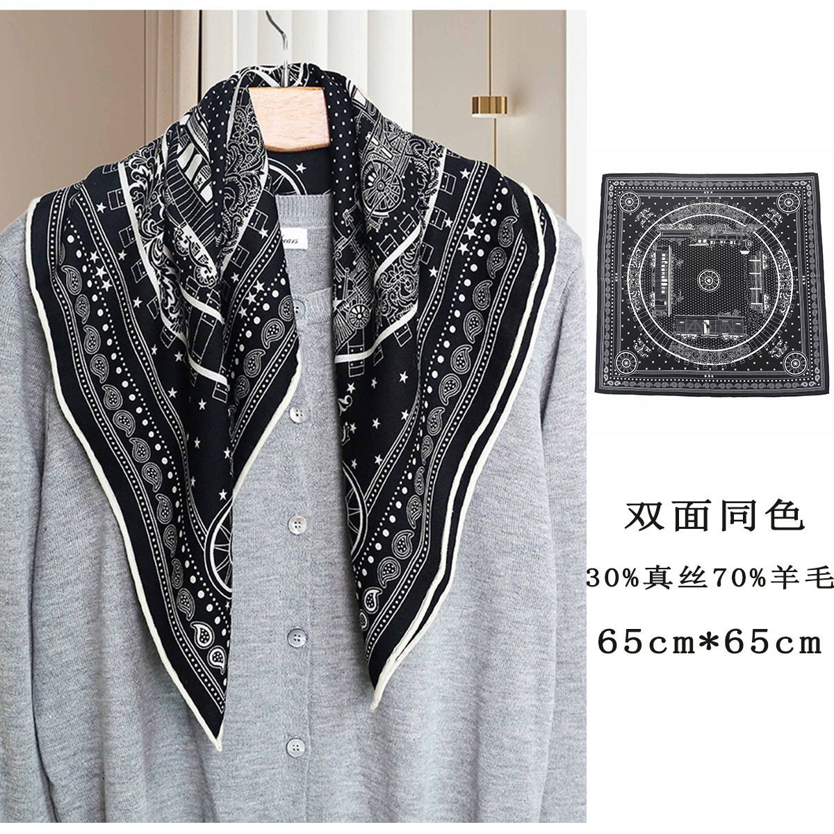 25가지 새로운 스타일의 패셔너블한 실크 스카프, 양면 이색 실크와 울 소재, 수제 롤 엣지 중국식 스카프 컬렉션스토어 가기