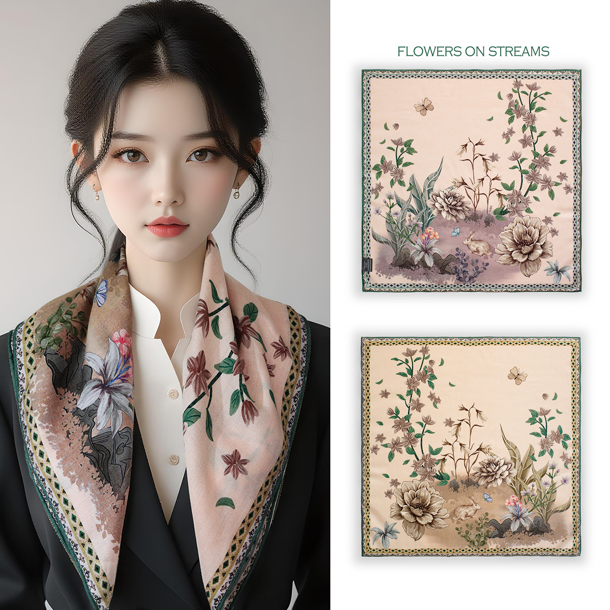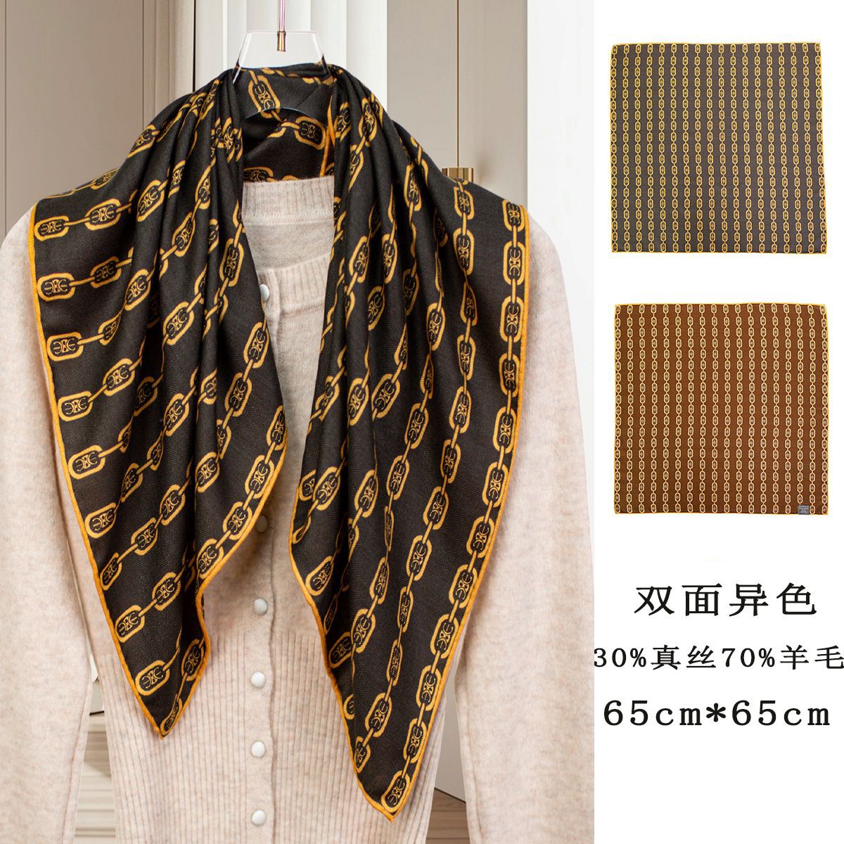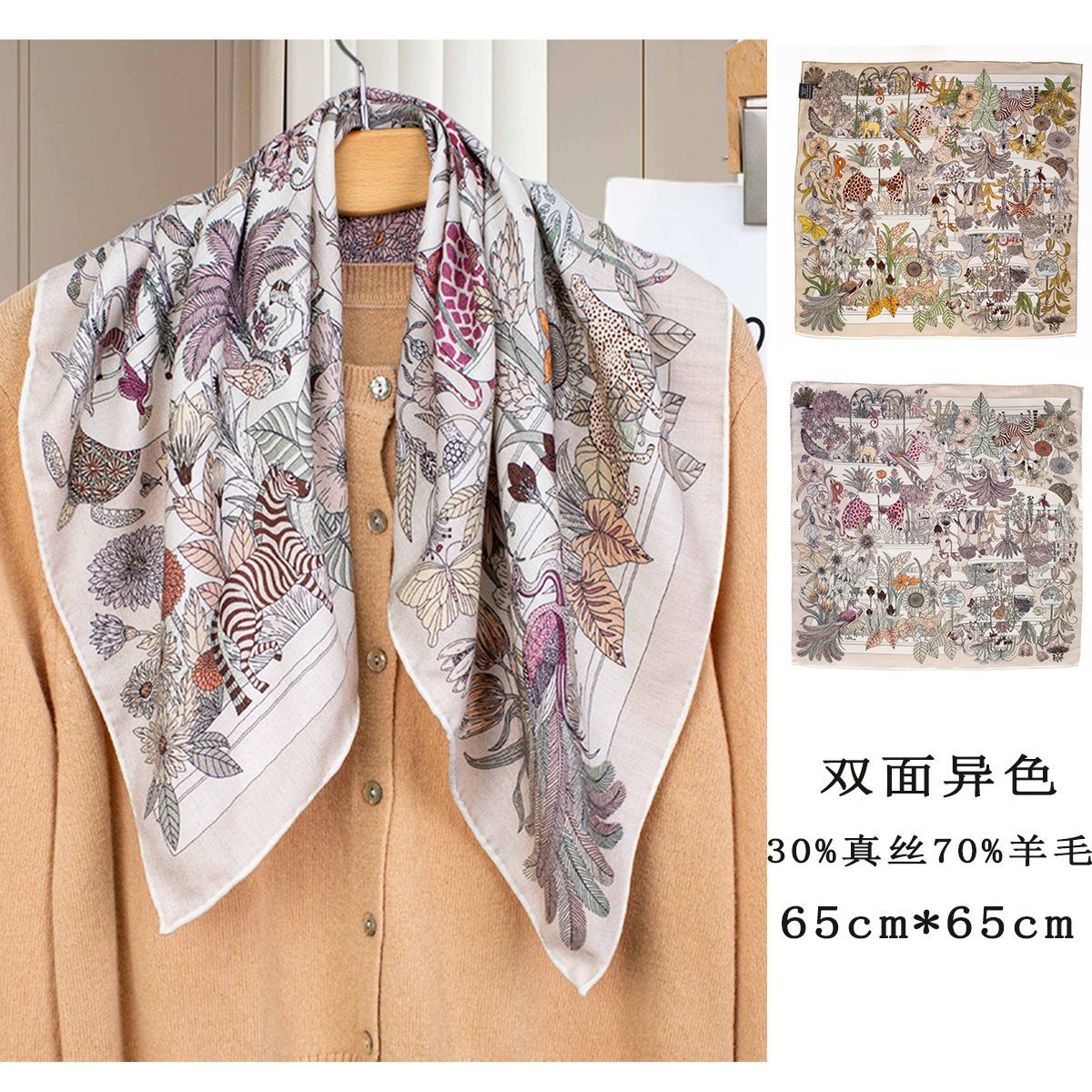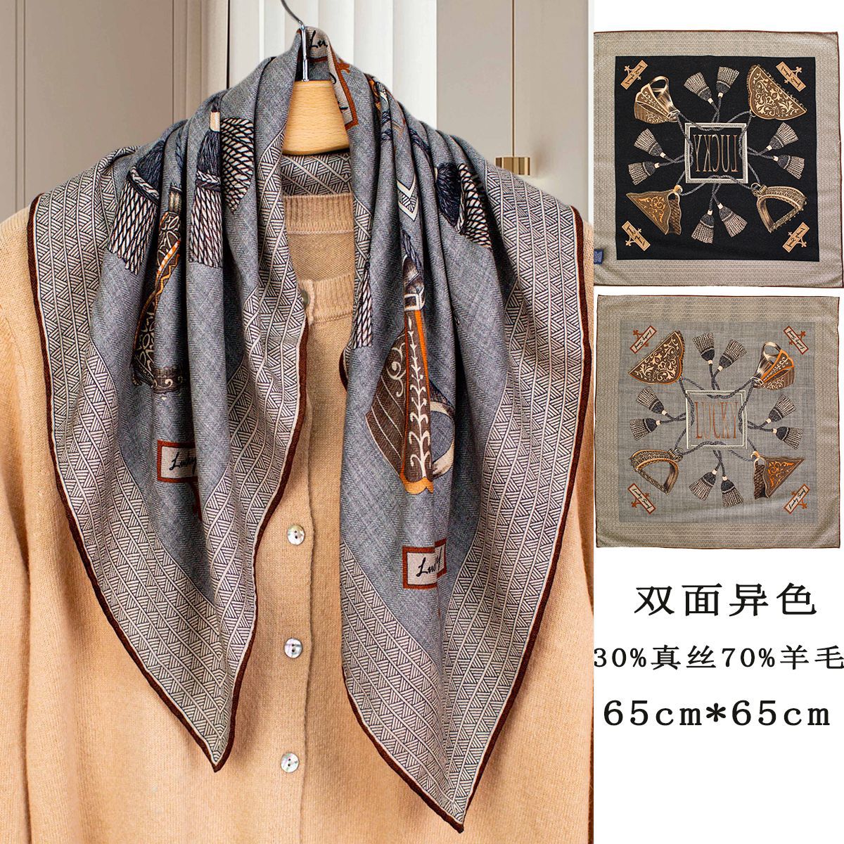 25가지 새로운 스타일의 패셔너블한 실크 스카프, 양면 이색 실크와 울 소재, 수제 롤 엣지 중국식 스카프 컬렉션스토어 가기