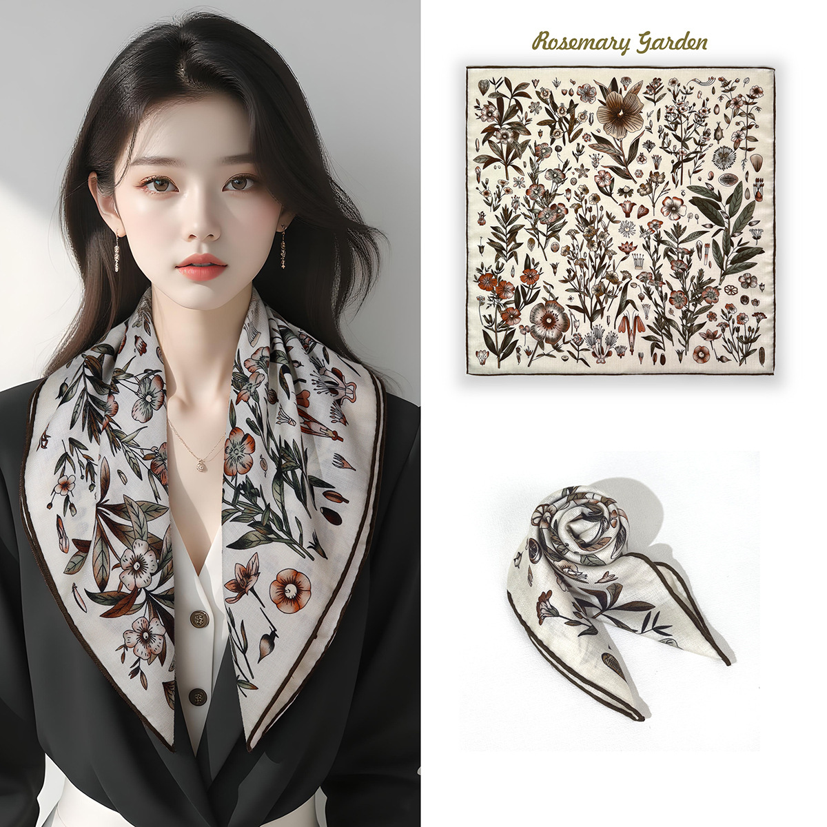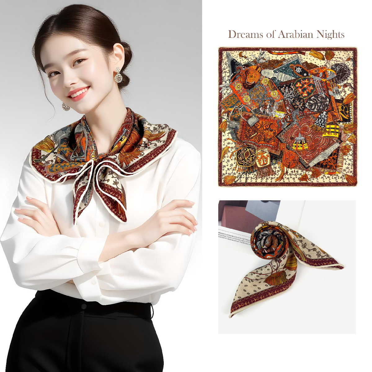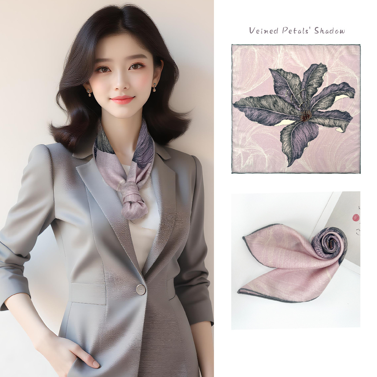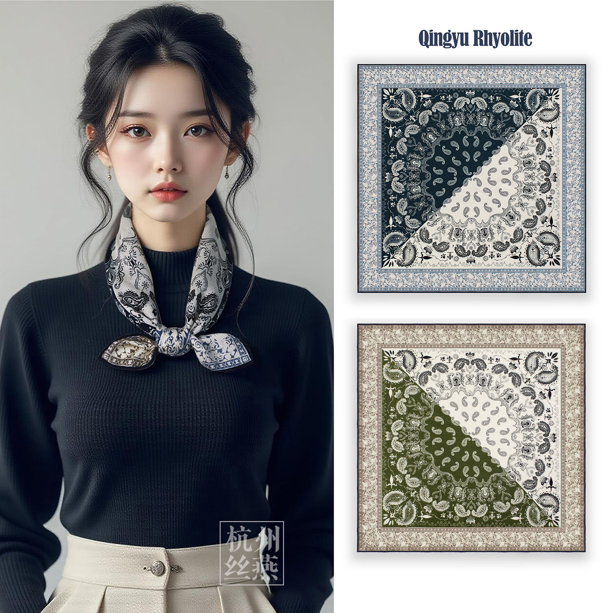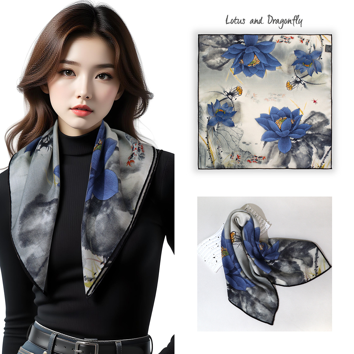 25가지 새로운 스타일의 패셔너블한 실크 스카프, 양면 이색 실크와 울 소재, 수제 롤 엣지 중국식 스카프 컬렉션