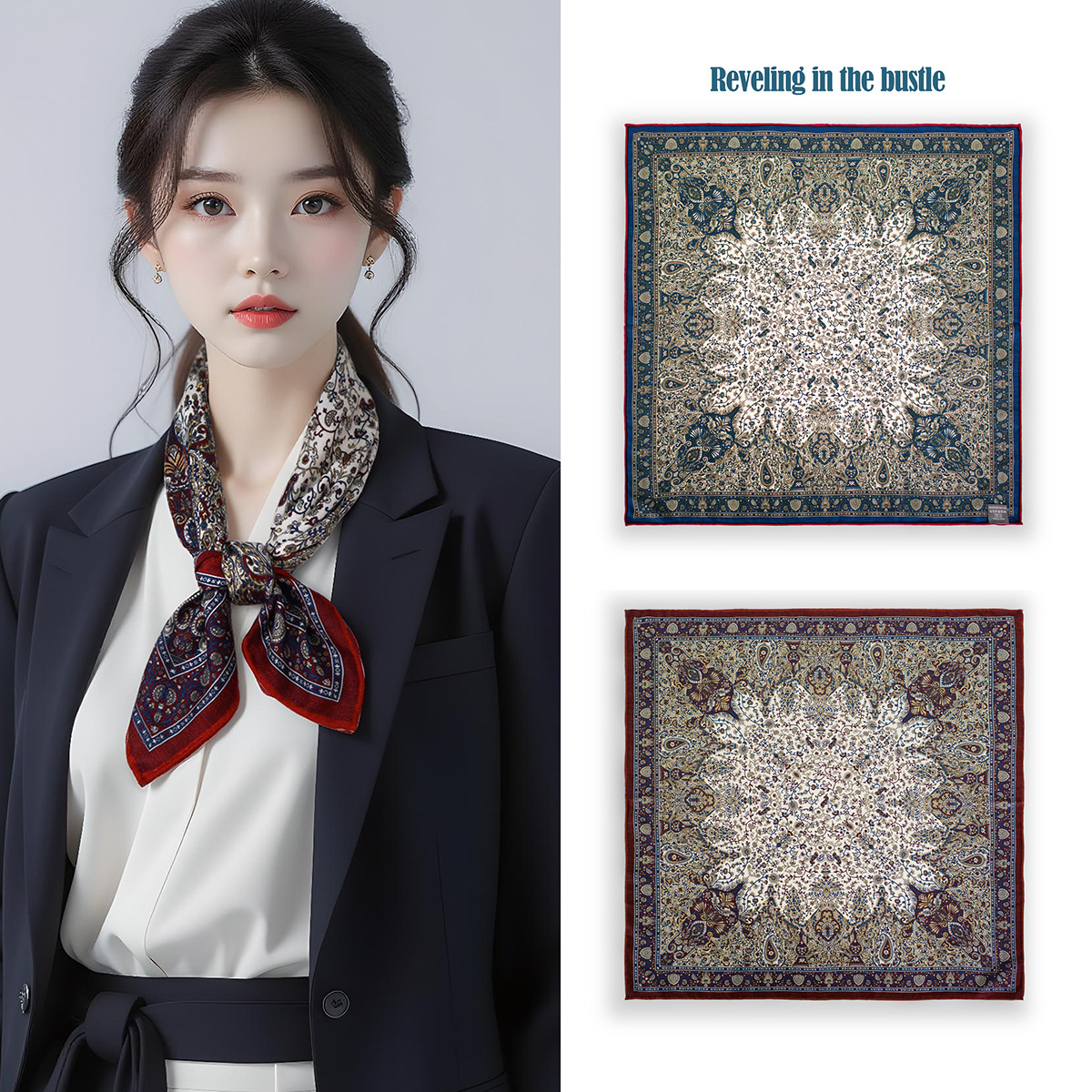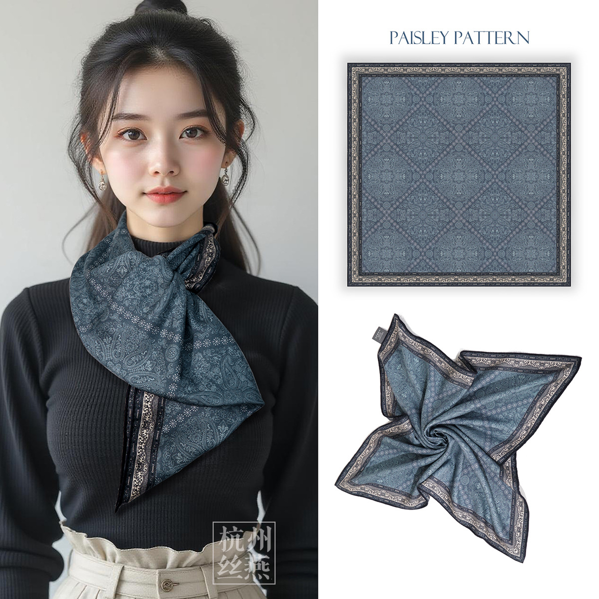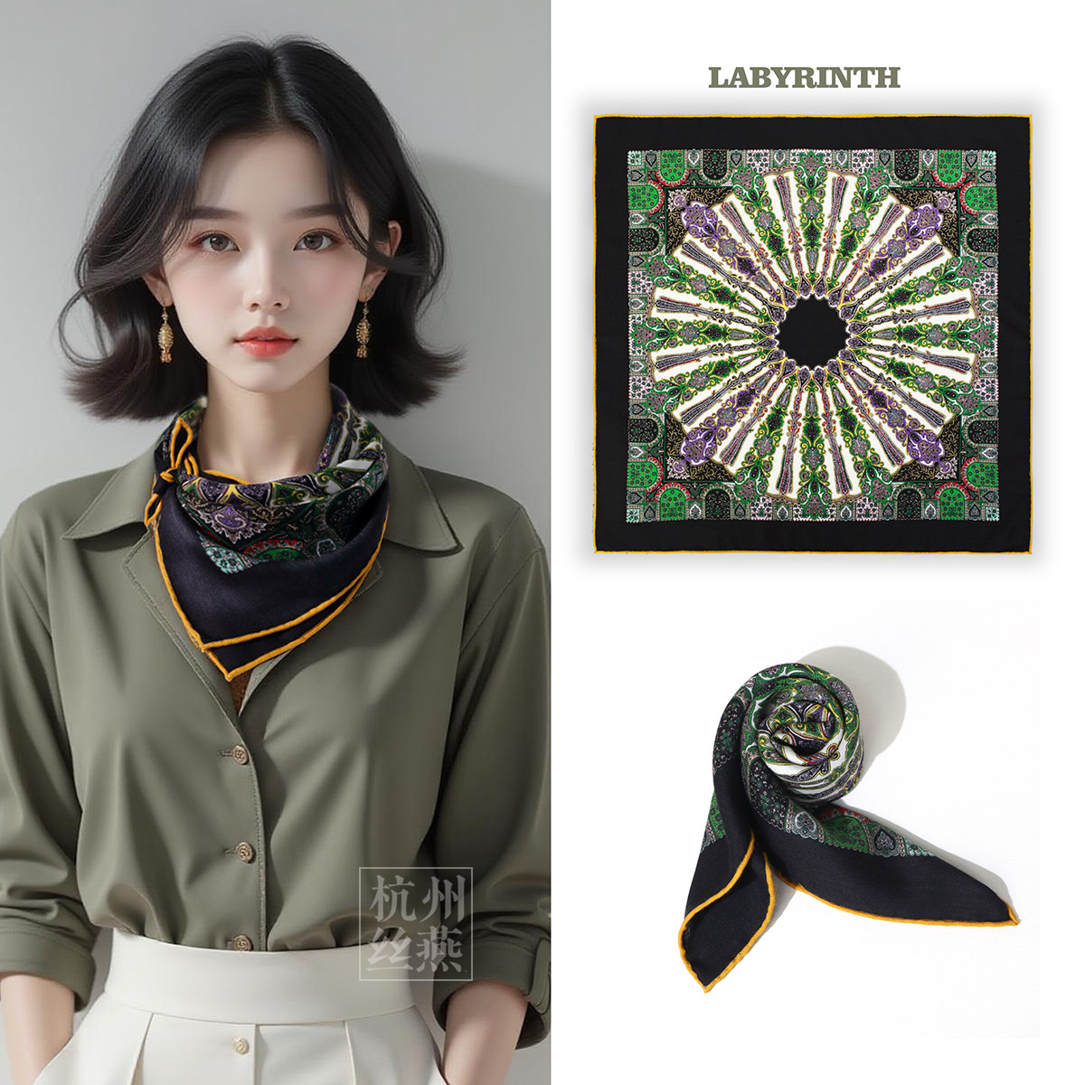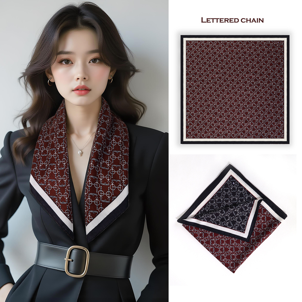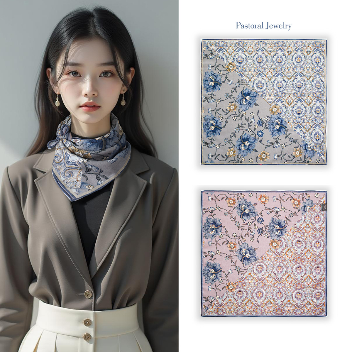 25가지 새로운 스타일의 패셔너블한 실크 스카프, 양면 이색 실크와 울 소재, 수제 롤 엣지 중국식 스카프 컬렉션