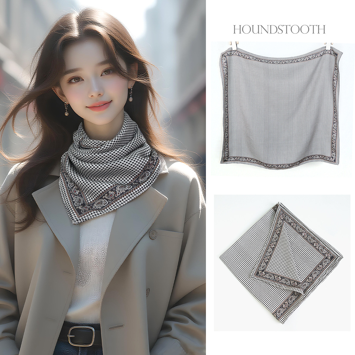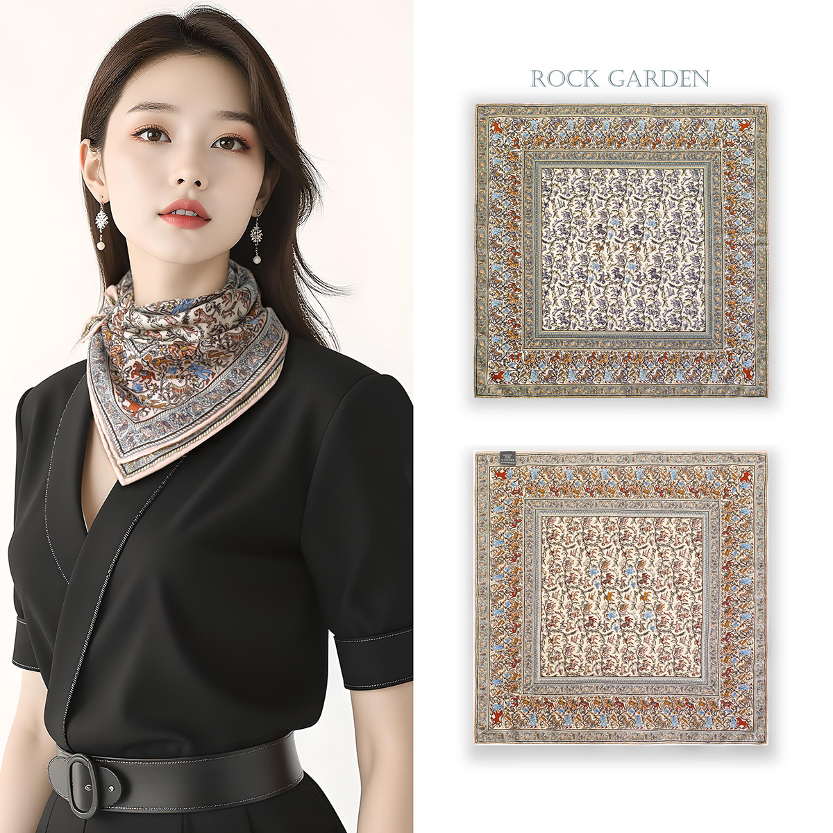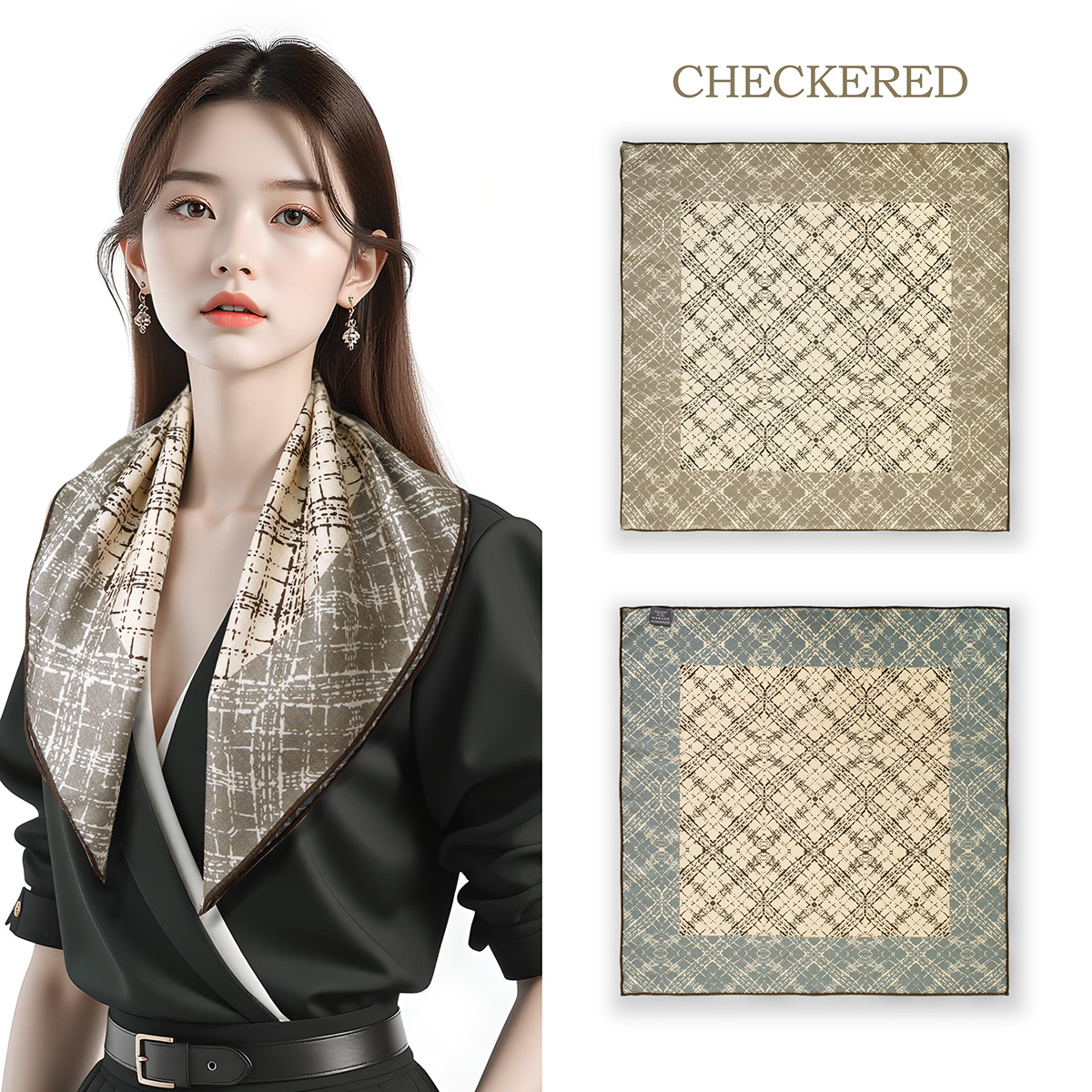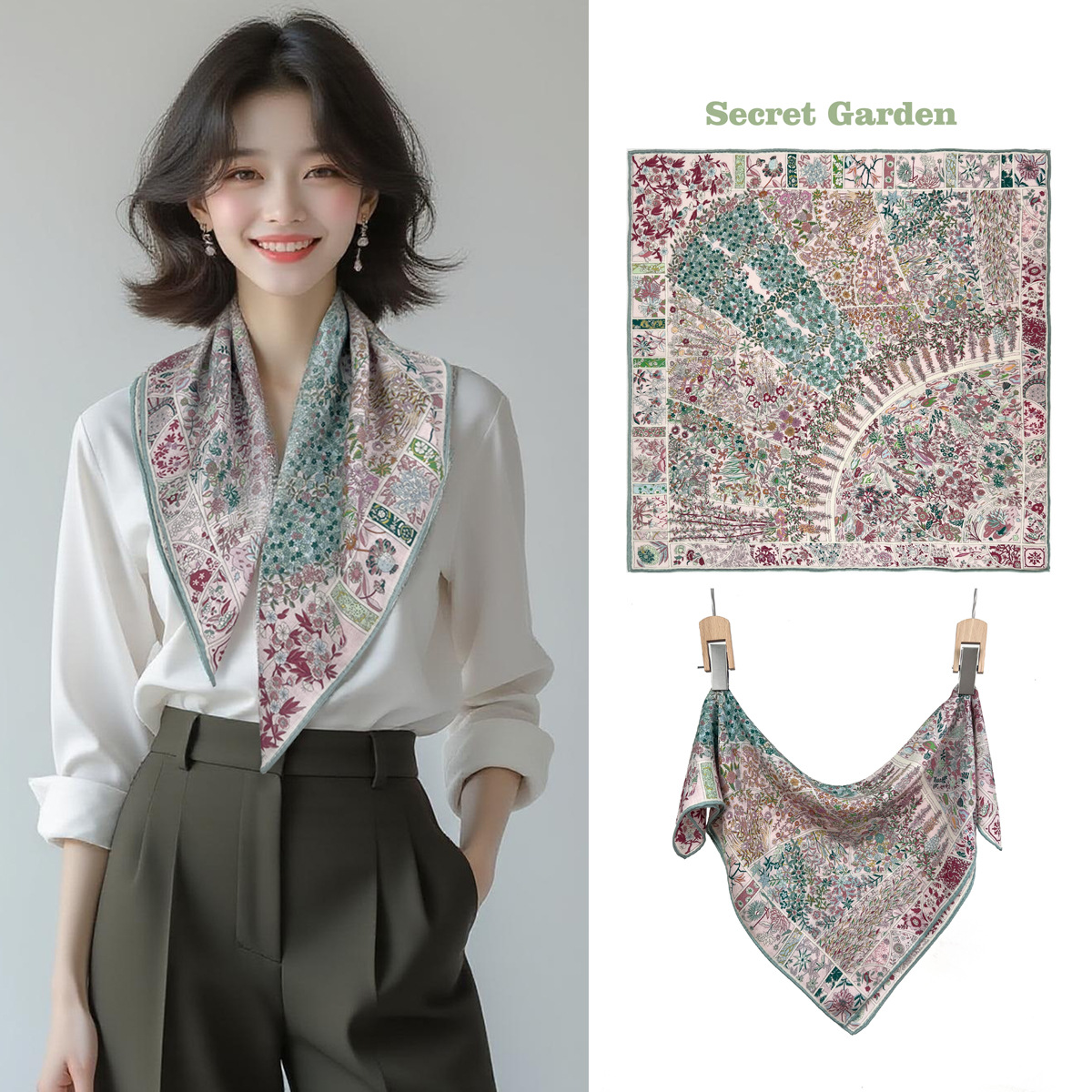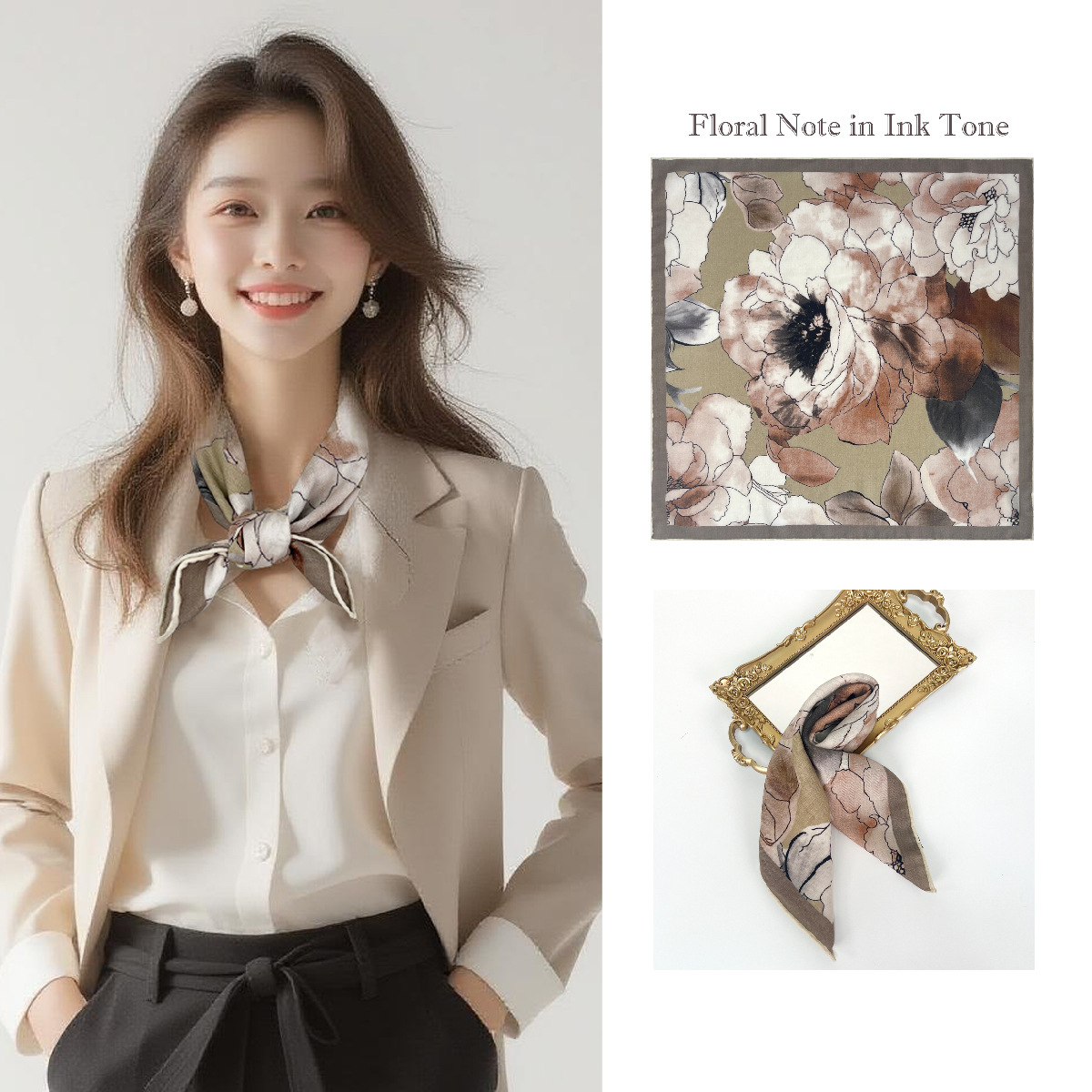 25가지 새로운 스타일의 패셔너블한 실크 스카프, 양면 이색 실크와 울 소재, 수제 롤 엣지 중국식 스카프 컬렉션