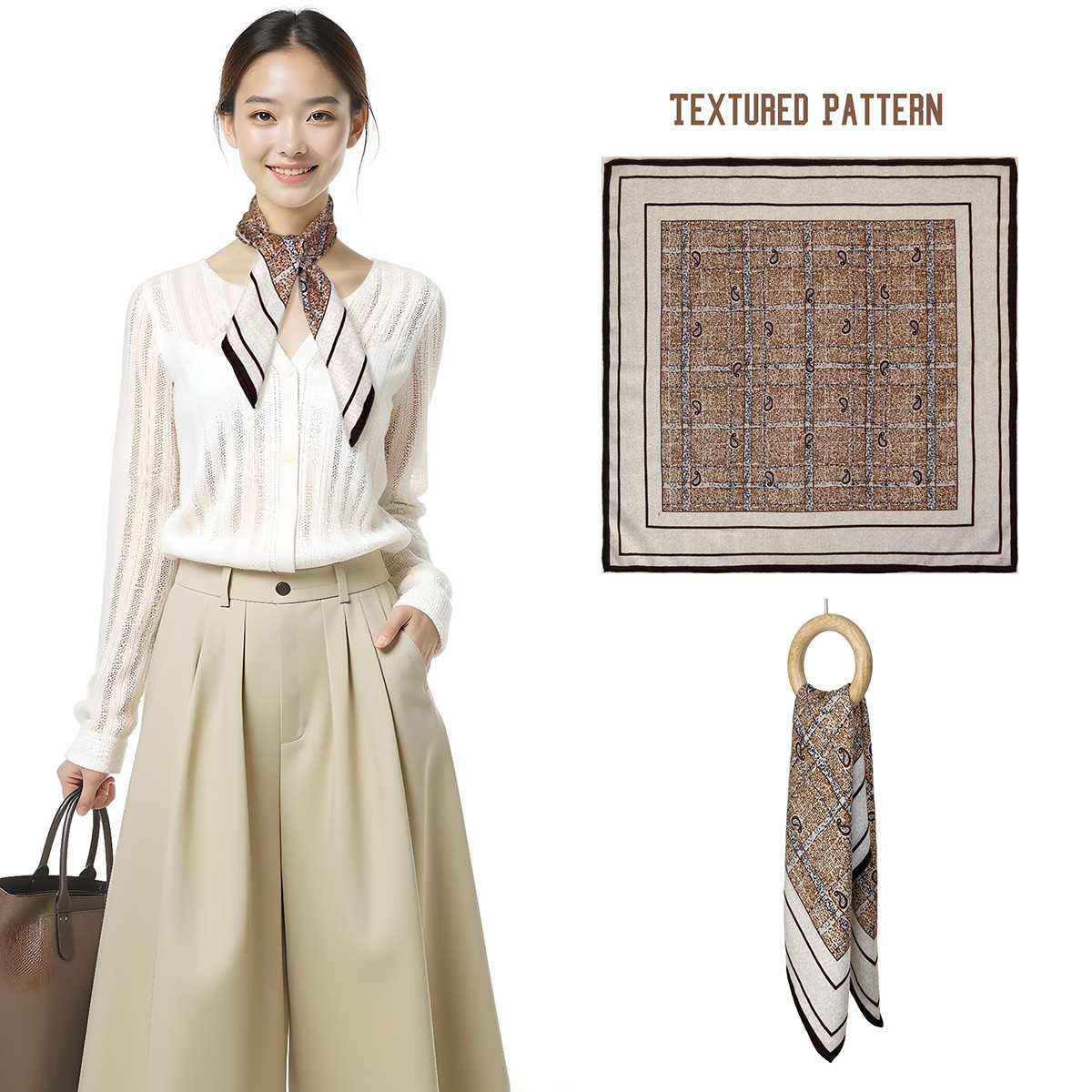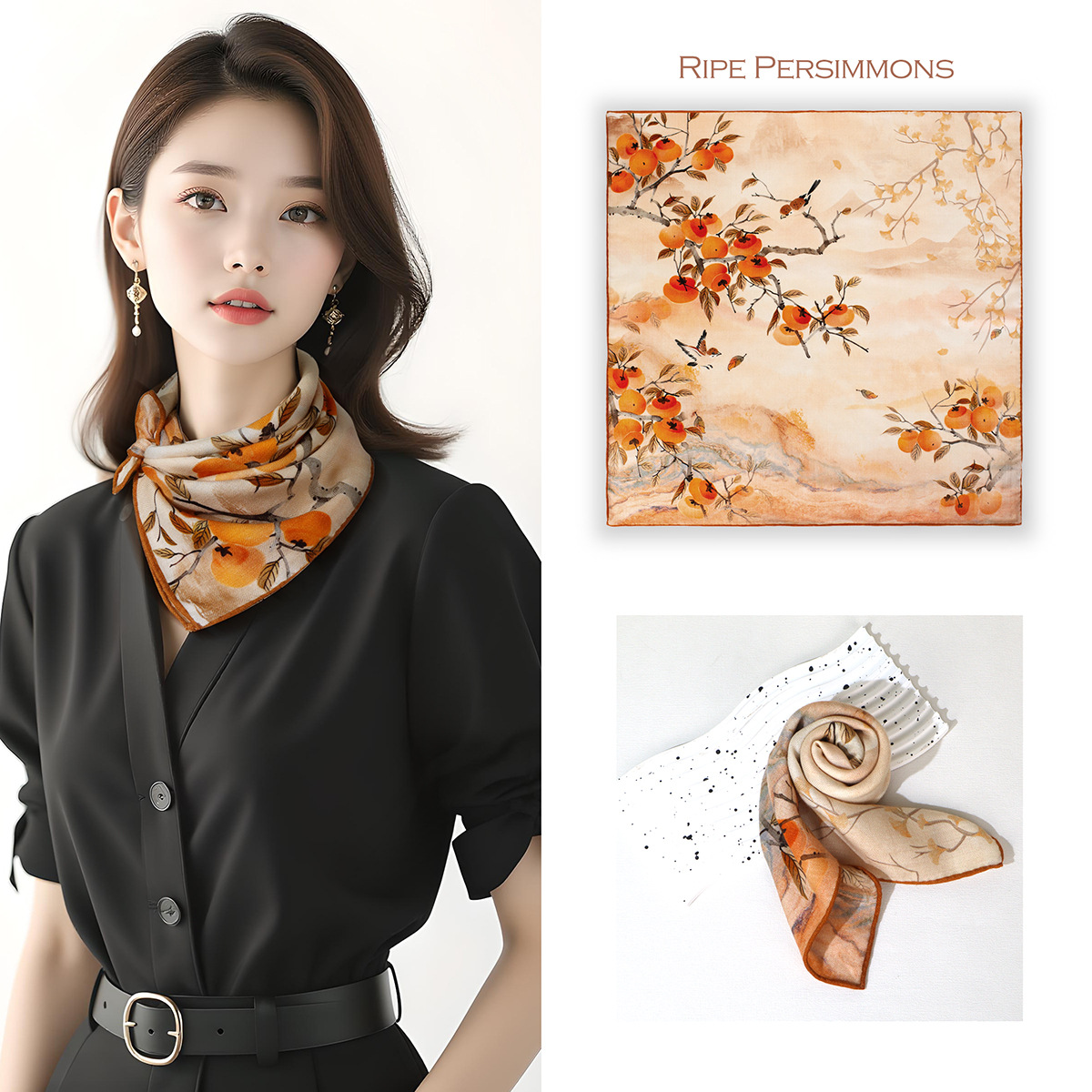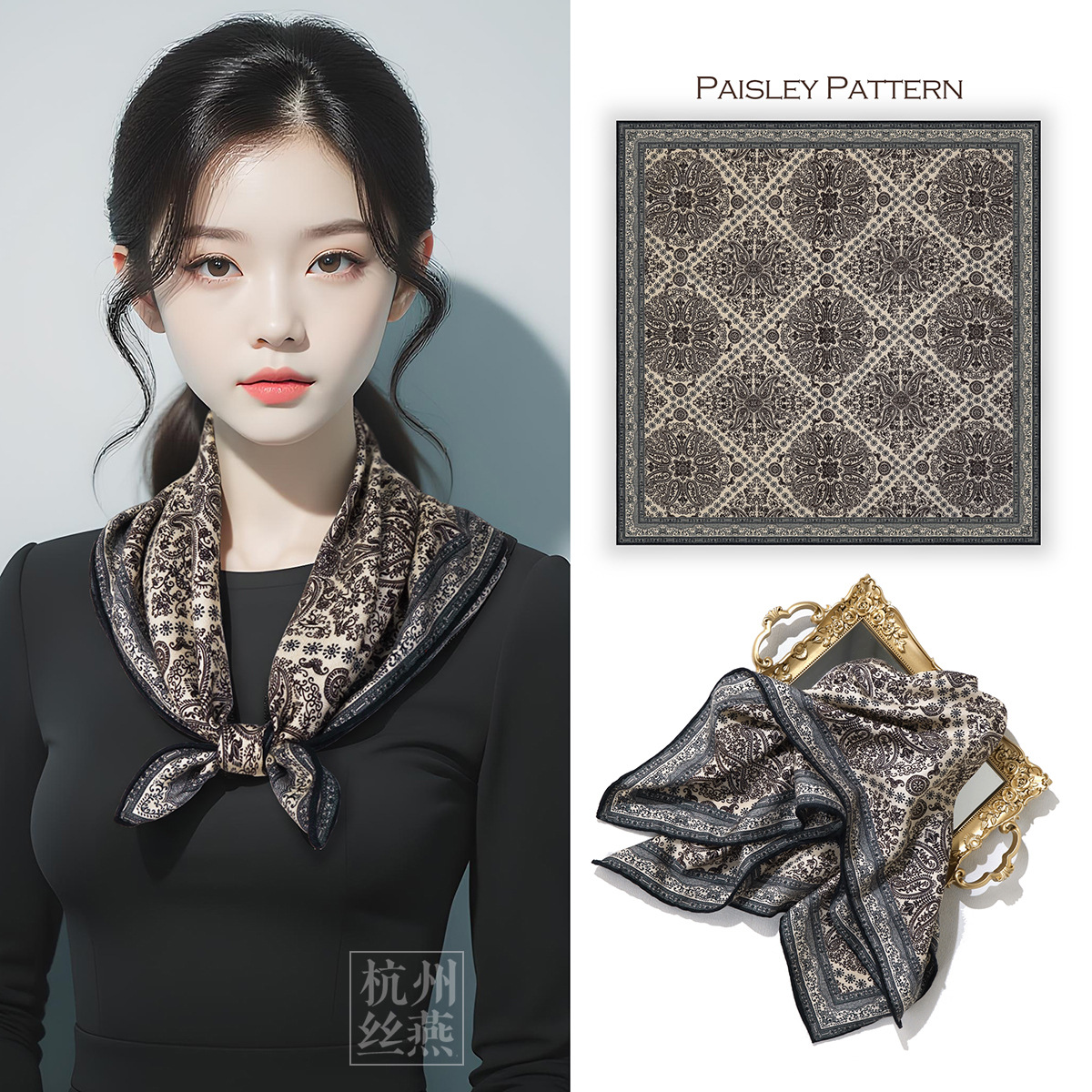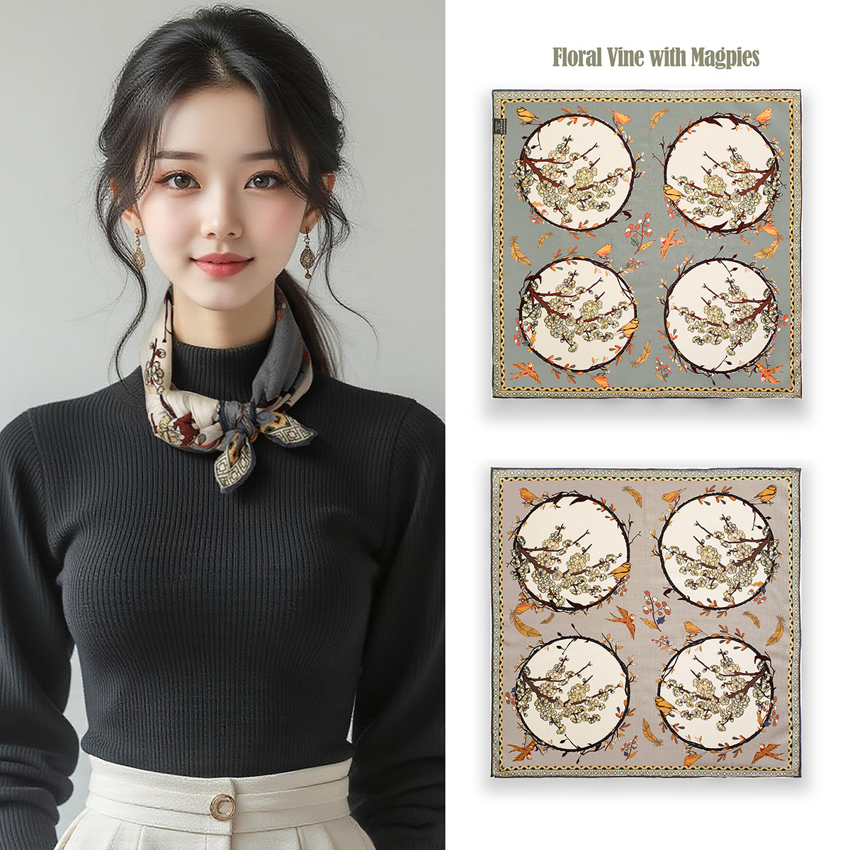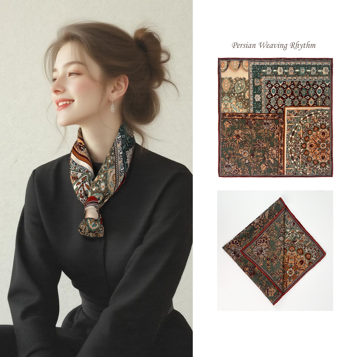 25가지 새로운 스타일의 패셔너블한 실크 스카프, 양면 이색 실크와 울 소재, 수제 롤 엣지 중국식 스카프 컬렉션
