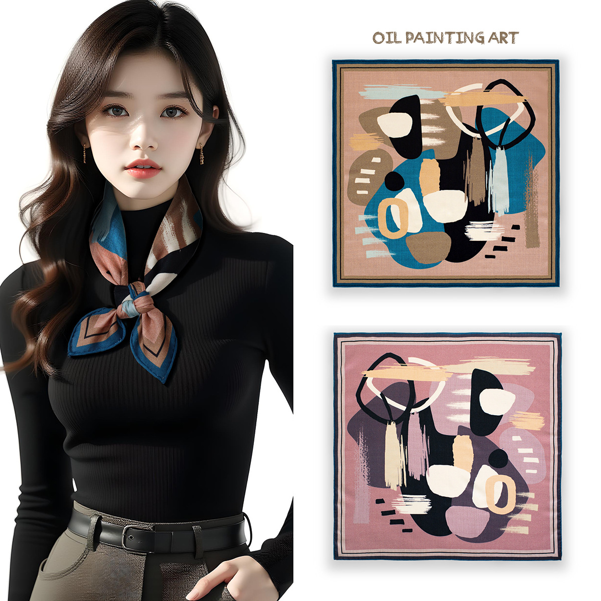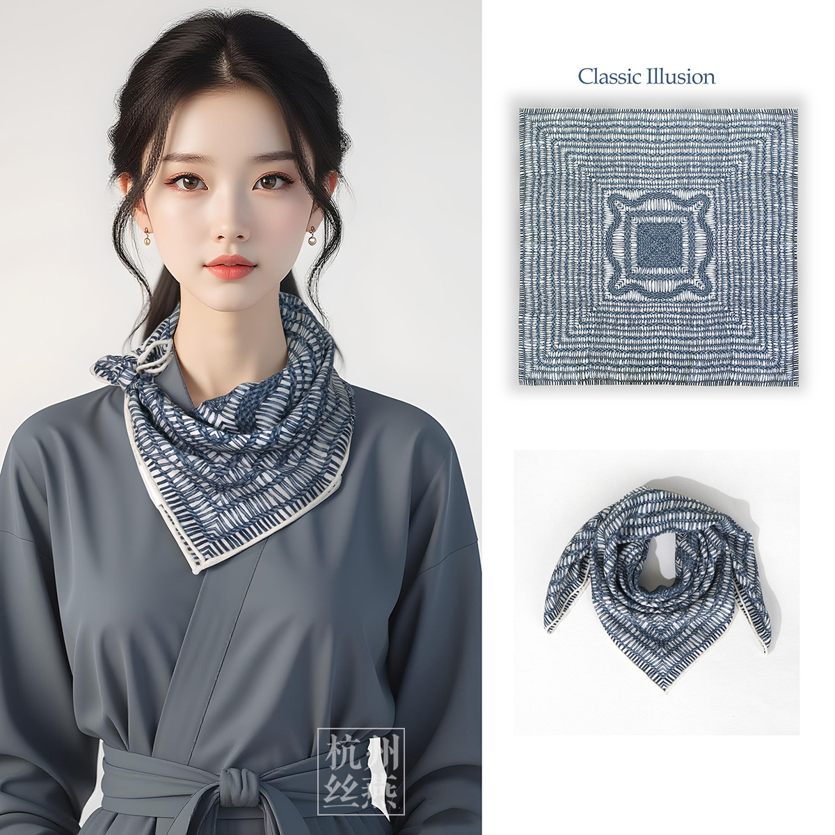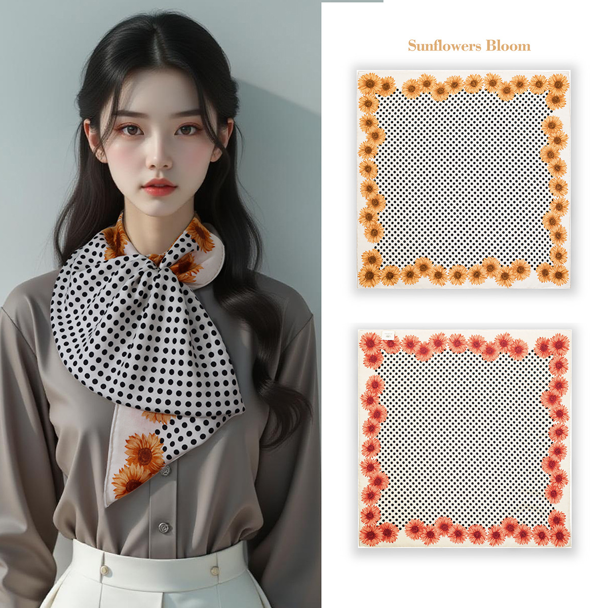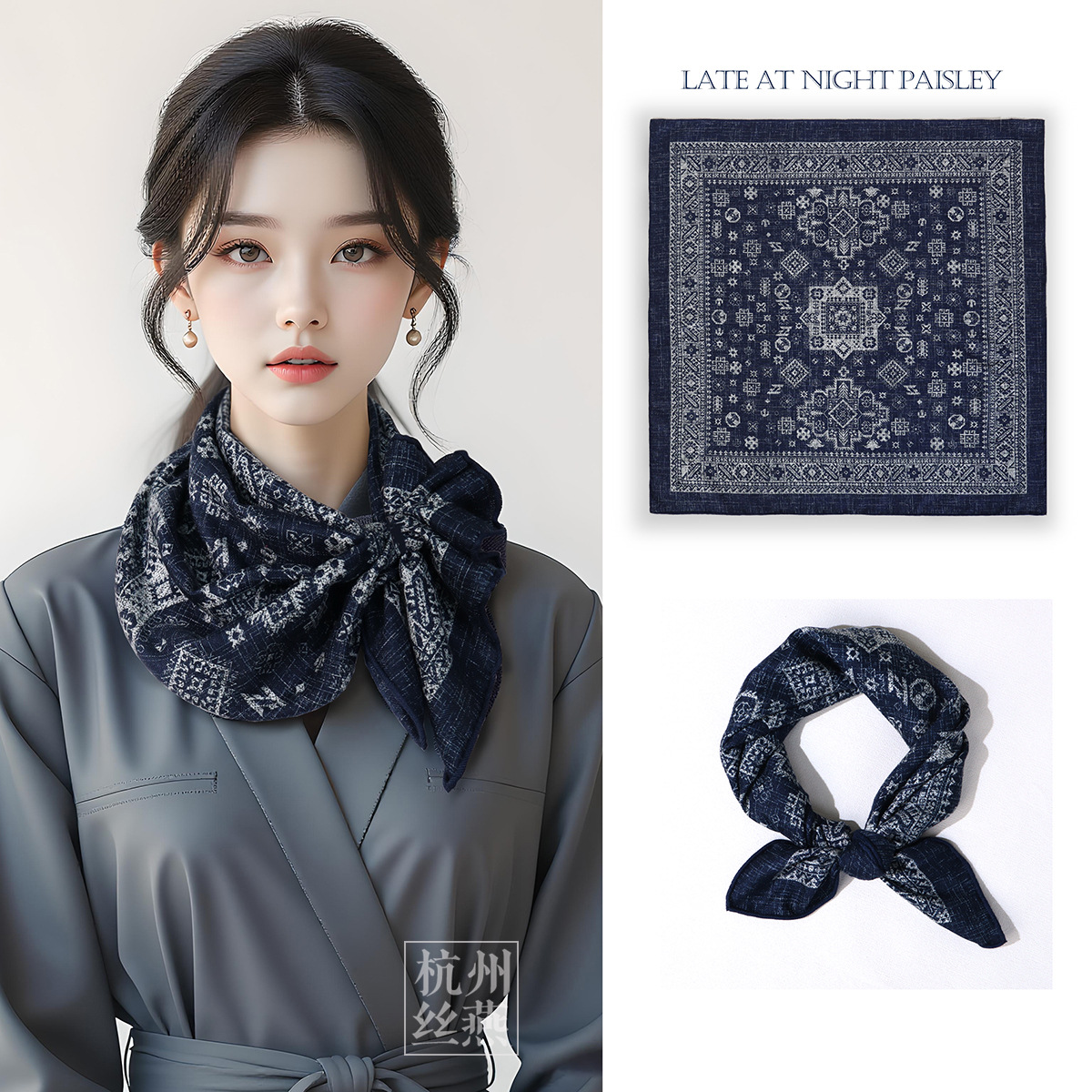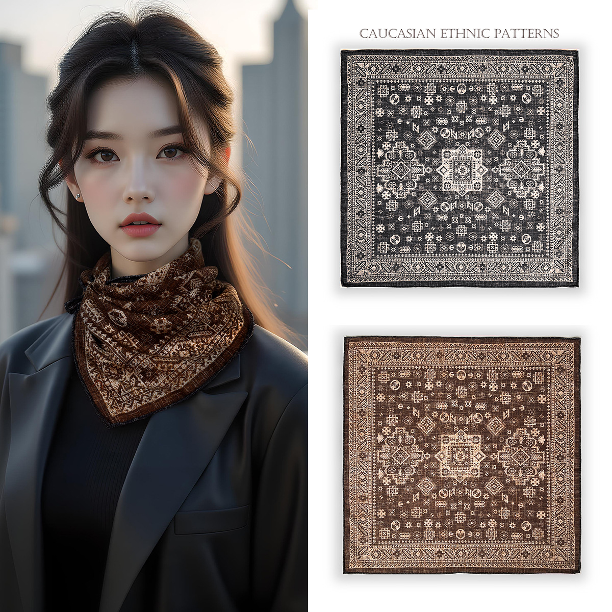 25가지 새로운 스타일의 패셔너블한 실크 스카프, 양면 이색 실크와 울 소재, 수제 롤 엣지 중국식 스카프 컬렉션