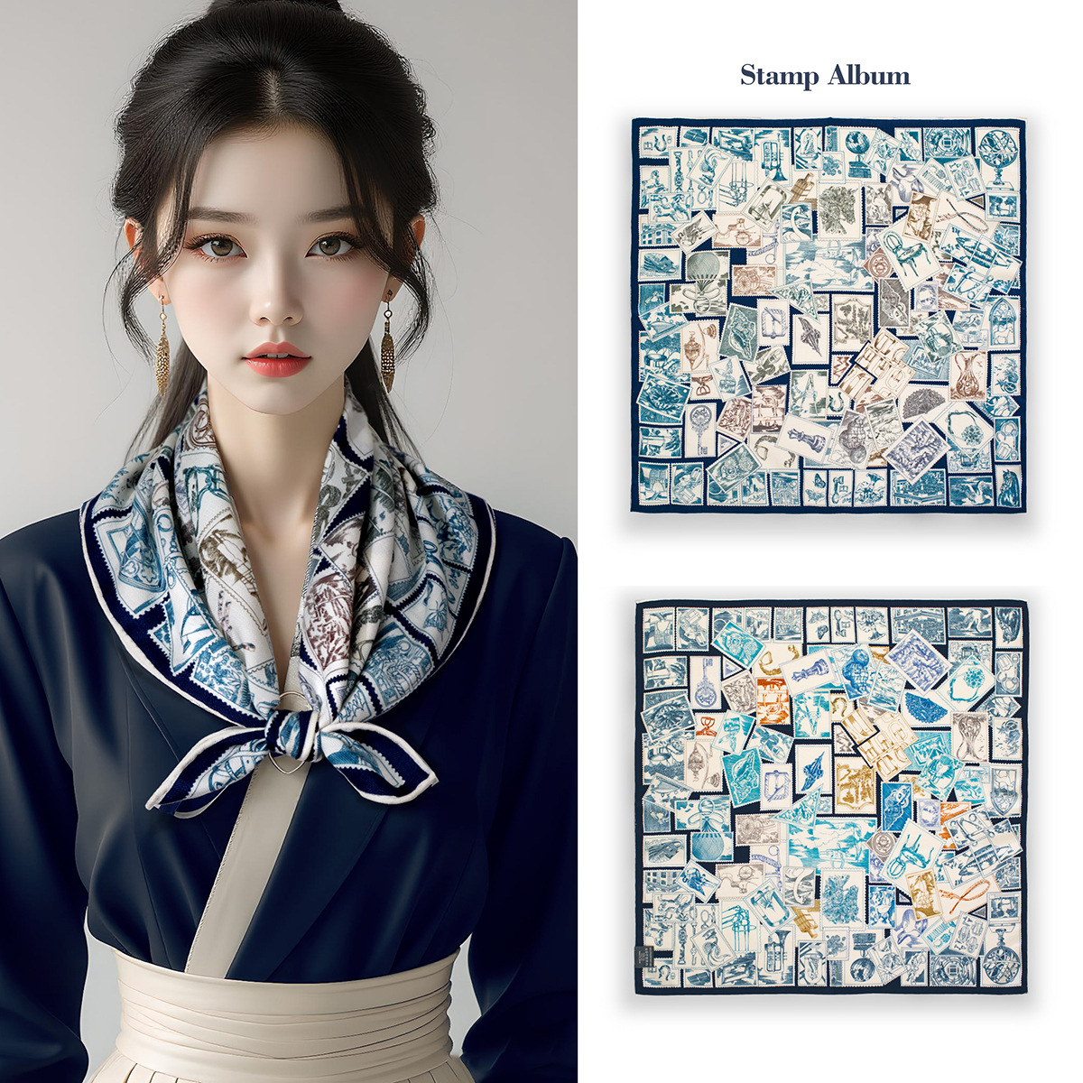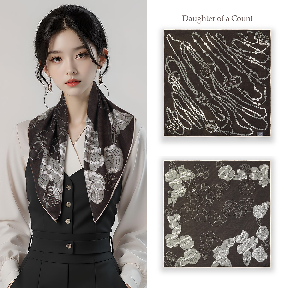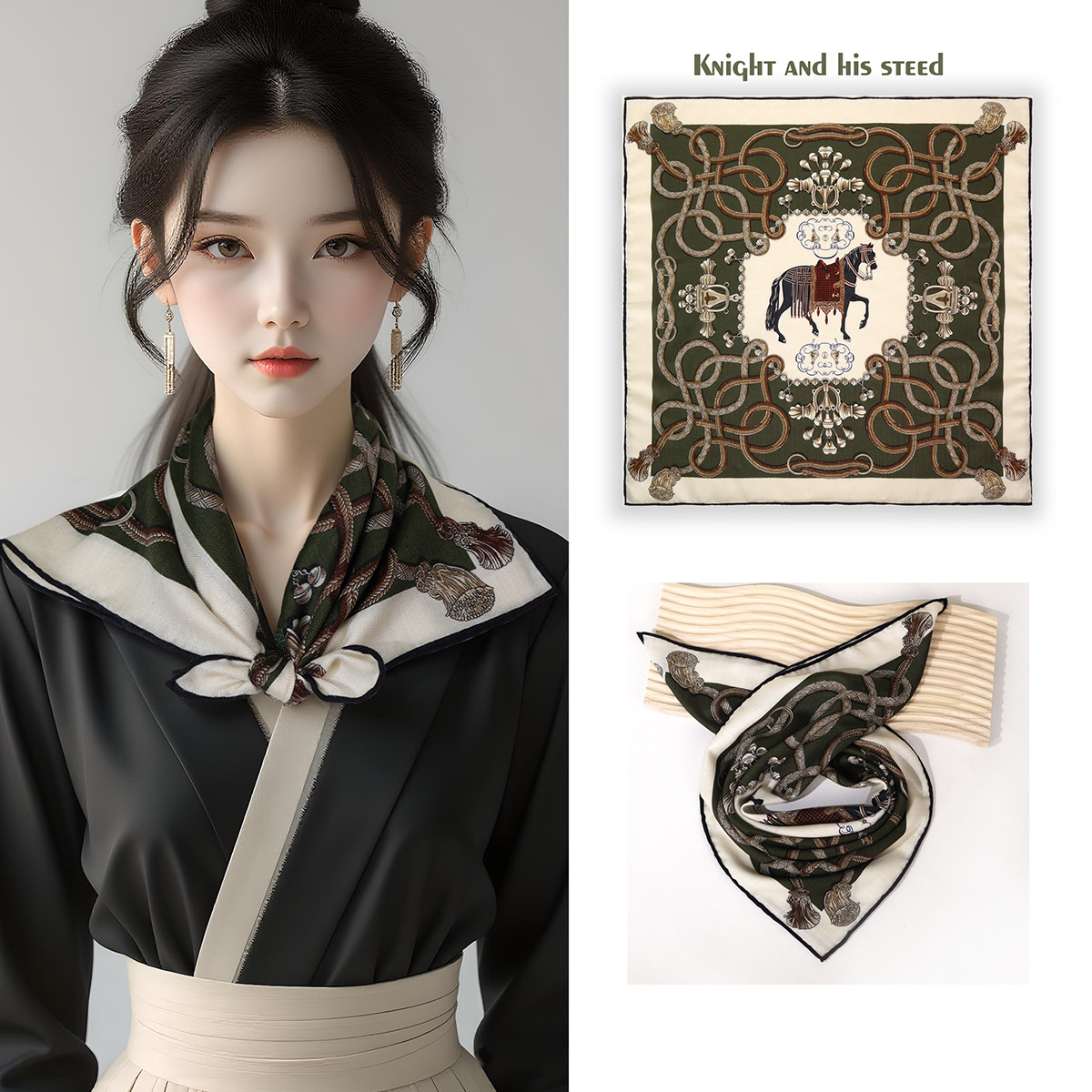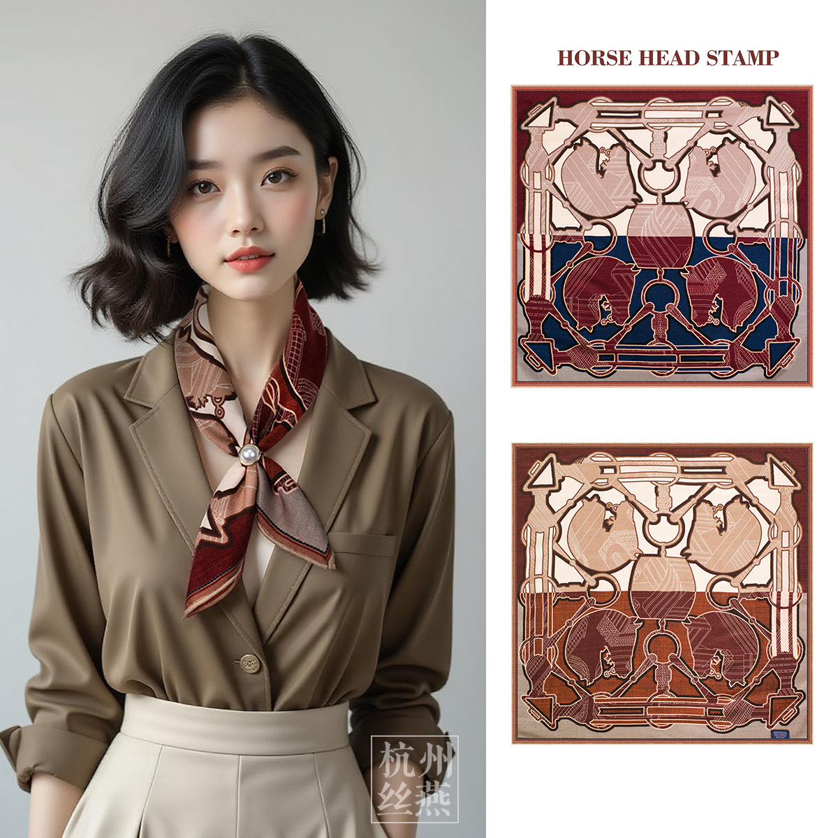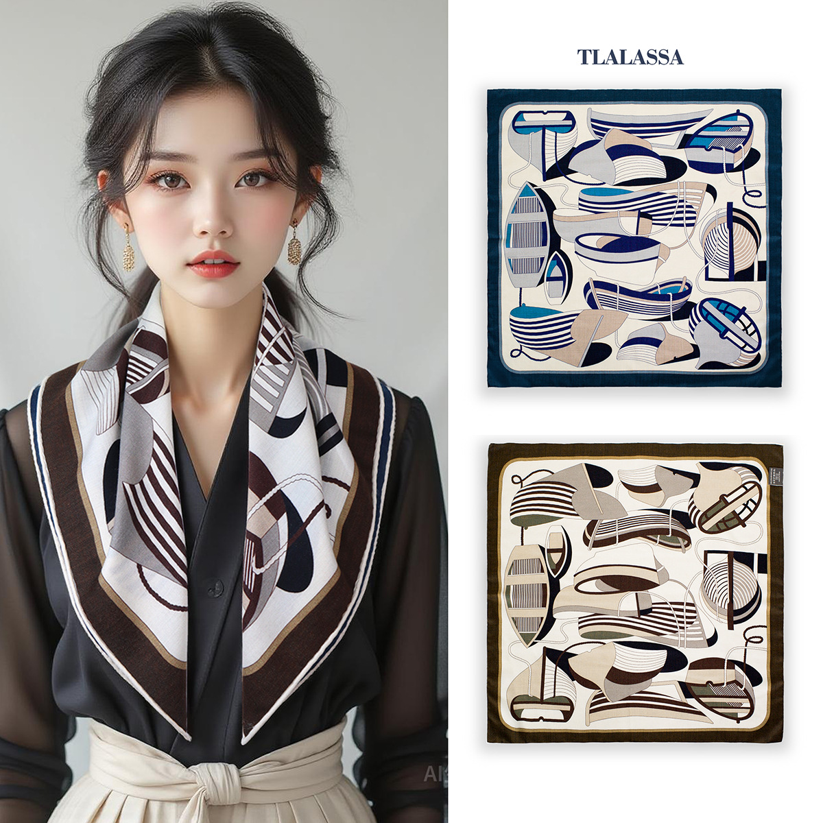 25가지 새로운 스타일의 패셔너블한 실크 스카프, 양면 이색 실크와 울 소재, 수제 롤 엣지 중국식 스카프 컬렉션