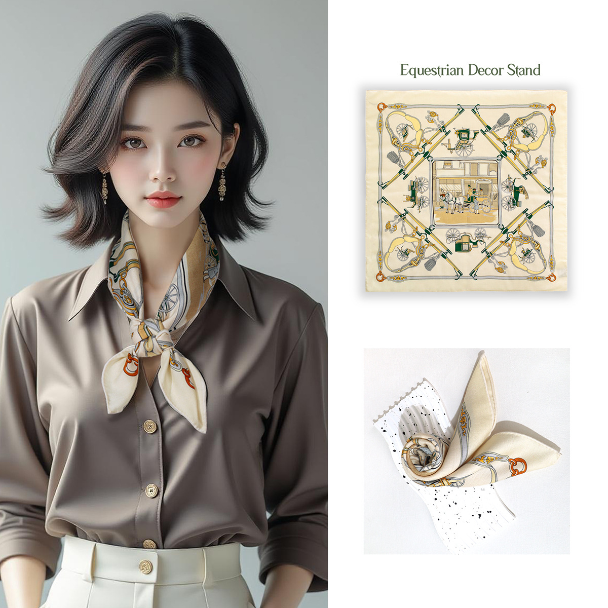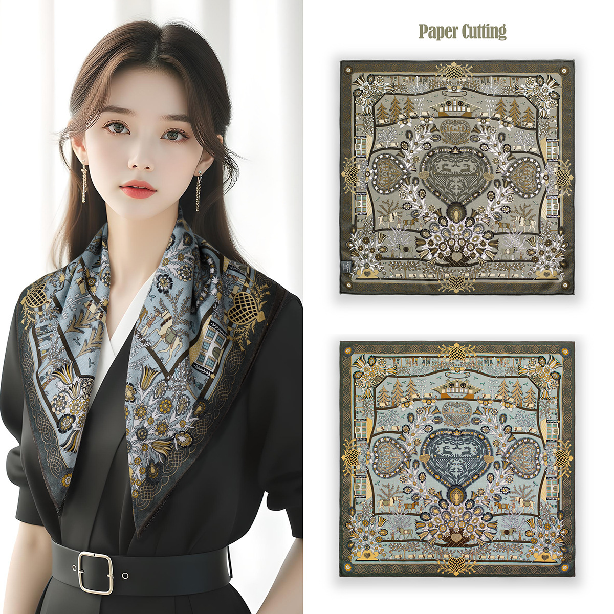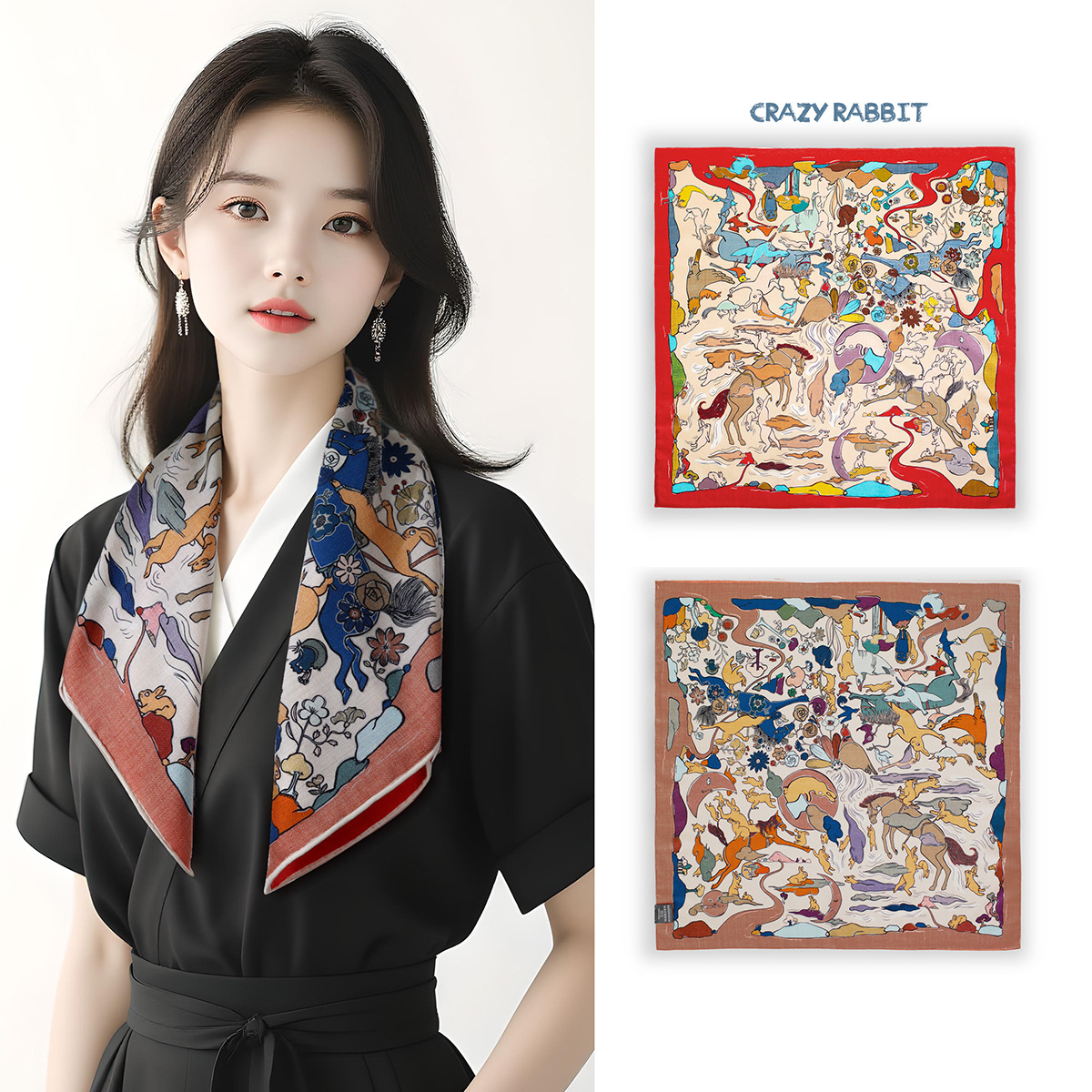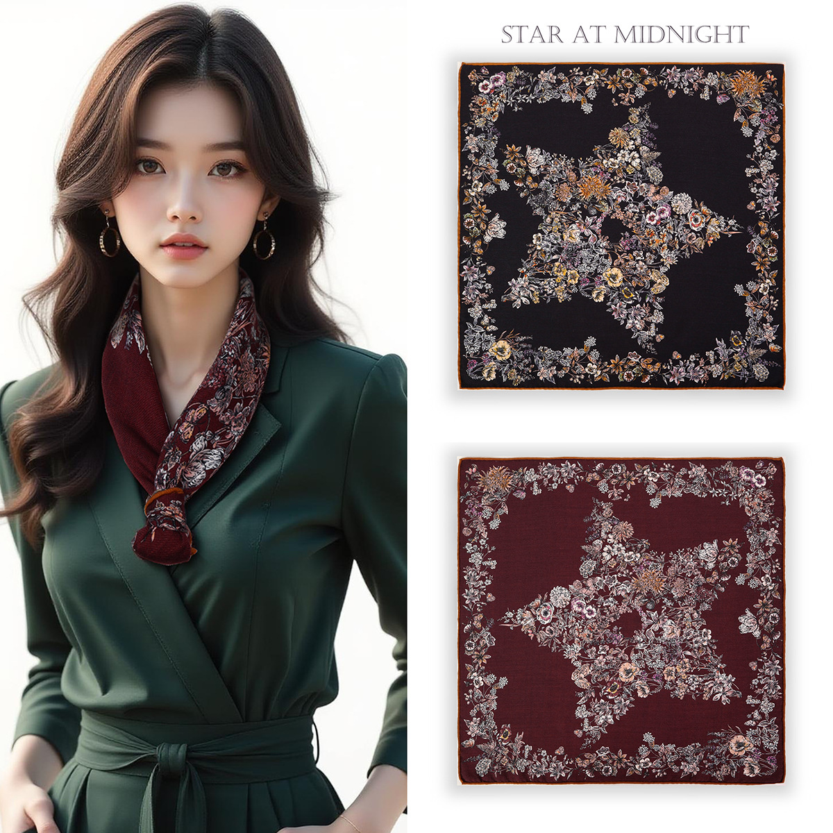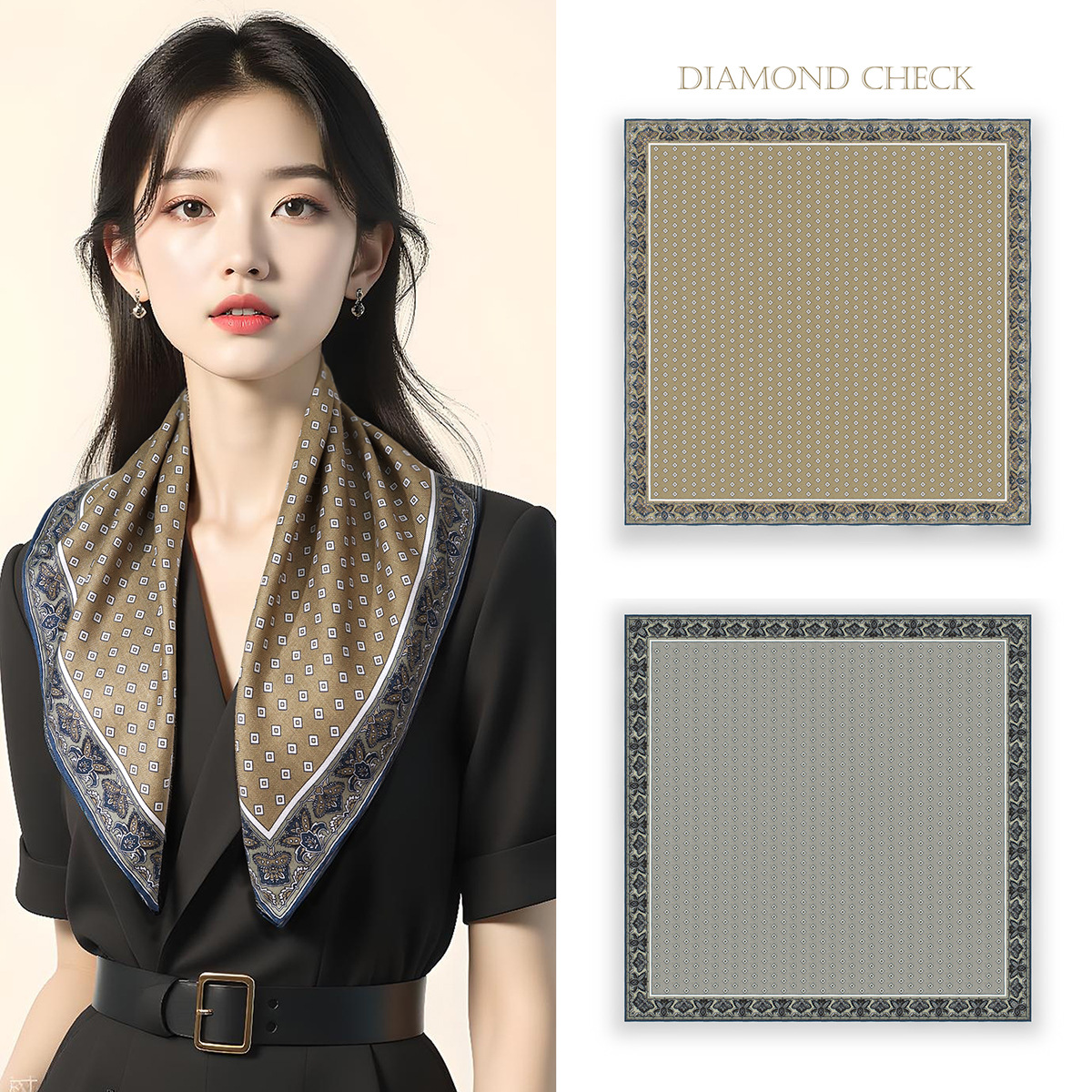 25가지 새로운 스타일의 패셔너블한 실크 스카프, 양면 이색 실크와 울 소재, 수제 롤 엣지 중국식 스카프 컬렉션