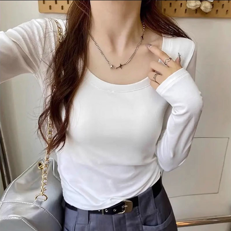 여자 가을과 겨울 새로운 긴팔 슬림 핏 슬림 핏 스크럽 따뜻한 우아한 올 매치 탑스토어 가기