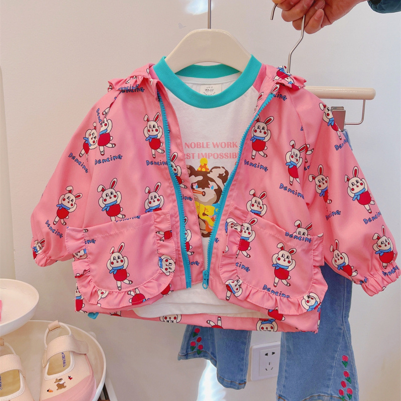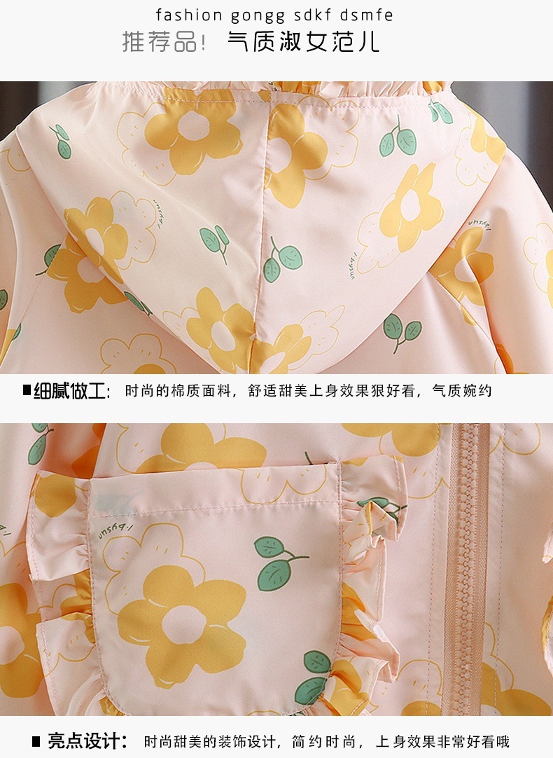 소녀 그물 빨간 후드 트렌치 코트 한국식 외국 스타일 튀긴 거리 가을 새로운 1-6 세 아기 2 봄과 가을 패션