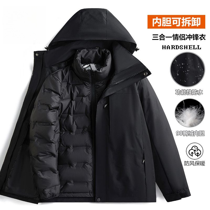 겨울 두꺼운 새로운 3 대 1 재킷 남자의 겨울 따뜻한 그래 핀 분리 가능한 다운 재킷스토어 가기