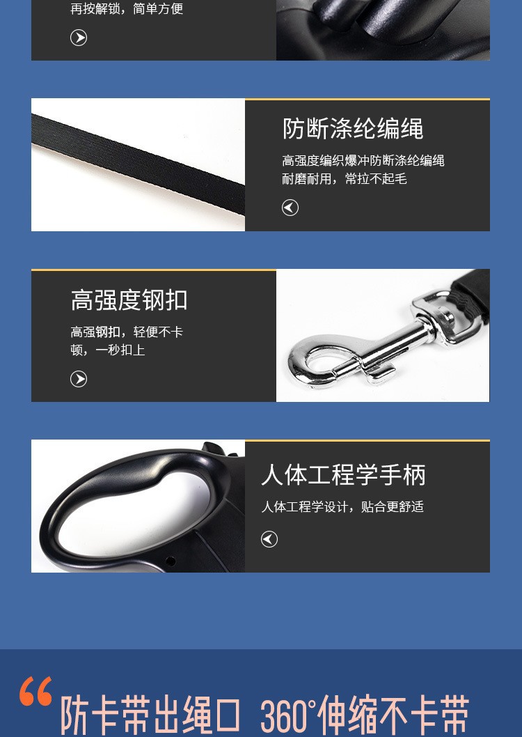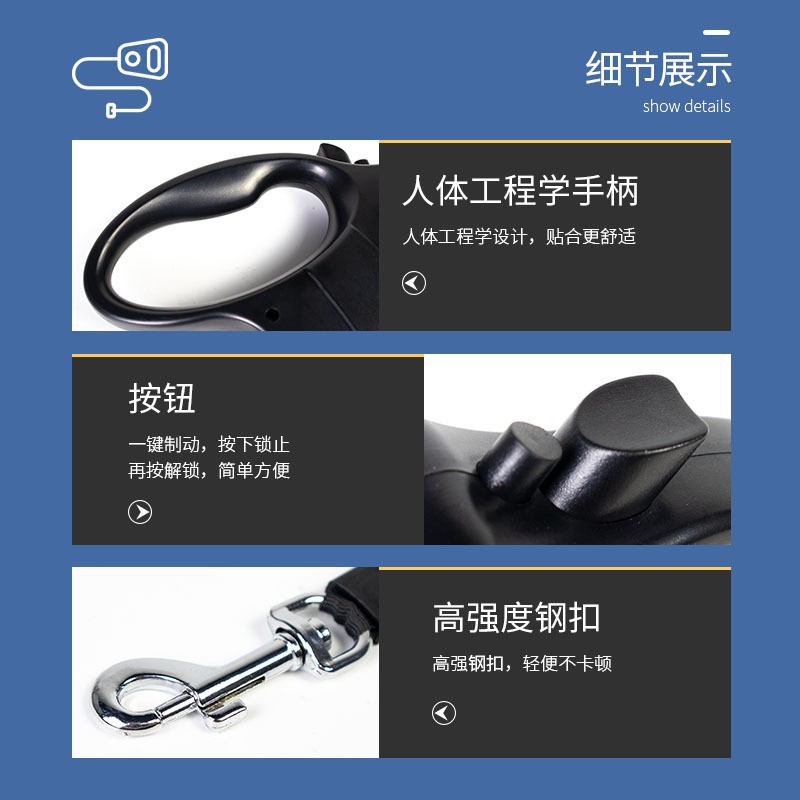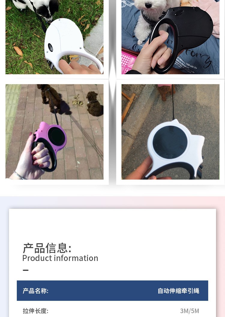 국경 간 공급 자동 개폐식 고양이 가죽 끈 개 가죽 끈 확장 개 체인 5M 애완 동물 용품 공장 도매