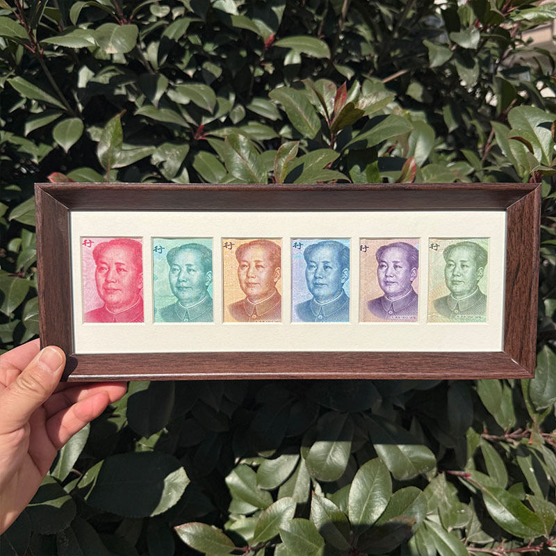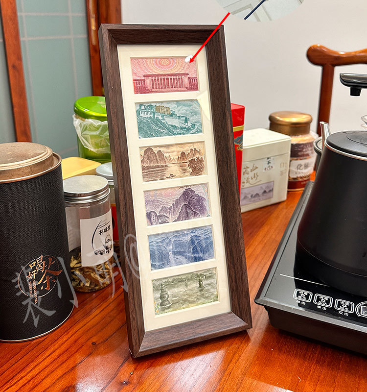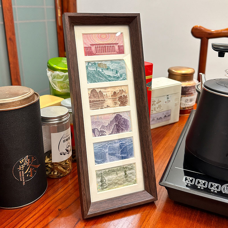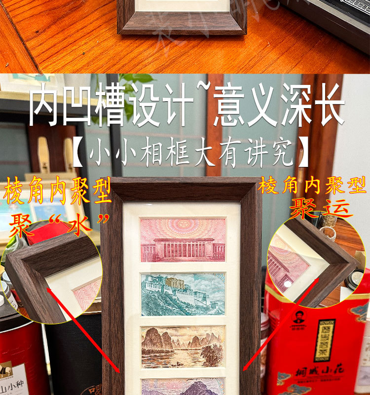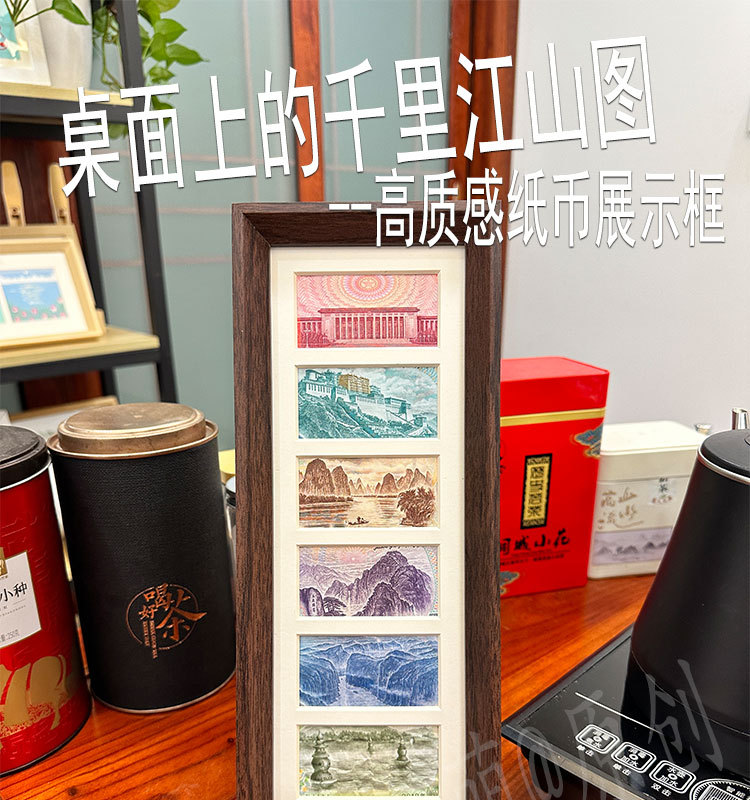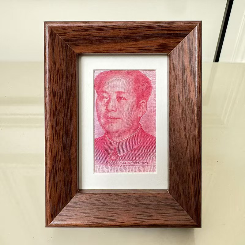 위안화 사진 프레임 100 위안 머리 초상화 디스플레이 프레임 집들이 새 집 선물 단단한 나무 6 프레임 지폐 서예 및 그림 테이블
