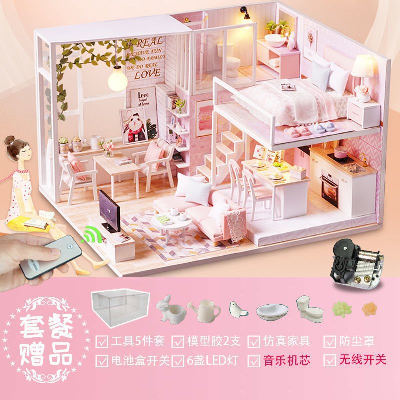 여성을위한 수제 미니 하우스 빌딩 빌라 모델 조립 창조적 인 장난감 생일 선물