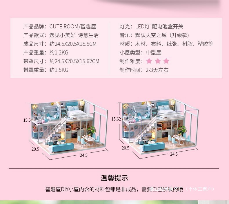 여성을위한 수제 미니 하우스 빌딩 빌라 모델 조립 창조적 인 장난감 생일 선물스토어 가기