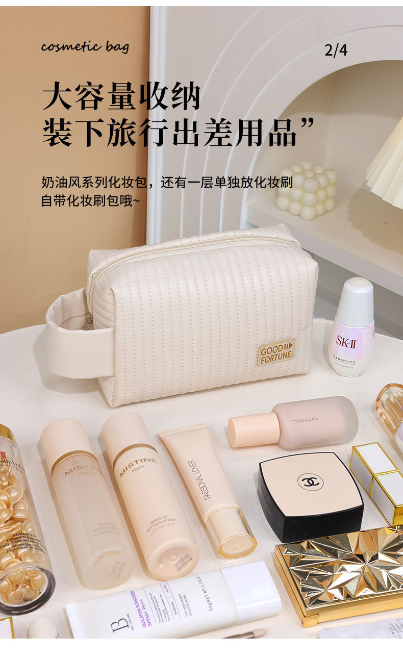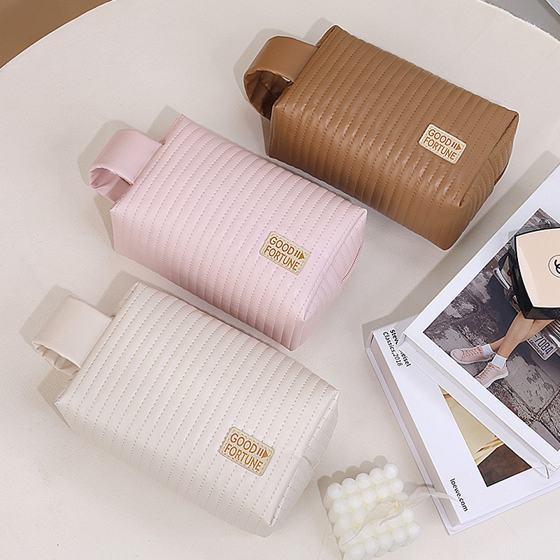 새로운 PU 화장품 가방, 크림색 수납 가방, 대용량 휴대용 수납 가방, 여행용 휴대 세면도구 가방스토어 가기