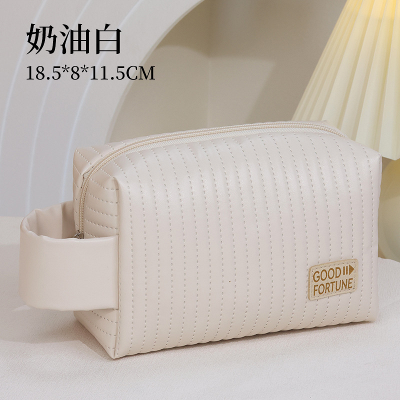 새로운 PU 화장품 가방, 크림색 수납 가방, 대용량 휴대용 수납 가방, 여행용 휴대 세면도구 가방