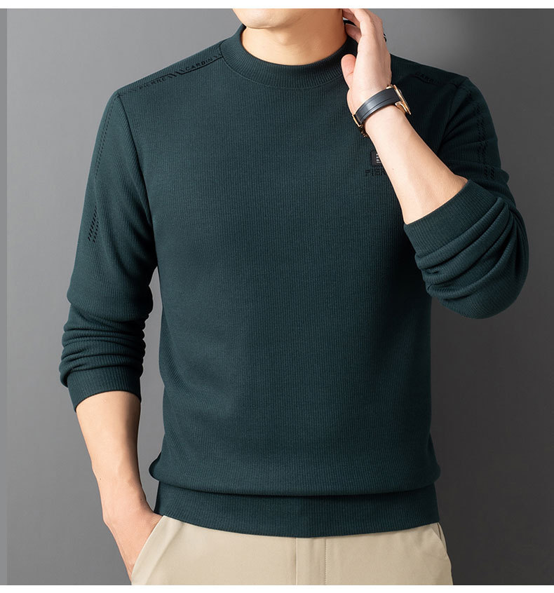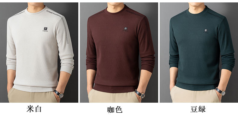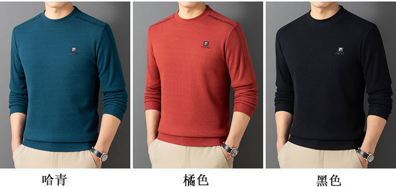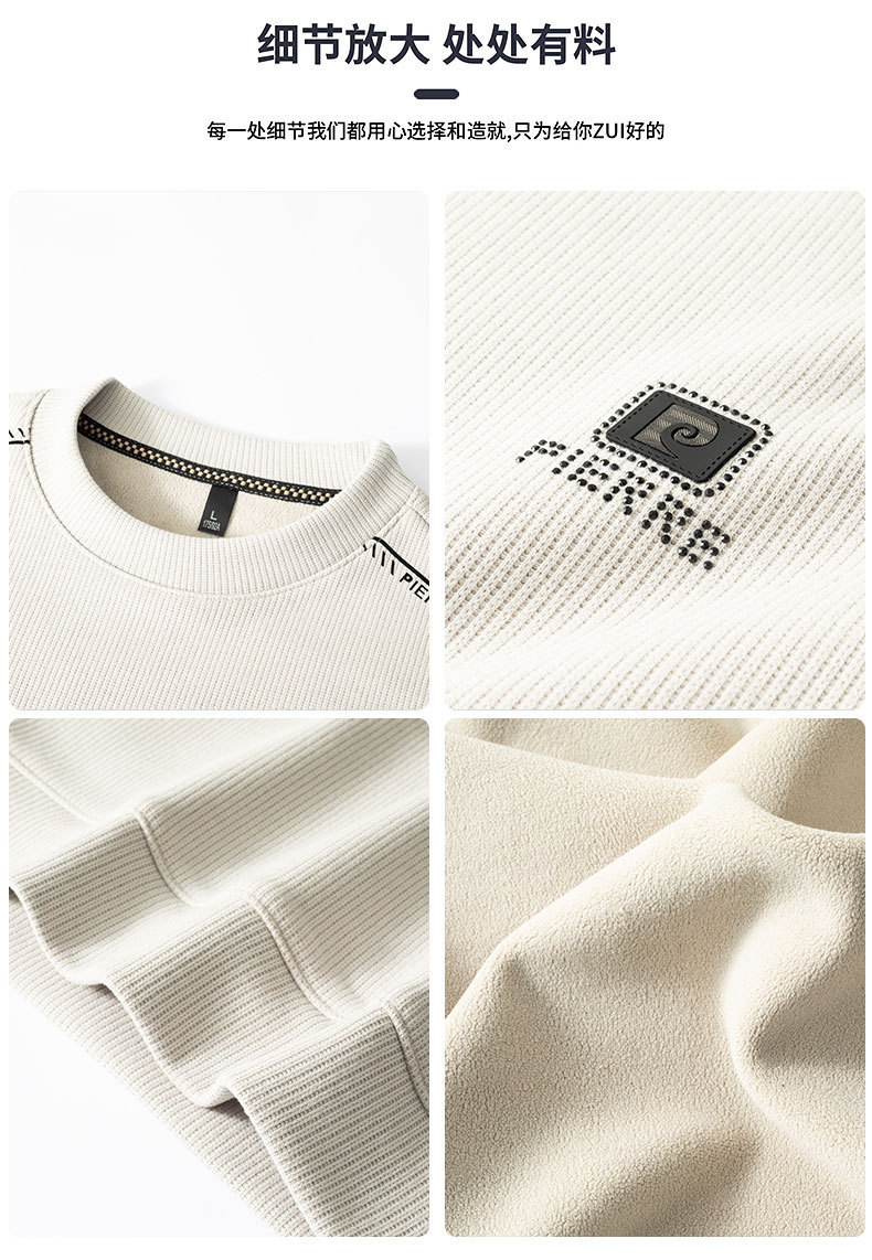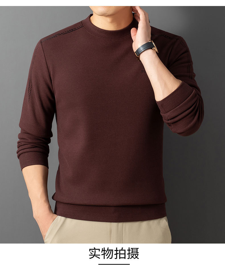 2023新款秋冬加绒加厚含羊毛桑蚕丝保暖男士时尚针织休闲卫衣