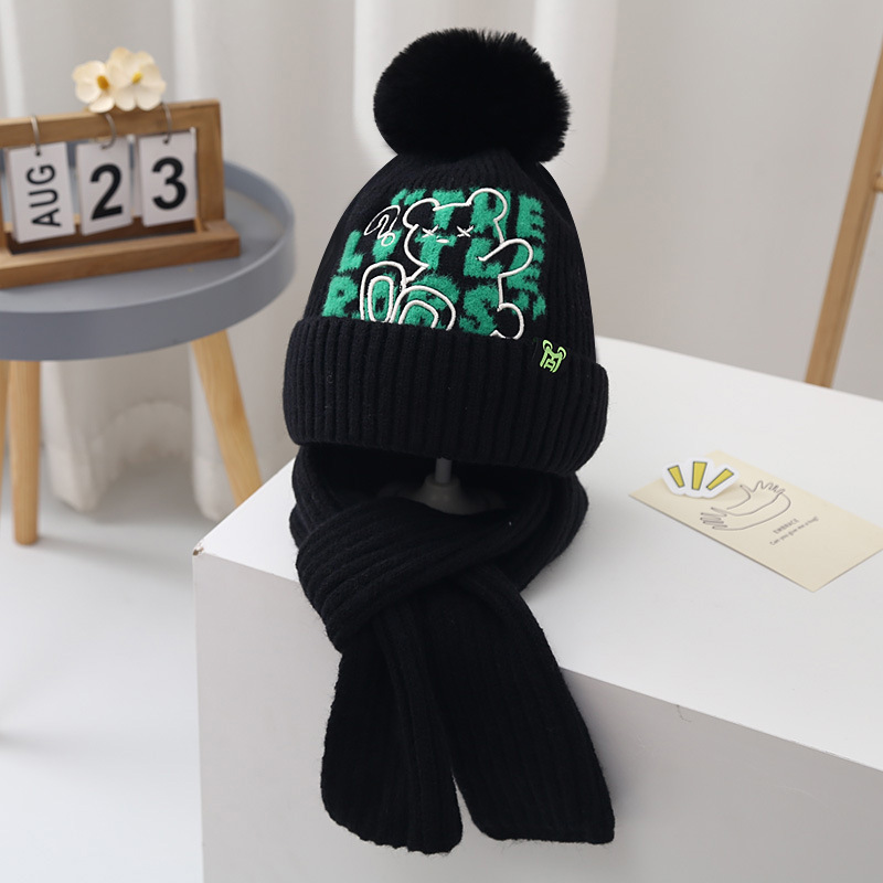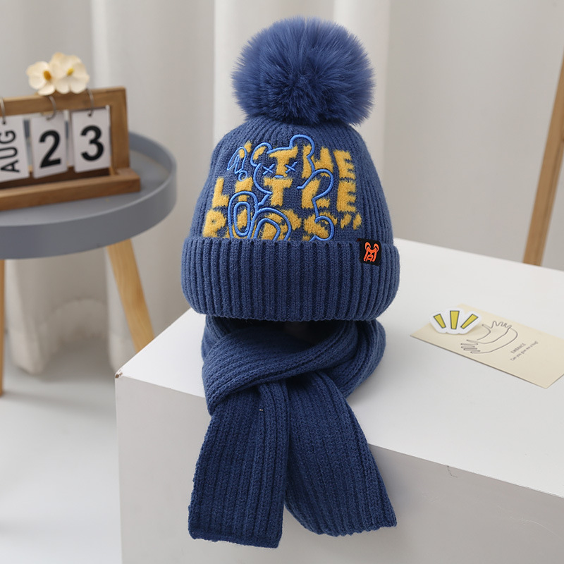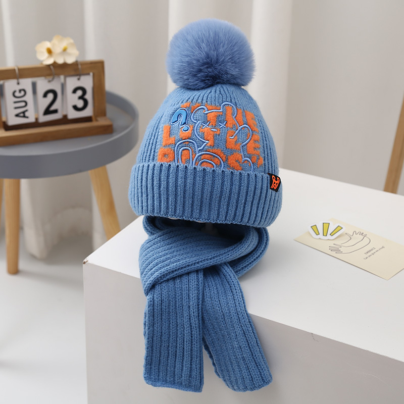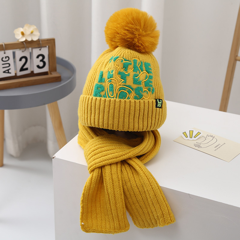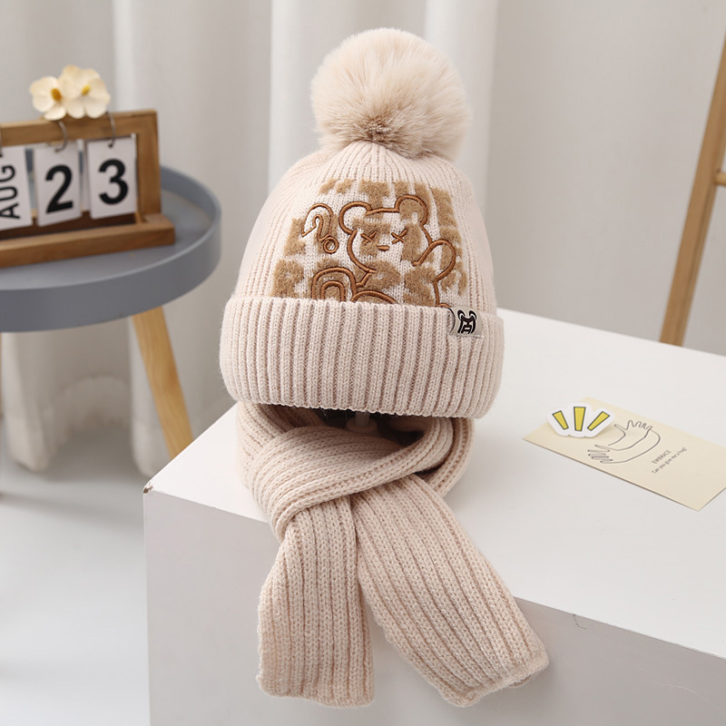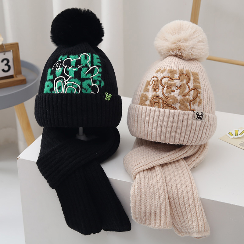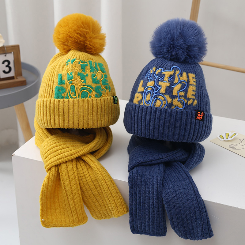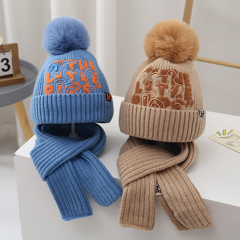 아기 모자와 스카프 세트 유아 및 어린이 가을 겨울 남아용 모직 니트 귀마개 모자 여아용 투피스 세트 어린이용스토어 가기