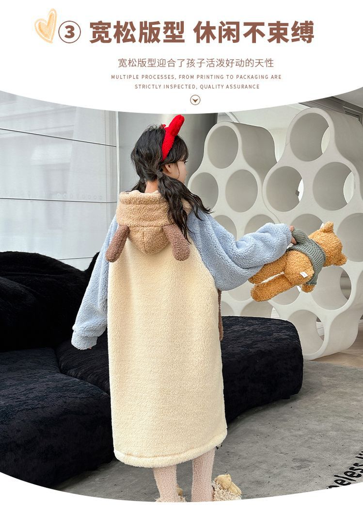 소녀 잠옷 가을과 겨울 후드 산호 양털 나이트 가운 두꺼운 따뜻한 집 옷 소녀 달콤한 잠옷 투피스 세트스토어 가기