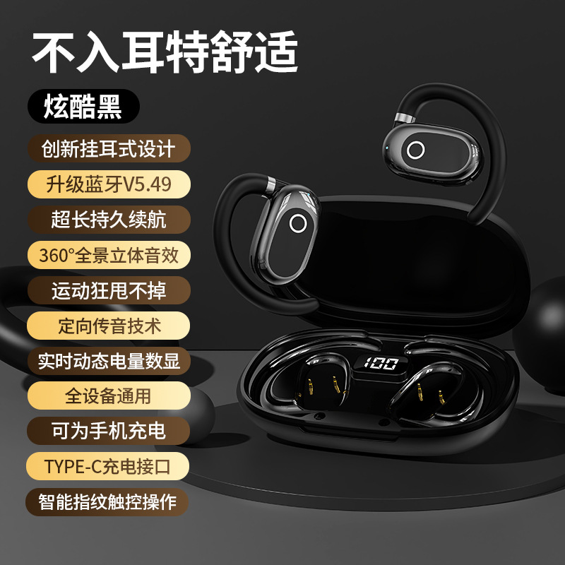 국경 간 전용 tws 터치 컨트롤 비상 휴대폰 충전 블루투스 이어폰 LED 디지털 디스플레이 귀걸이형 소음 감소 무선 터치스크린