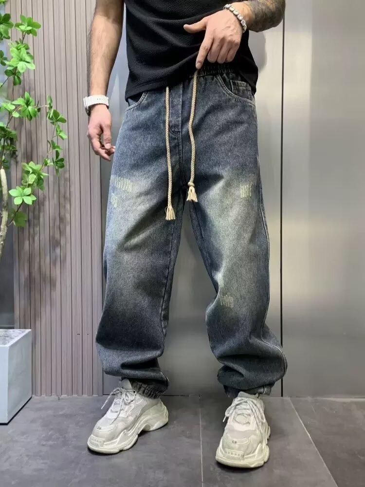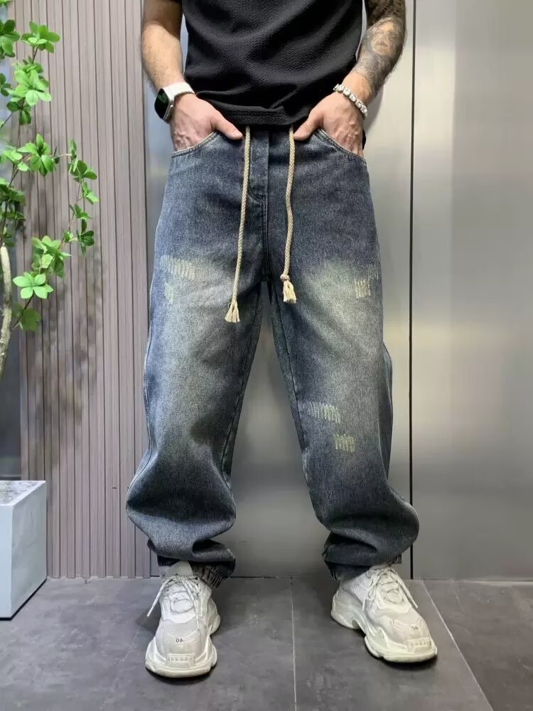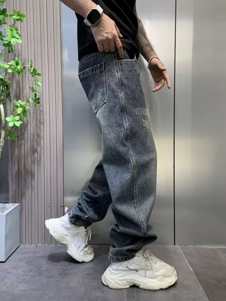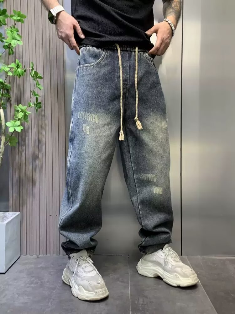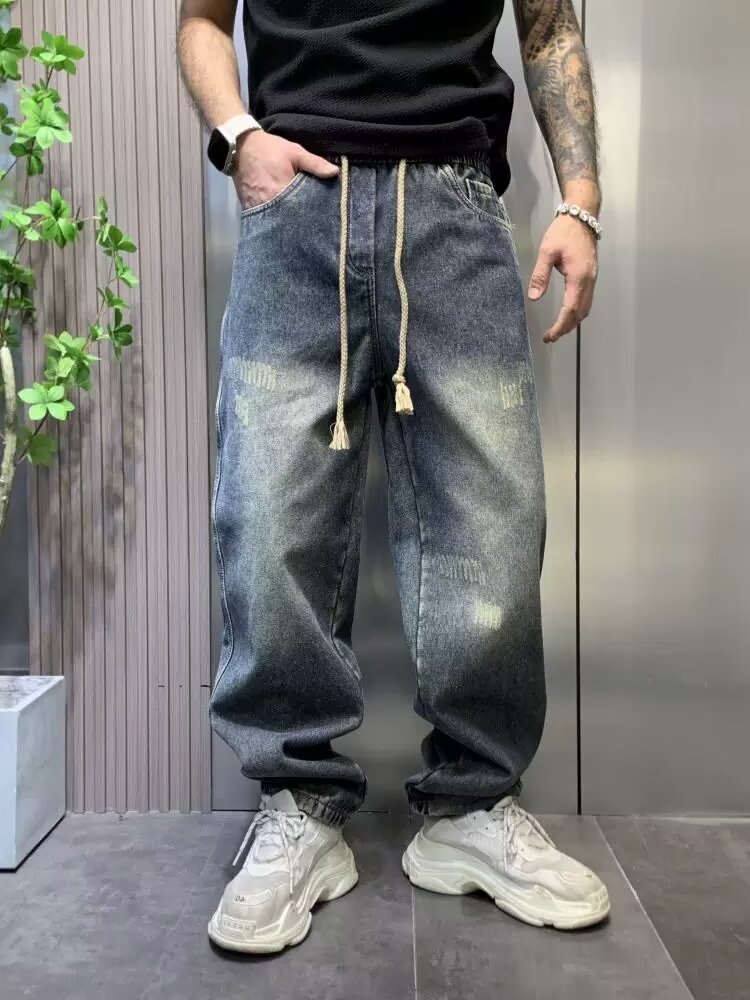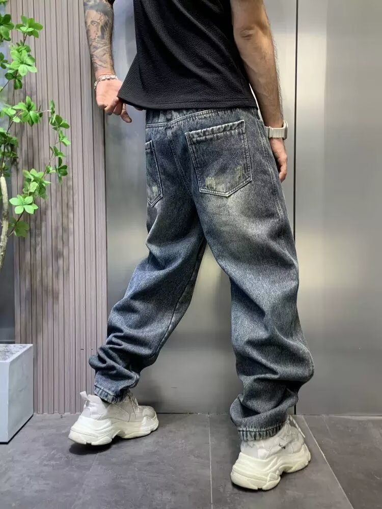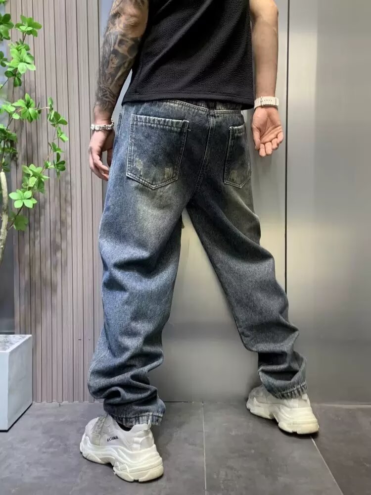 통기성 얇은 마이크로 탄성 작은 직선 다리 미국 스타일 캐주얼 빈티지 그라디언트 세척 청바지 자른 바지