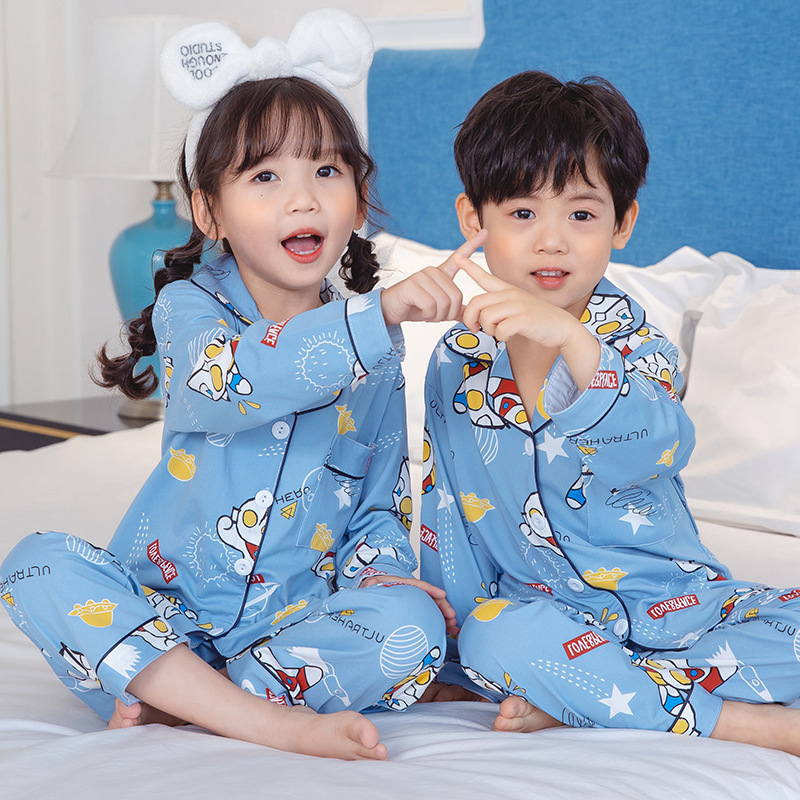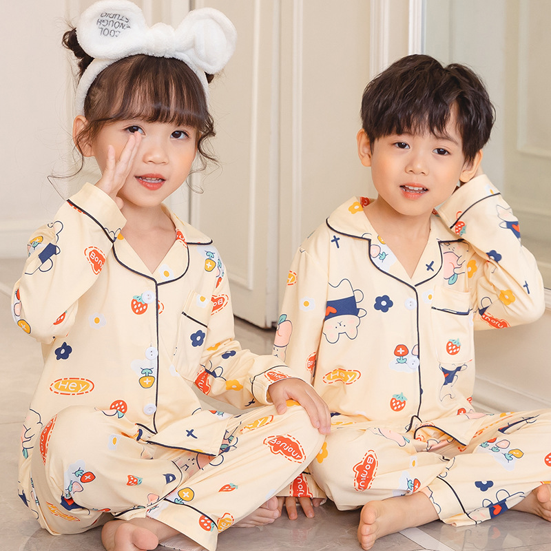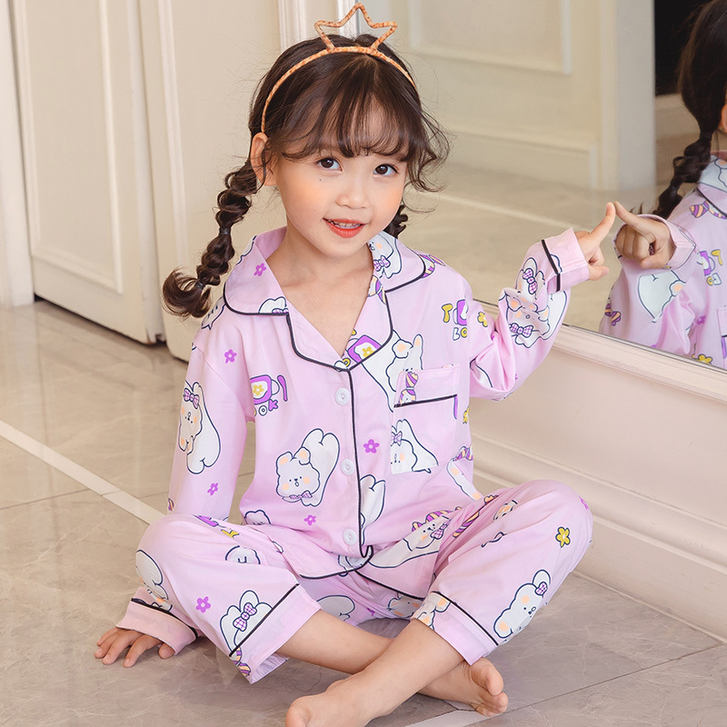 봄과 가을 새로운 어린이 속옷 세트 아기 소녀의 가을 옷과 바지 투피스 세트 어린이 소년 소녀 잠옷스토어 가기