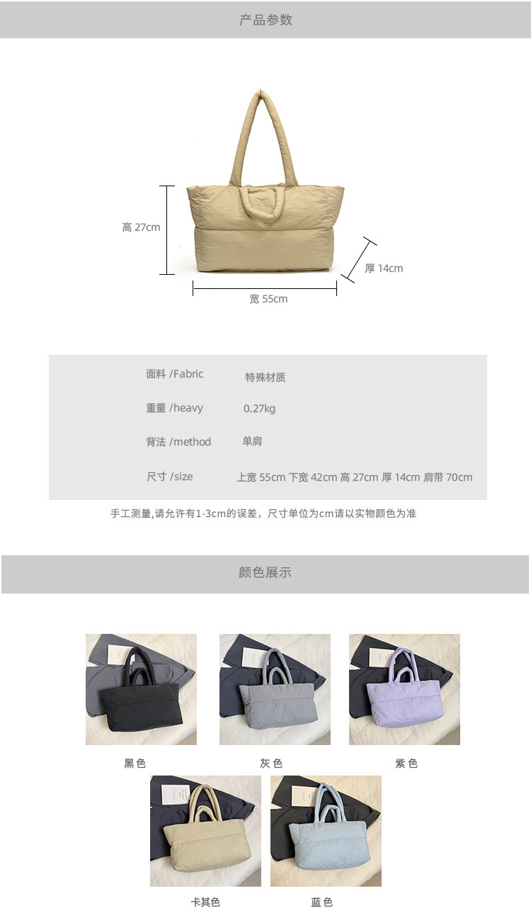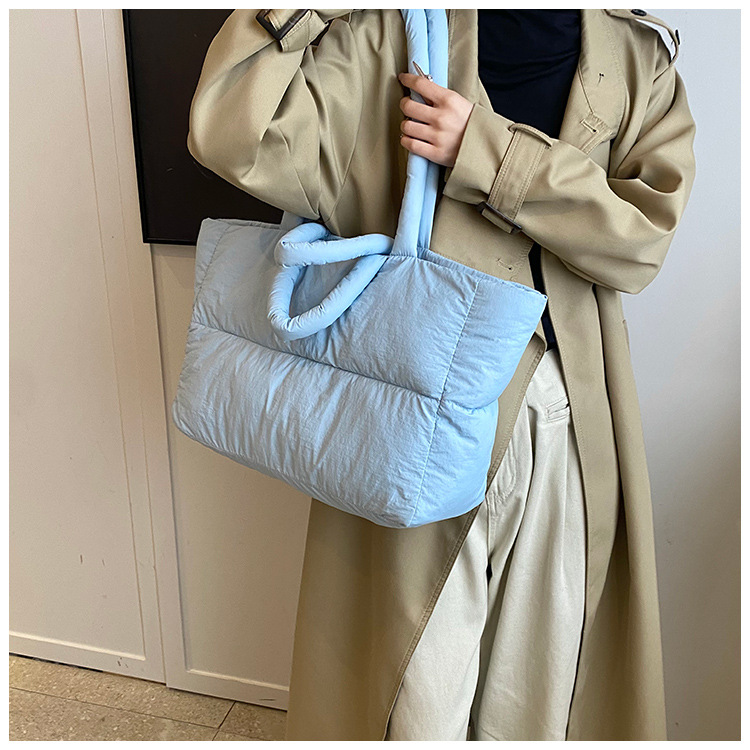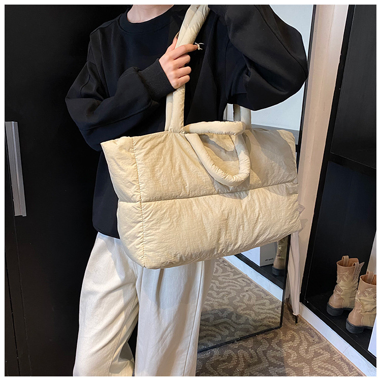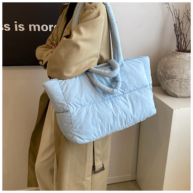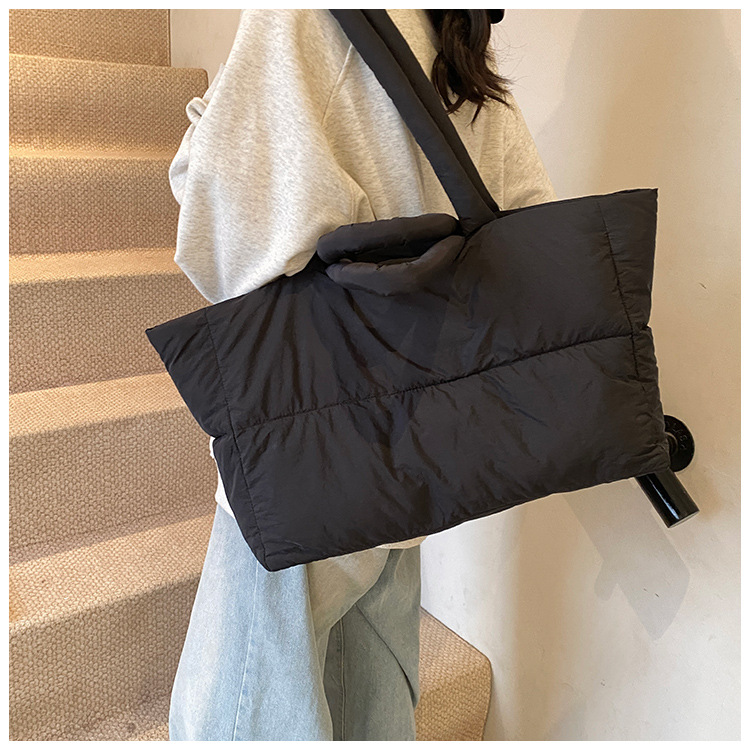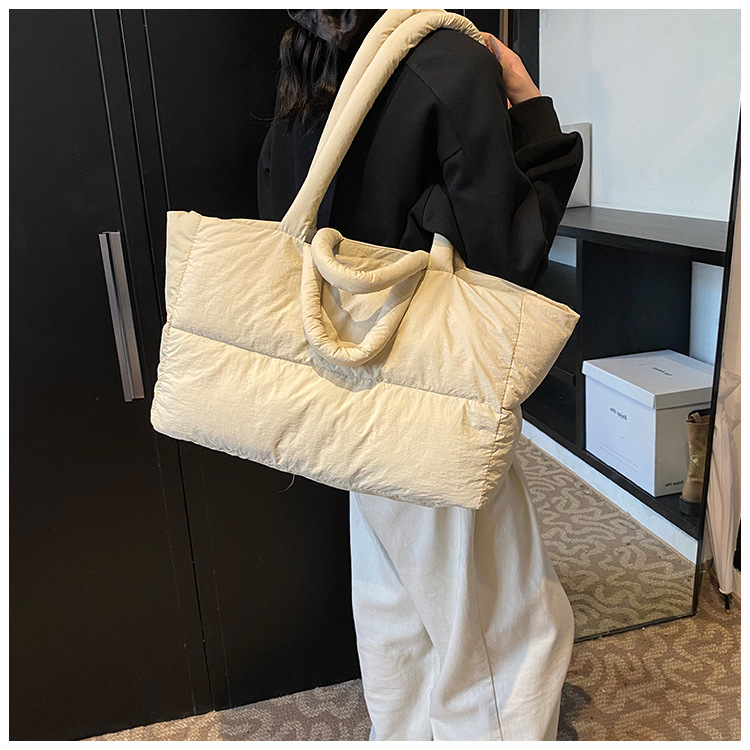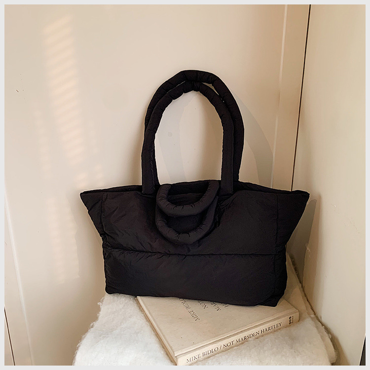 국경 간 고급 센스 다운 백 여성의 2024 새로운 겨울 대용량 어깨 언더암 통근 토트 백 핸드백
