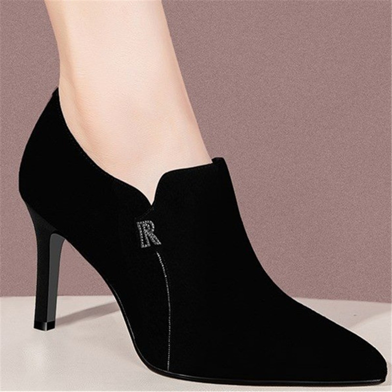 2024 봄과 가을 새로운 스타일 깊은 입 패션 하이힐 싱글 신발 여성 한국 스타일 얇은 뒤꿈치 포인팅 스웨이드 전문 작업 여성 신발 트렌디