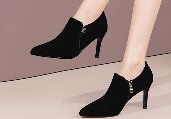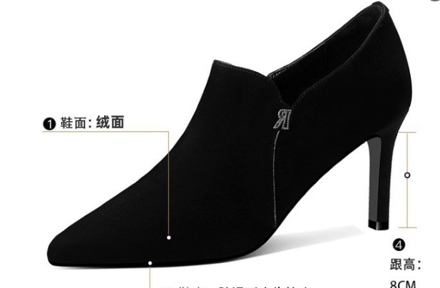2024 봄과 가을 새로운 스타일 깊은 입 패션 하이힐 싱글 신발 여성 한국 스타일 얇은 뒤꿈치 포인팅 스웨이드 전문 작업 여성 신발 트렌디스토어 가기