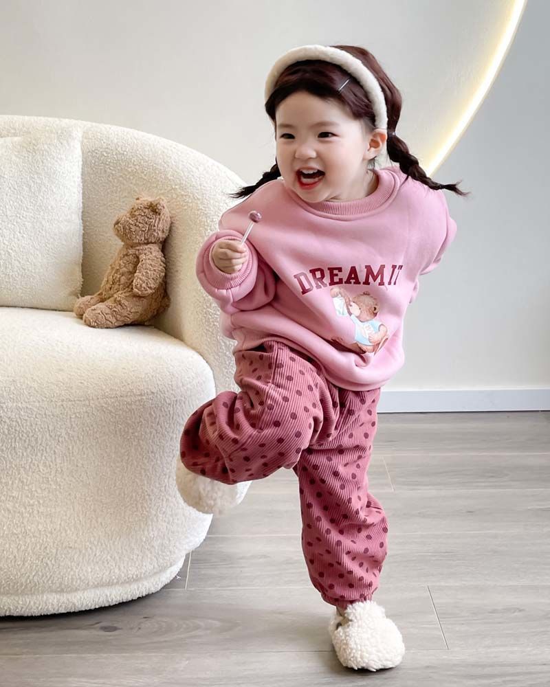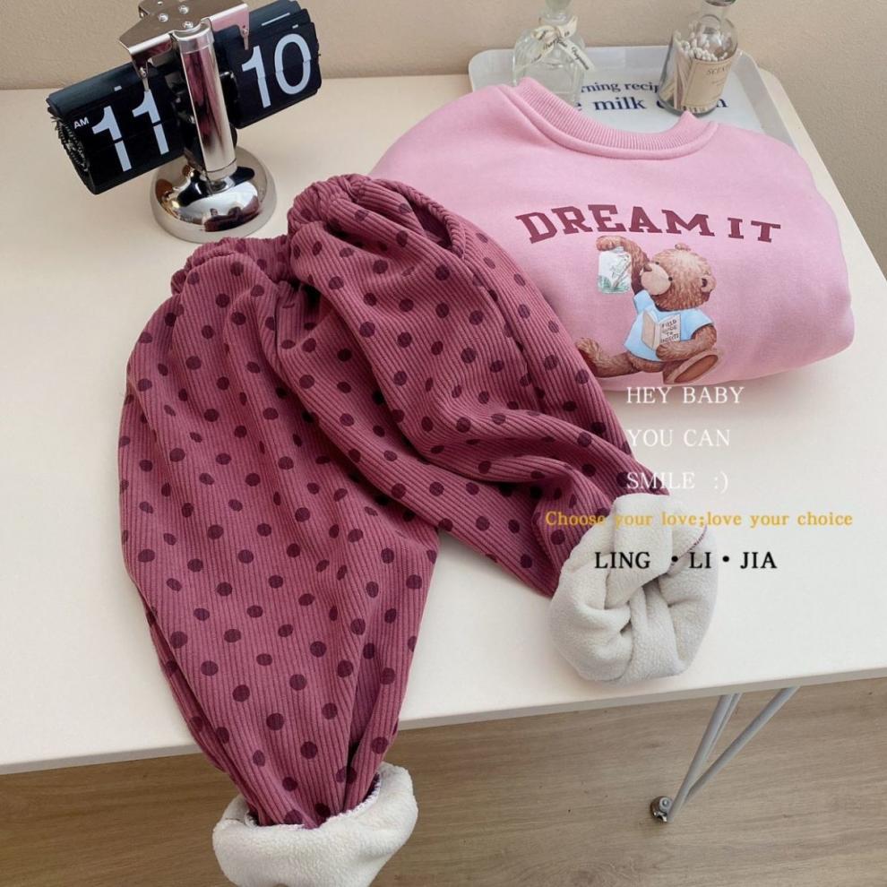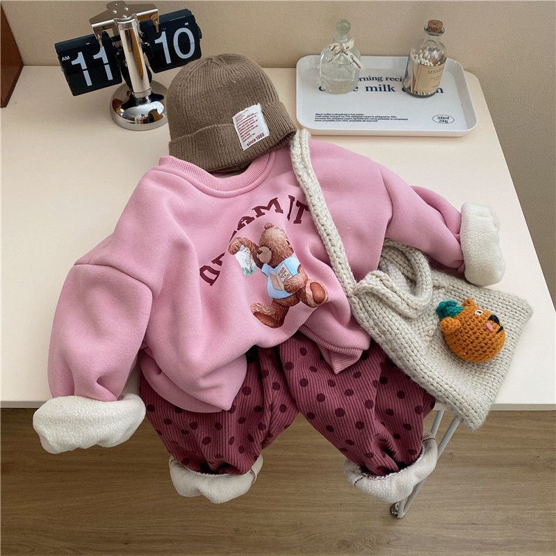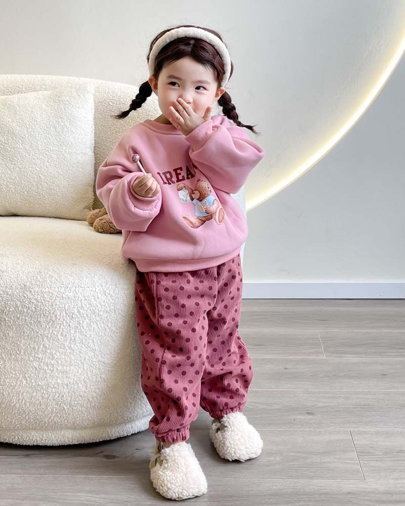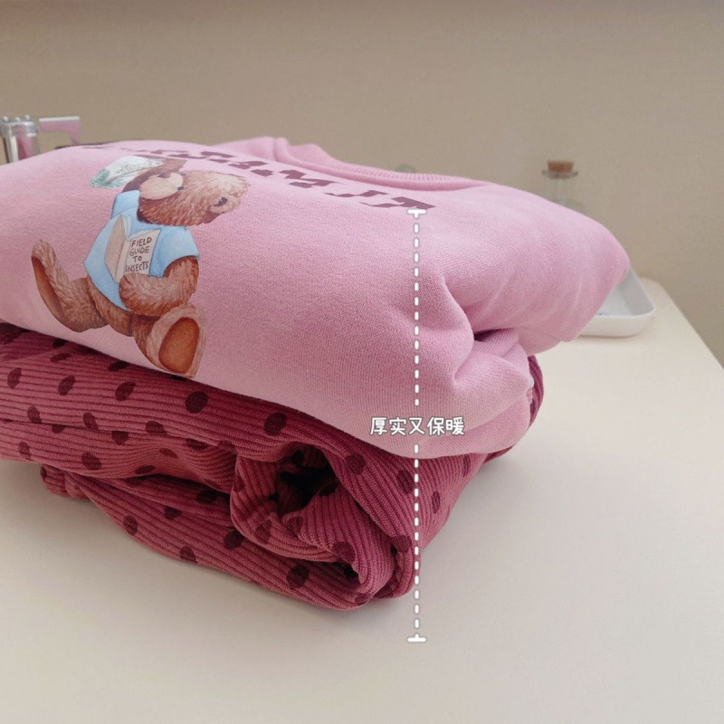 2024 가을과 겨울 두꺼운 세트 소녀 기모 스웨터 어린이 외국 스타일 아기 코듀로이 바지 투피스 세트스토어 가기