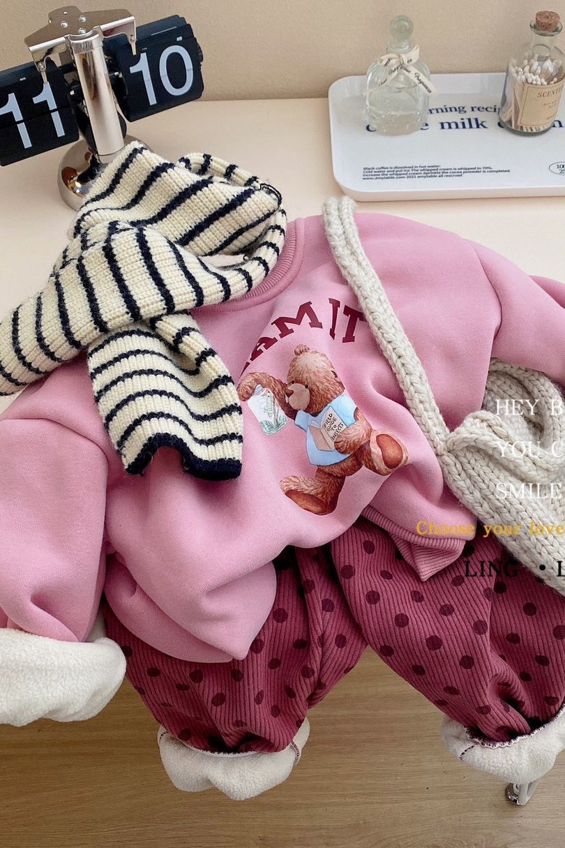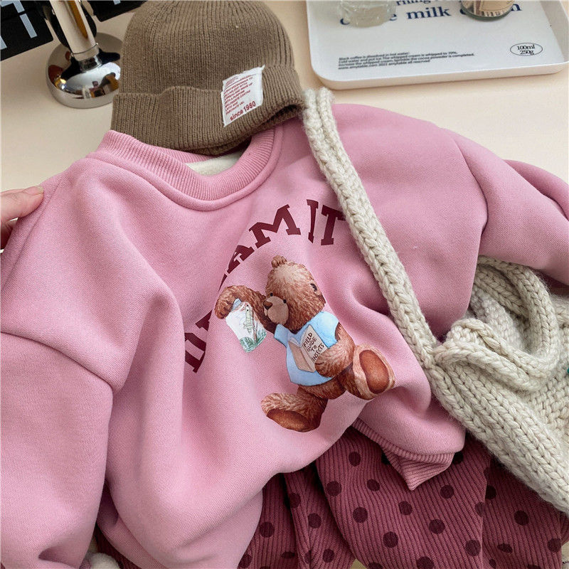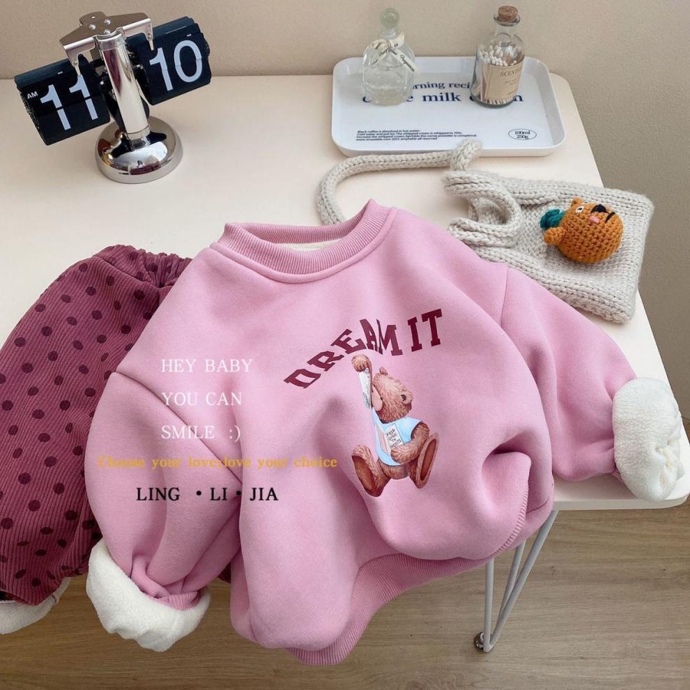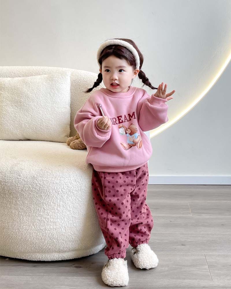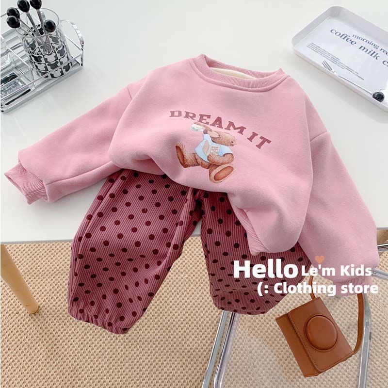 2024 가을과 겨울 두꺼운 세트 소녀 기모 스웨터 어린이 외국 스타일 아기 코듀로이 바지 투피스 세트스토어 가기