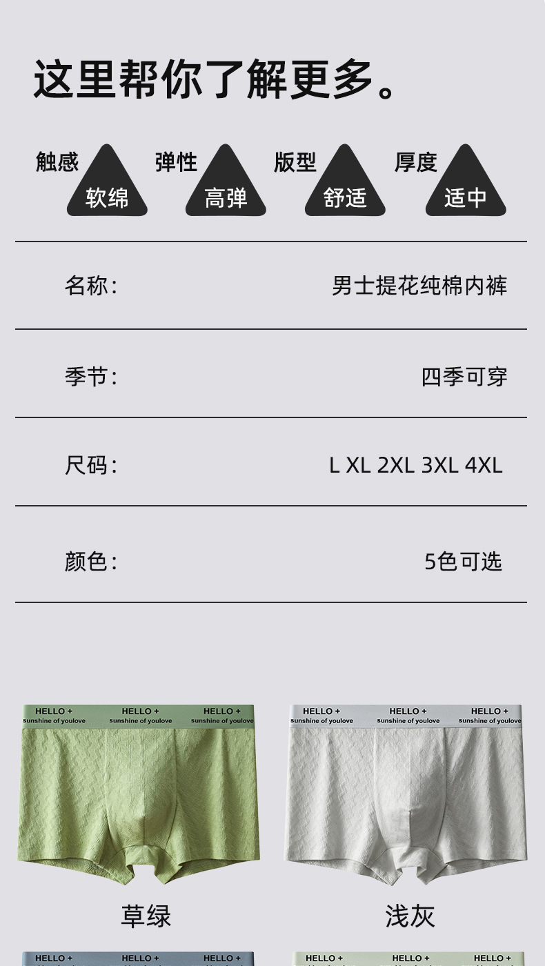 순면 남성 속옷 통기성 중간 허리 높이 자카드 질감 항균 대형 사이즈 심플 남성 고급 사각팬티스토어 가기