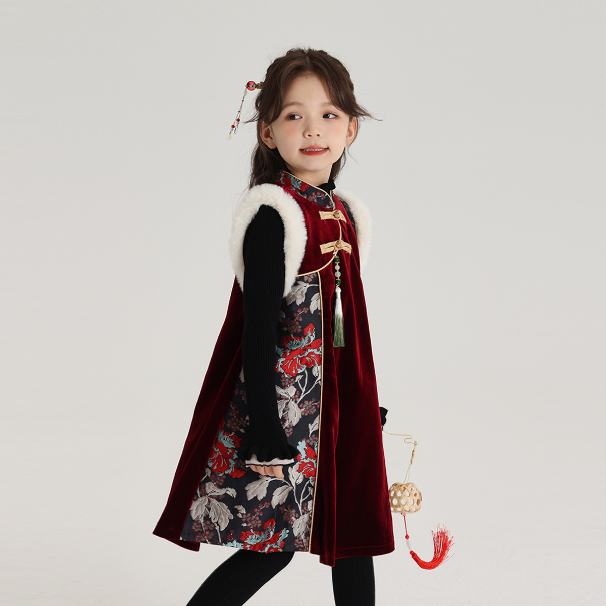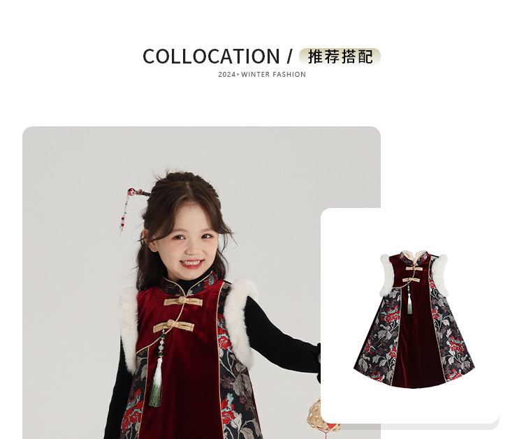 DOG 어린이 겨울 착용 소녀 국가 스타일 새해 원피스 2024 가을 및 겨울 새로운 어린이 새로운 중국 원피스스토어 가기