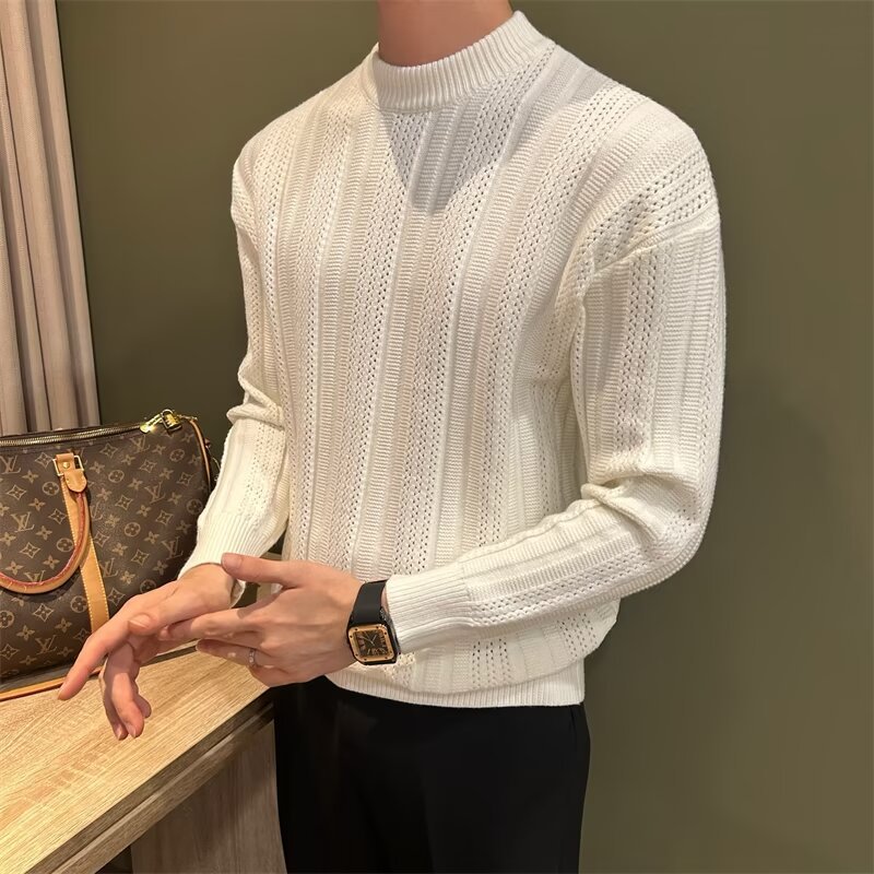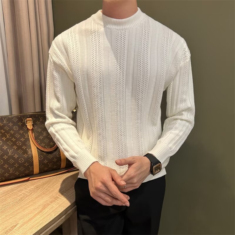2024 가을과 겨울 새로운 게으른 남자의 긴팔 니트 셔츠 솔리드 컬러 스웨터 슬림 핏 비즈니스 탑 심플 스타일 인테리어스토어 가기