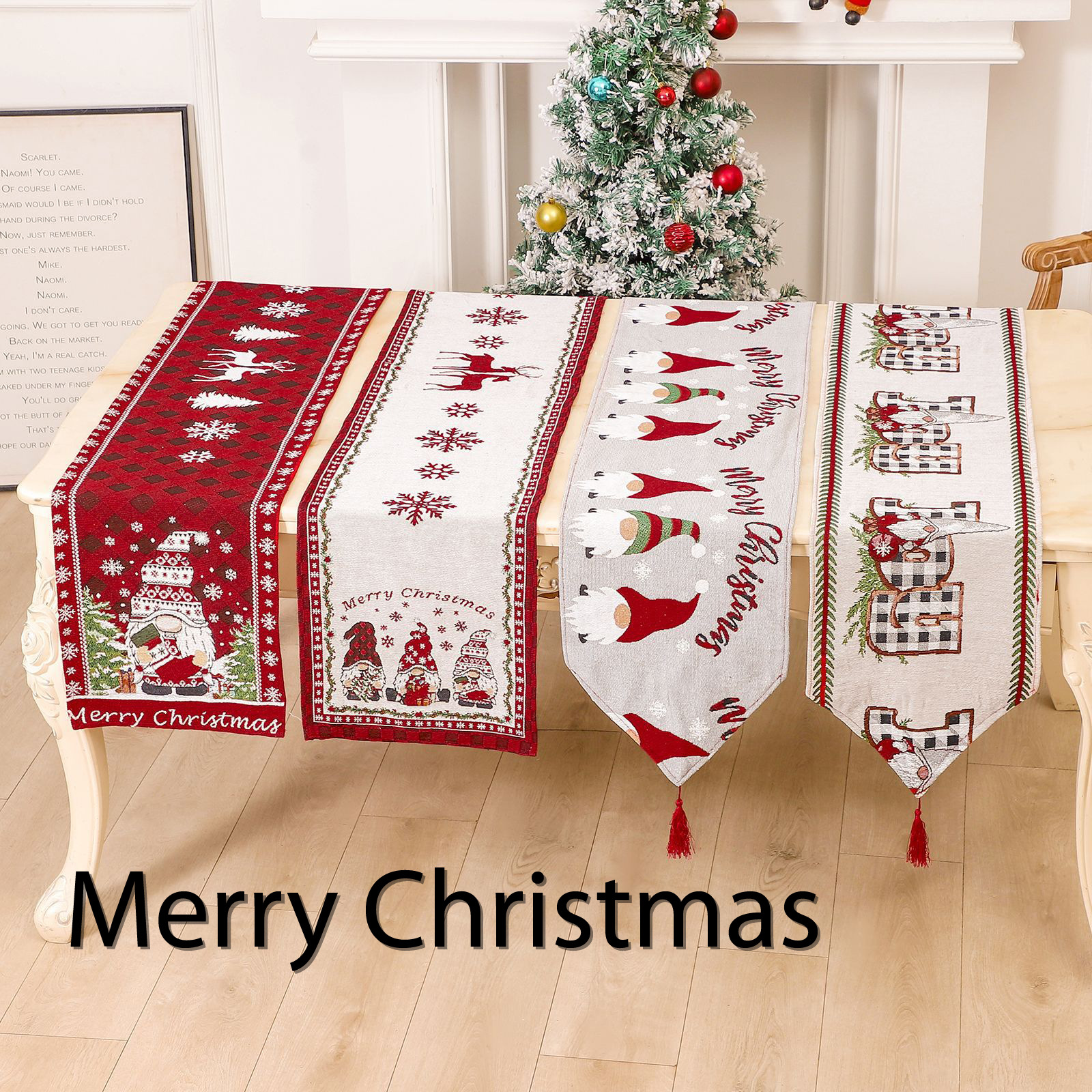 새로운 크리스마스 테이블 러너 더블 레이어 코튼 및 리넨 창조적 인 인쇄 얼굴없는 인형 테이블 매트 분위기 타블렛 크리스마스 장식스토어 가기