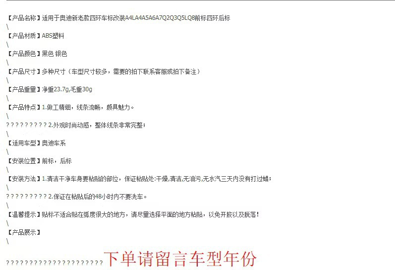 아우디 4 링 표준 Q3Q5 순 표준 A5A6A4L 수정 RS3 전면 표준 리어 테일 표준 아우디 전면 및 후면 자동차 로고에 적용 가능스토어 가기