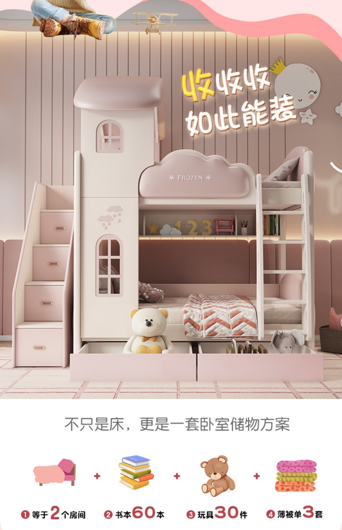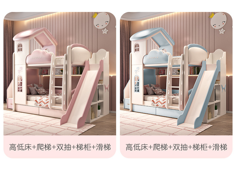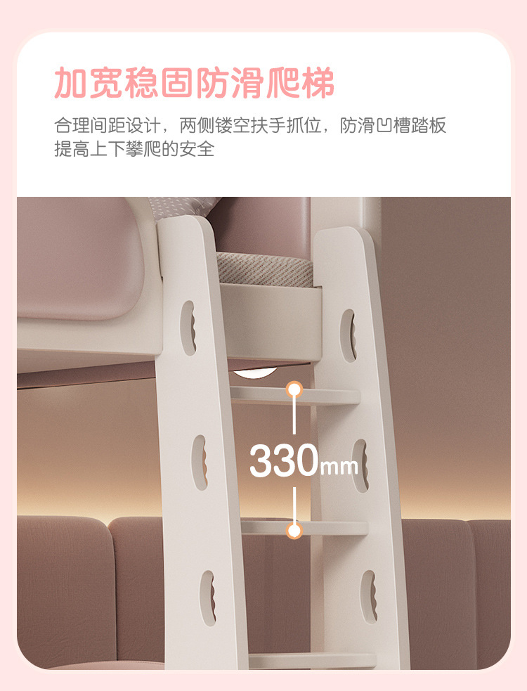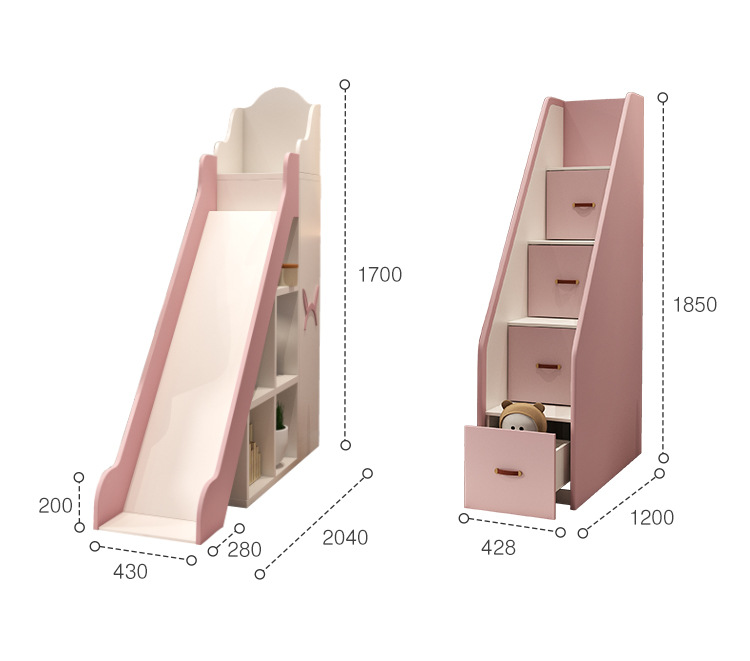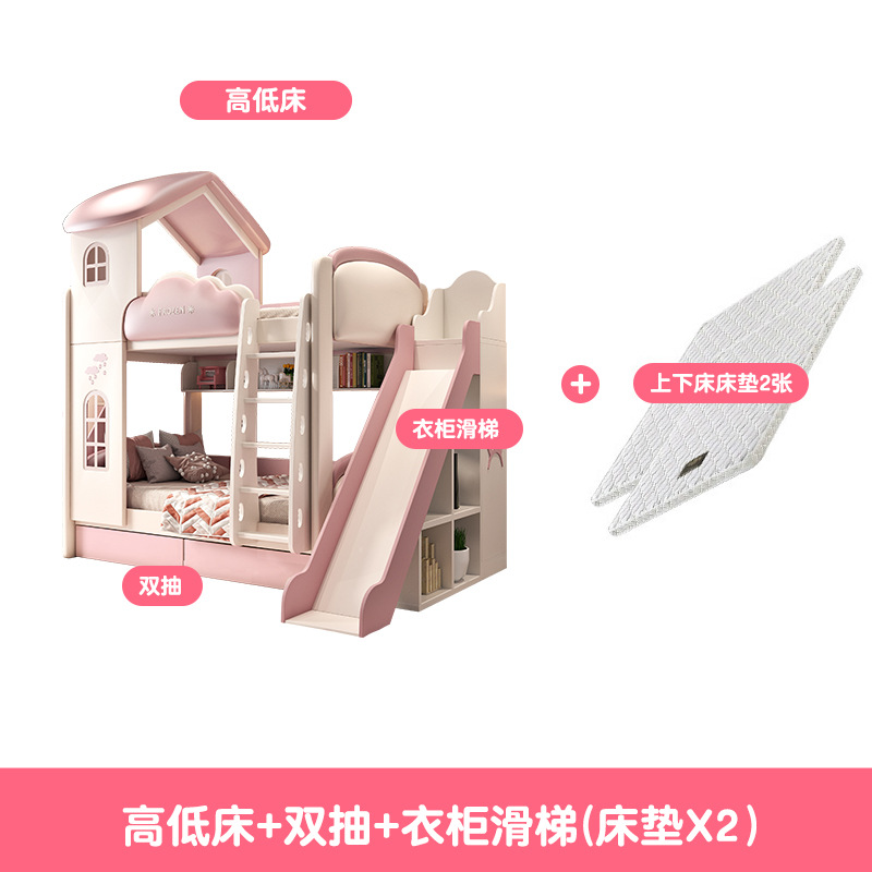 • 높고 낮은 침대 + 이중 서랍 + 사다리 캐비닛 + 옷장 슬라이드 "핑크"