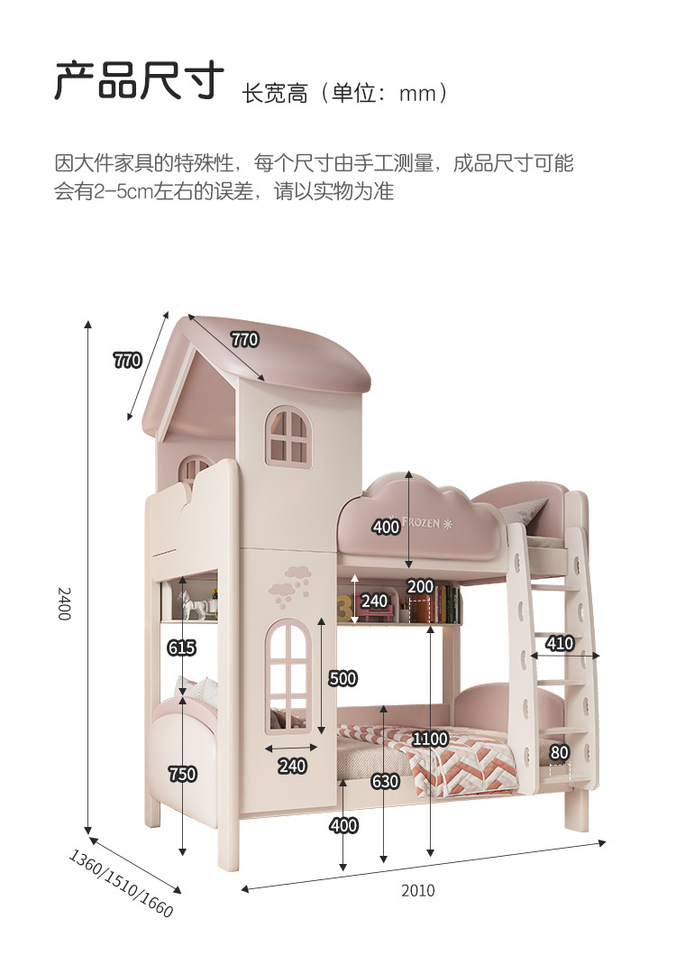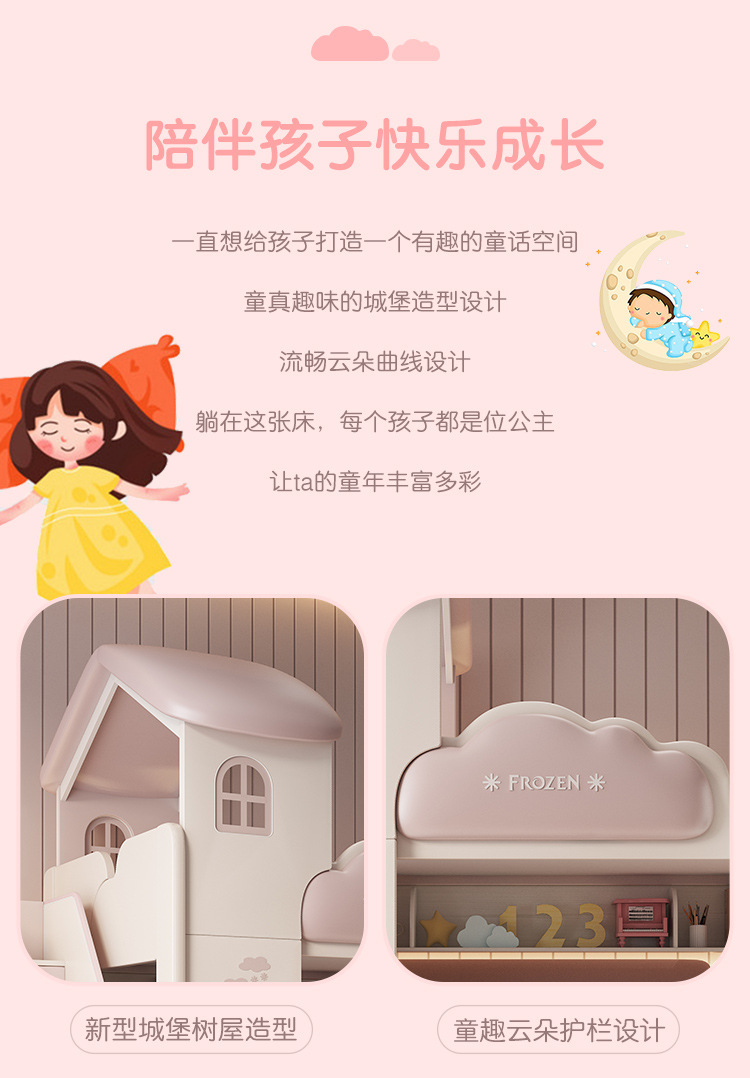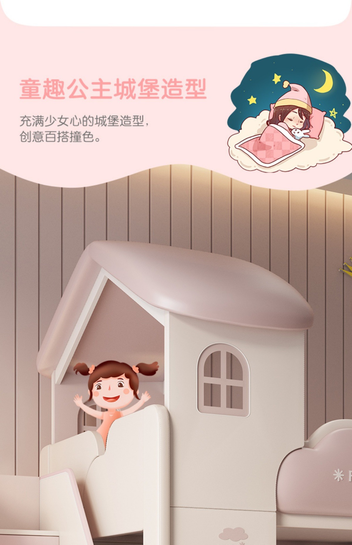 • 높고 낮은 침대 + 이중 서랍 + 사다리 캐비닛 + 옷장 슬라이드 "핑크"
