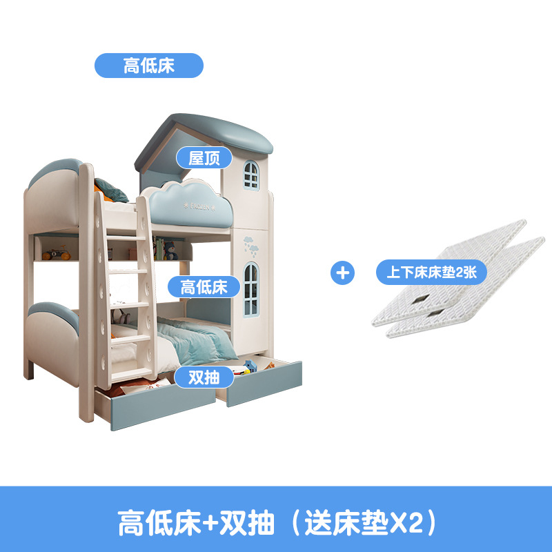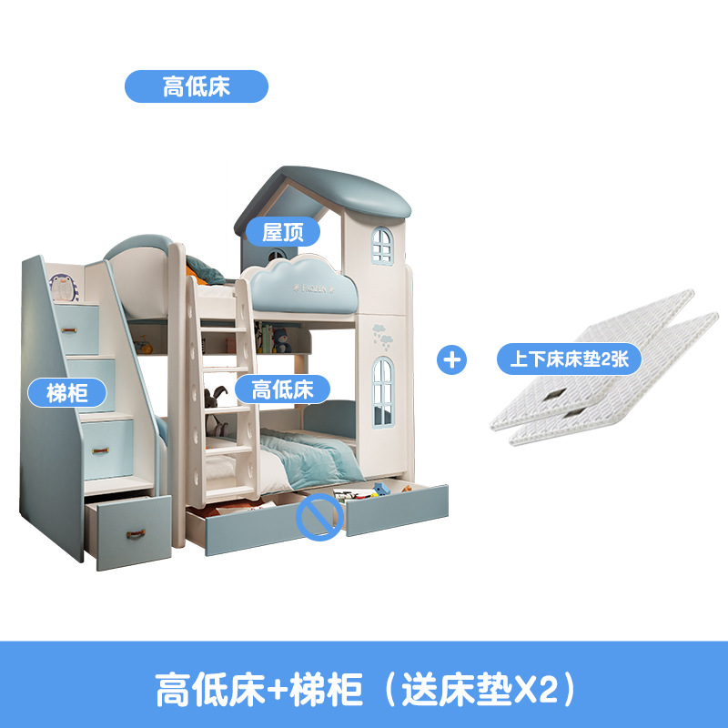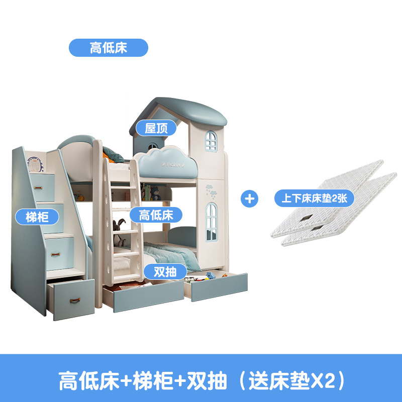 • 높고 낮은 침대 + 이중 서랍 + 사다리 캐비닛 (블루)
