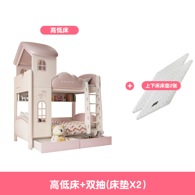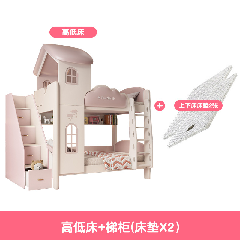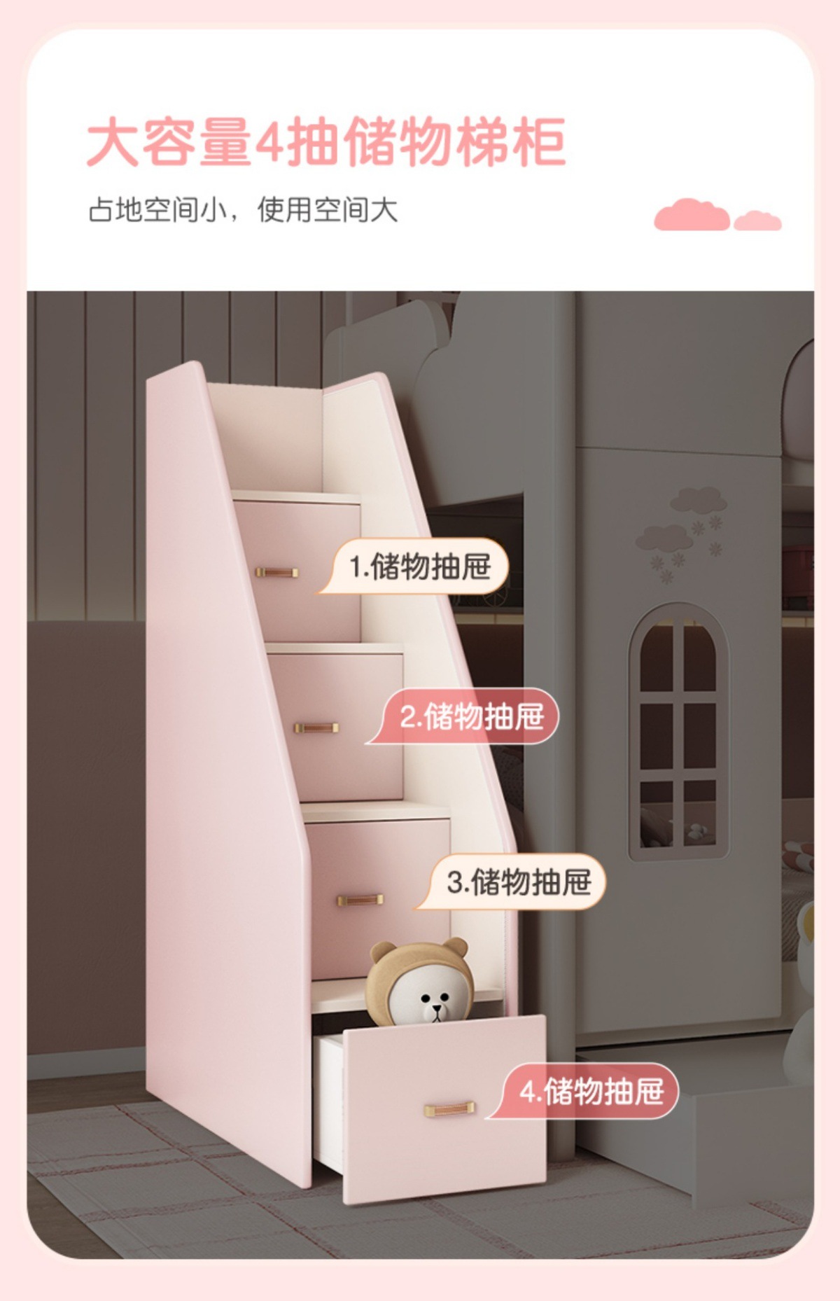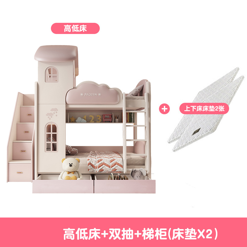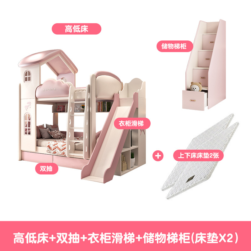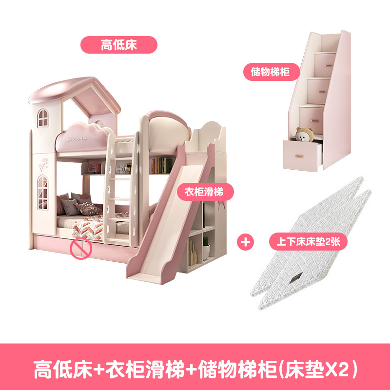• 높고 낮은 침대 + 이중 서랍 + 사다리 캐비닛 (핑크)