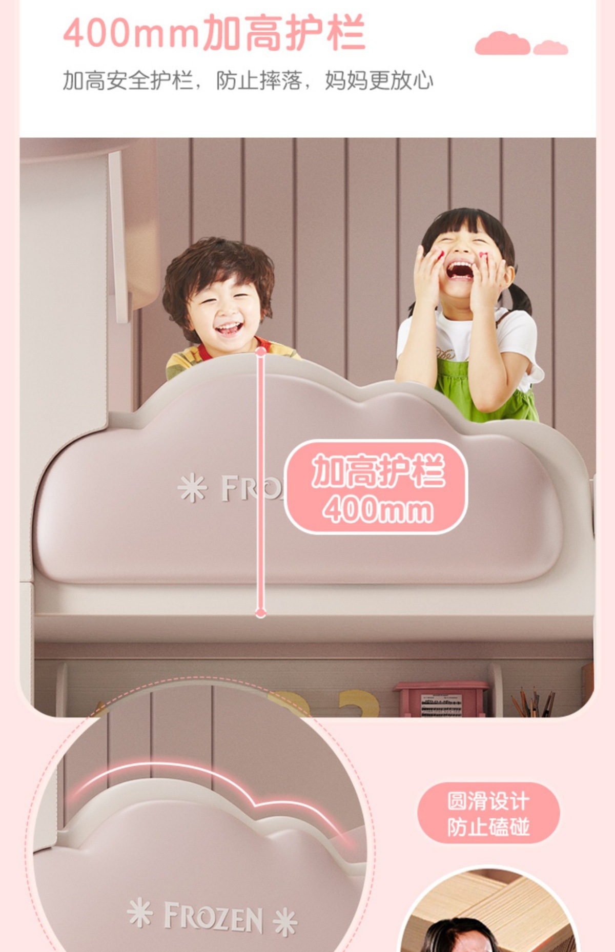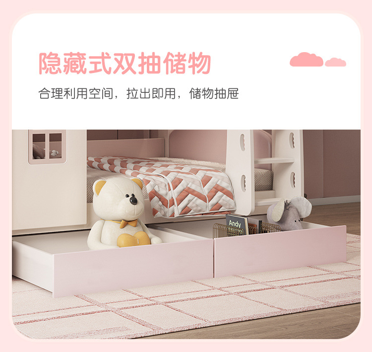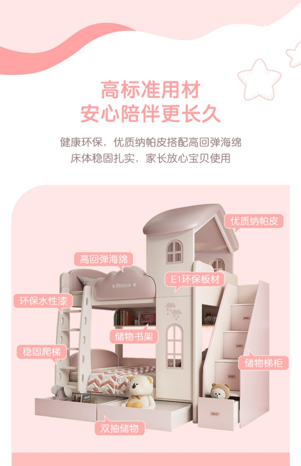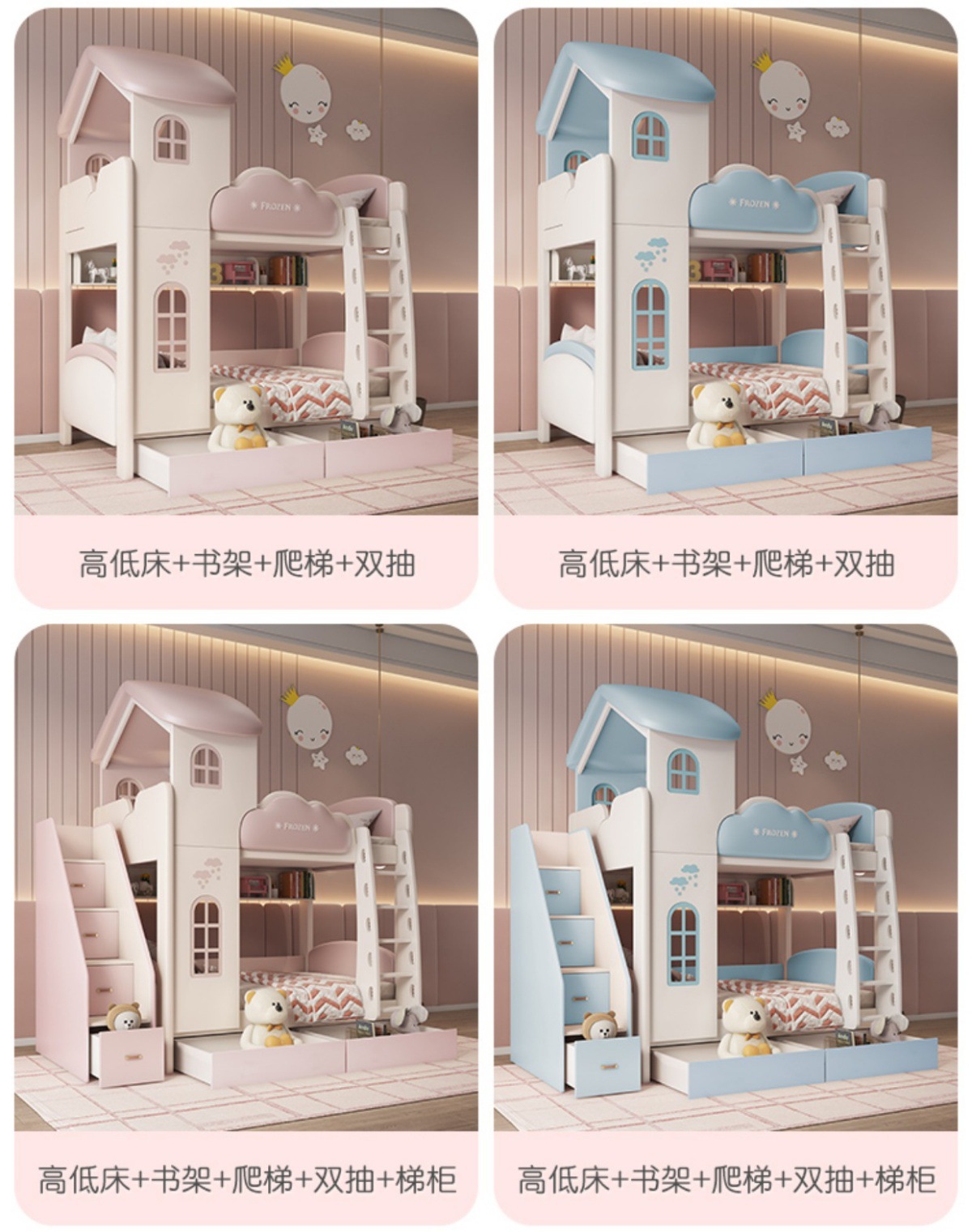 • 높고 낮은 침대 + 이중 서랍 + 사다리 캐비닛 (핑크)