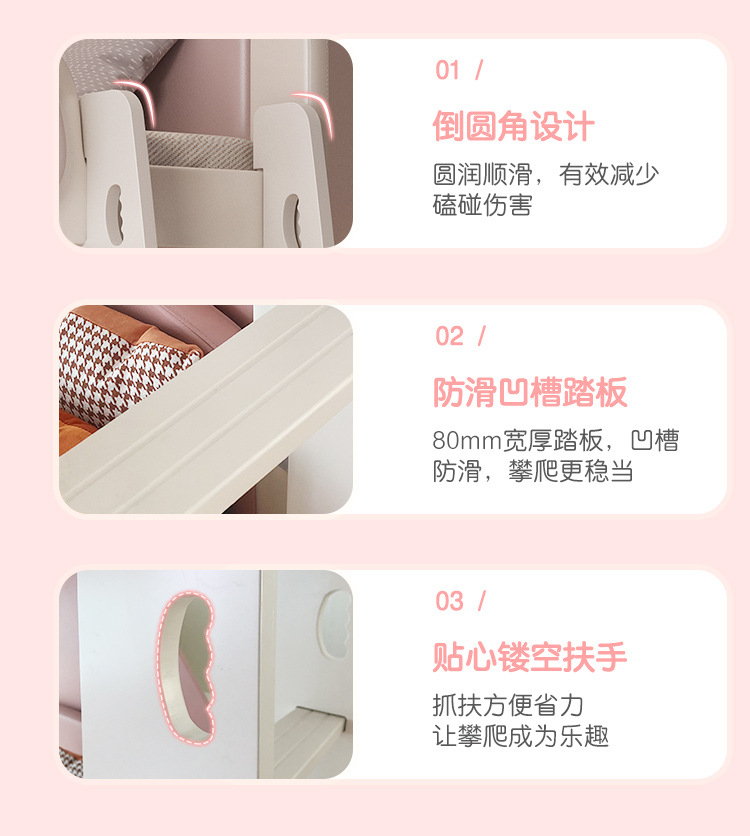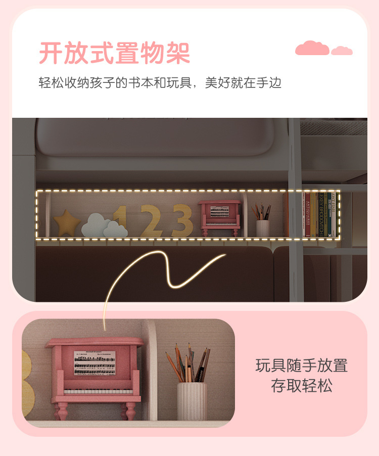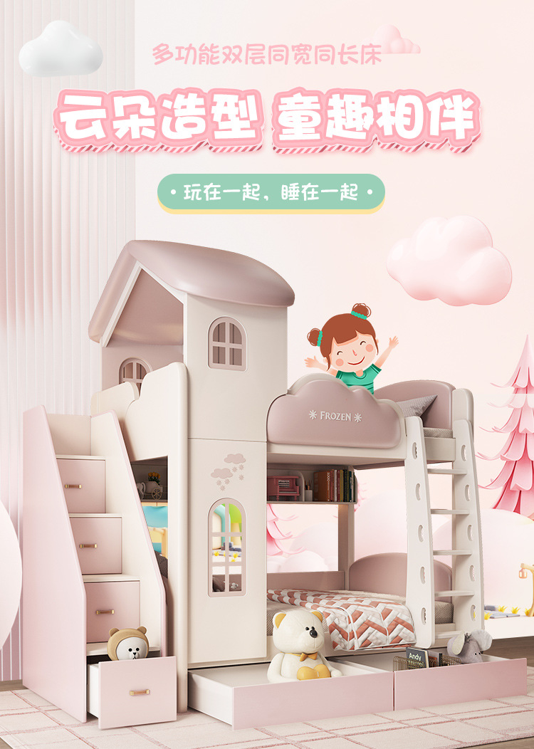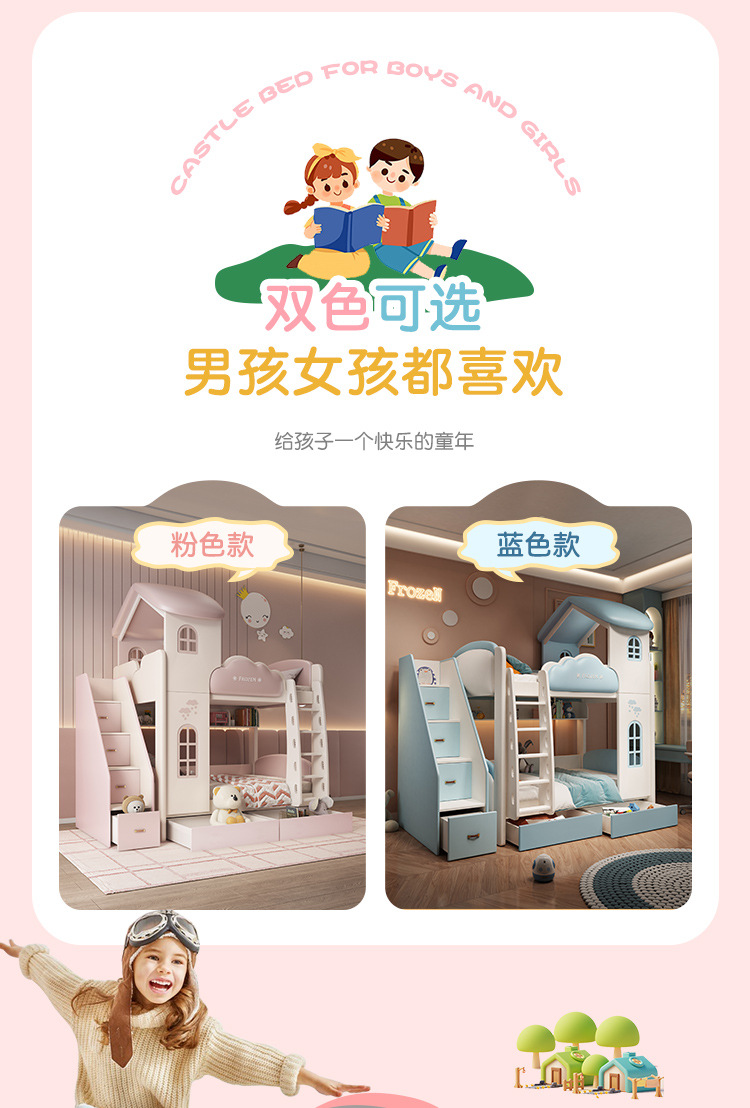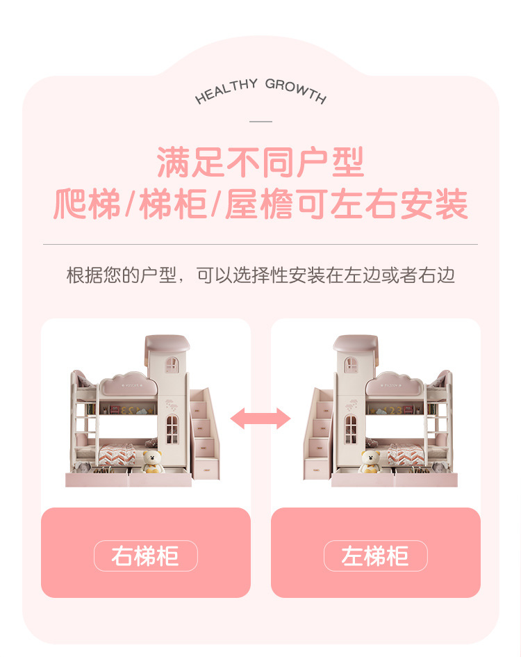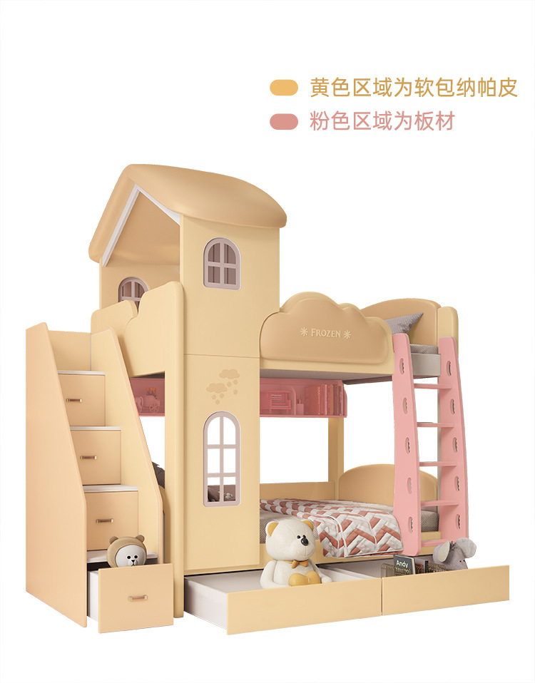• 높고 낮은 침대 + 이중 서랍 + 사다리 캐비닛 (핑크)