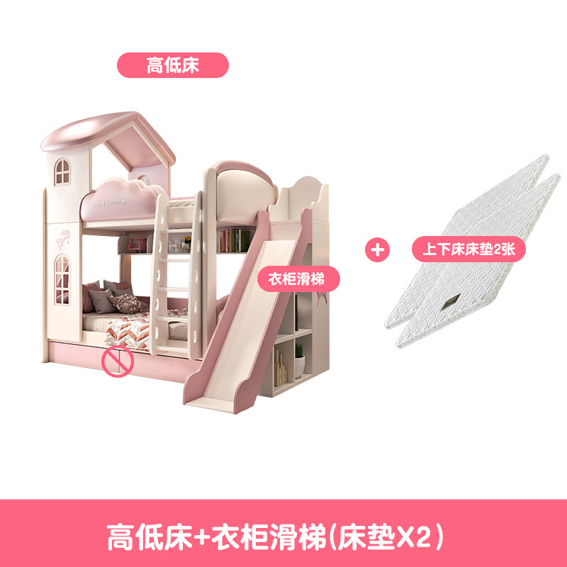 • 높고 낮은 침대 + 사다리 캐비닛 + 옷장 슬라이드 "핑크"